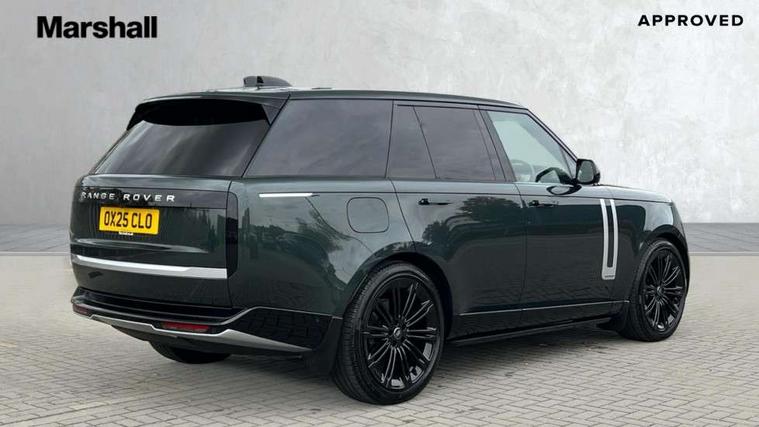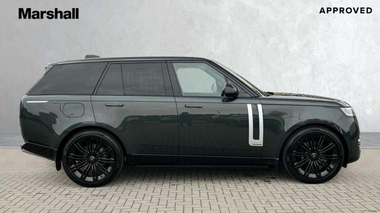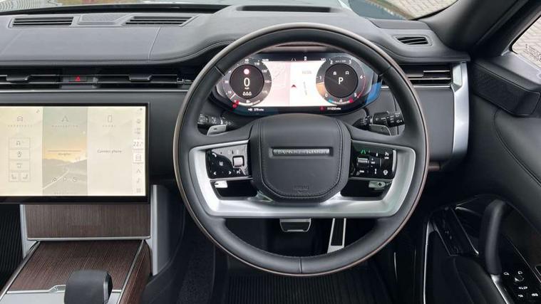 13.1" Touchscreen, 3D surround camera inc frwd traffic detection, vehicle clearance guidance, 3D view, clearsight ground view, manoevure light, 360 parking aid, wade sensing, Adaptive cruise control with steering assist, All Terrain Info Centre, All wheel steering, Blind spot assist, Bluetooth connectivity streaming, Configurable programs, Driver monitoring and response with driver facing camera & driver distraction monitor, Eco mode, Electric power assisted steering (EPAS), Emergency call service, Front and rear parking aid, Head up Display, Interactive driver display, Lane keep assist, Park assist, Powered gesture tailgate/boot lid, Rear collision monitor, Rear traffic monitor, Remote, Traffic sign recognition with adaptive speed limiter, Wi-Fi Enabled with data plan, Wireless Apple CarPlay/Android Auto, Wireless device charging, 8 speed automatic transmission, Active damper technology system, Adaptive dynamics, Adaptive off-road cruise control, All Wheel Drive (AWD), Automatic access height, Terrain Response 2 Auto, Twin speed transfer box, Digital Audio Broadcast radio-DAB, Meridian 1600W signature sound system, Pivi pro including smart settings, Connected navigation pro, nuance speech, USB socket, Acoustic laminated windscreen, Animated directional indicators, Automatic headlights, Automatic levelling headlights, Centre high mounted stop light, ClearSight interior rear view mirror, Electric windows with one touch open/close and anti trap, Engine cover, Flush deployable exterior door handles, Front and rear recovery eyes, Front fog lights including cornering lamp, Headlamp power wash, Heated rear window, Heated washer jets, Illuminated metal treadplates with Autobiography script, Laminated front and rear side glass, LED tail lights, Power fold, auto-dimming, heated door mirrors with approach lights, Rain sensing windscreen wipers, Rear boot, Rear fog lights, Rear side wing doors, Side repeater indicators in mirror, Solar attenuating windscreen, Standard bonnet, Winter wiper park position, 3 seat bench in 2nd row, 30 Colours configurable cabin lighting with 4 lighting zones, Air quality sensor, Auto folding loadspace cover, Bright metal pedals, Cabin air purification pro, Customer configurable single point entry, Driver and passenger front seat armrests, Easy boot loading, Ebony Carpet, Electric rear side window sunblinds, Four zone climate control, Front and rear cupholders, Front and rear grab handles, Front centre console refrigerator compartment, Front head restraints, Heated steering wheel, Hook in load space, Loadspace light, Luggage tie down in loadspace, Multifunction steering wheel, Rear centre armrest, Rear head restraints, Rear ISOFIX, Satin chrome gearshift paddles, Single front passenger seat, Soft close doors, SV bespoke carpet mats, Twin blade sunvisors with Illuminated vanity mirrors, Upper and lower glovebox, Online pack with data plan - Range Rover, 3x3 point rear seat belts, Anti-lock braking system (ABS), Black brake calipers, Brake hold function, Cornering brake control (CBC), Customer configurable autolock, DSC - Dynamic Stability Control, Electronic brake force distribution, Electronic parking brake, Electronic traction control, Emergency braking, Front airbags with passenger seat occupant detector, Front side airbags, Hill descent control, Hill launch assist, Illuminated seat belt buckles, Low traction launch, Occupant protection assist, Power operated child locks, Roll stability control, Tyre pressure monitoring system (TPMS), Immobiliser, Intrusion sensor and alarm, Keyless entry, Locking wheel nuts, Remote central locking, Noble chrome controls,