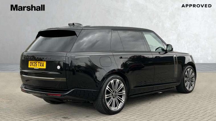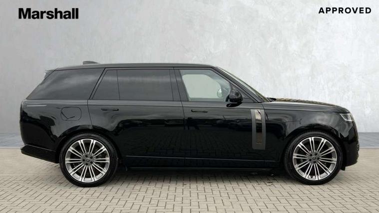 13.1" Touchscreen, 3D surround camera inc frwd traffic detection, vehicle clearance guidance, 3D view, clearsight ground view, manoevure light, 360 parking aid, wade sensing, All Terrain Info Centre, All wheel steering, Android Auto, Apple car play, Blind spot assist, Bluetooth connectivity streaming, Configurable programs, Driver condition response, Eco mode, Electric power assisted steering (EPAS), Emergency call service, Front and rear parking aid, Garage door opener (Homelink), Head up Display, Interactive driver display, Lane keep assist, Park assist, Powered gesture tailgate/boot lid, Rear collision monitor, Rear traffic monitor, Remote, Traffic sign recognition with adaptive speed limiter, Wi-Fi Enabled with data plan, Wireless device charging with phone signal booster, 8 speed automatic transmission, Active damper technology system, Adaptive dynamics, Adaptive off-road cruise control, All Wheel Drive (AWD), Automatic access height, Electronic active differential with torque vectoring by braking, Electronic air suspension with dynamic response pro, Terrain Response 2 Auto, Twin speed transfer box, Digital Audio Broadcast radio-DAB, Meridian 1600W signature sound system, Pivi pro including smart settings, Connected navigation pro, nuance speech, USB socket, Acoustic laminated windscreen, Animated directional indicators, Automatic headlights, Automatic levelling headlights, Centre high mounted stop light, ClearSight interior rear view mirror, Digital LED headlights with signature DRL and image projection, Electric windows with one touch open/close and anti trap, Flush deployable exterior door handles, Front and rear recovery eyes, Front fog lights, Headlamp power wash, Heated rear window, Heated washer jets, Illuminated metal treadplates with illuminated SV script, Laminated front and rear side glass, LED tail lights, Power fold, auto-dimming, heated door mirrors with approach lights, Privacy glass, Rain sensing windscreen wipers, Rear boot, Rear fog lights, Rear side wing doors, Side repeater indicators in mirror, Solar attenuating windscreen, SV branded puddle lamps, SV etched roundel on side gill inserts, SV exclusive front bumper and grille design, SV exterior badge, SV white ceramic exterior badge with black SV roundel, Trailer stability assist, Winter wiper park position, 12V power sockets, 24-way heated and cooled, hot stone massage electric front seats with Executive Class Comfort Plus rear seats - 401AS, 3 seat bench in 2nd row, Air quality sensor, Auto folding loadspace cover, Bright metal pedals, Cabin air purification pro, Cabin lighting, Cabin pre-conditioning, Customer configurable single point entry, Domestic plug socket, Driver and passenger front seat armrests, Easy boot loading, Electric rear side window sunblinds, Four zone climate control, Front and rear cupholders, Front and rear grab handles, Front centre console refrigerator compartment, Front head restraints, Gearshift paddles, Heated steering wheel, Hook in load space, Loadspace light, Luggage tie down in loadspace, Mohair mats with leather binding, Multifunction steering wheel, Rear centre armrest, Rear head restraints, Rear ISOFIX, Single front passenger seat, Soft close doors, SV exclusive seat foams and sculpting, SV exclusive seat pattern embroidery/ perforation, SV exclusive speaker grille design, SV start up graphics in IP screen, Twin blade sunvisors with Illuminated vanity mirrors, Upper and lower glovebox, Versatile loadspace floor in tailgate, Online pack with data plan - Range Rover, 3x3 point rear seat belts, Anti-lock braking system (ABS), Brake hold function, Cornering brake control (CBC), Customer configurable autolock, DSC - Dynamic Stability Control, Electronic brake force distribution, Electronic parking brake, Electronic traction control, Emergency braking, Front airbags with passenger seat occupant detector, Front side airbags, Hill descent control, Hill launch assist, Illuminated seat belt buckles, Low traction launch, Occupant protection assist, Power operated child locks, Roll stability control, Tyre pressure monitoring system (TPMS), Immobiliser, Intrusion sensor and alarm, Keyless entry, Locking wheel nuts, Remote central locking, SV exclusive key fob with white and black SV roundel, Reduced section alloy spare wheel,