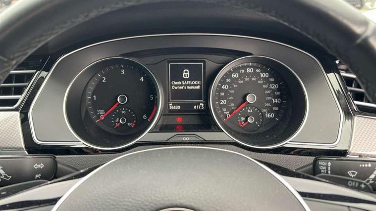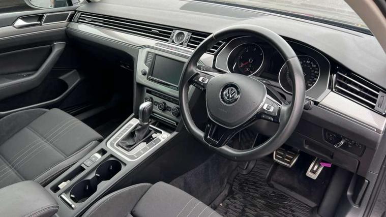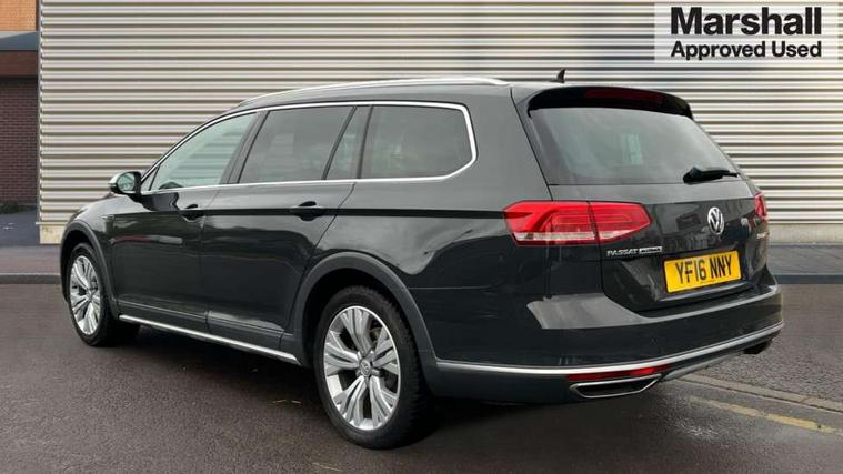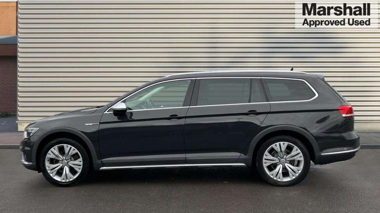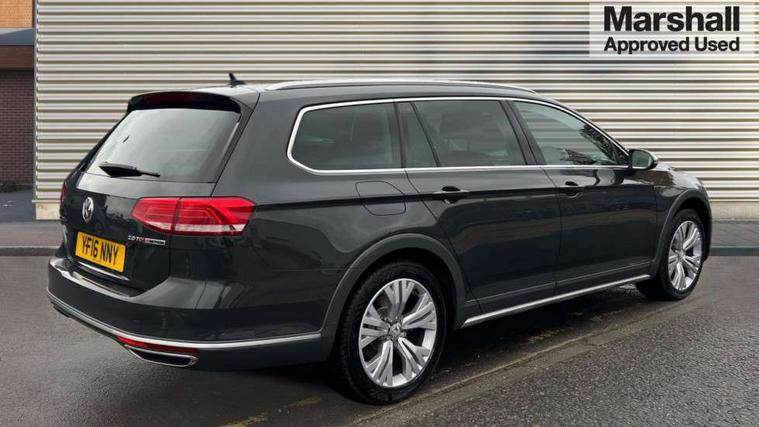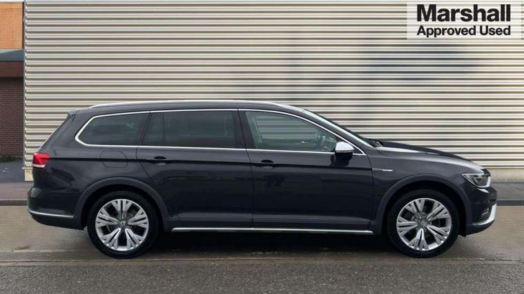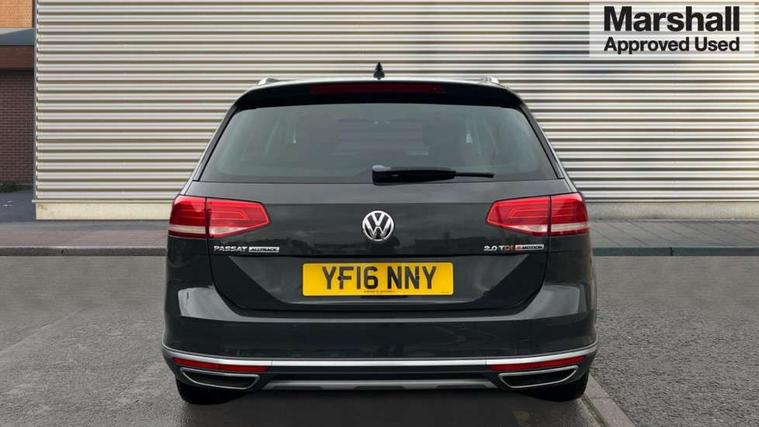 Adaptive cruise control, Analogue clock, Door/tailgate open warning lights, Driver alert system, Exterior temperature gauge with frost alarm, Low washer fluid warning light, Multi function display colour screen, Multifunction computer, Remote fuel flap release, Remote tailgate release, Service interval indicator, Speed sensitive power steering, Off road suspension, Auxiliary socket for external device, Composition media system with Radio/CD/MP3, DAB Digital radio, MDI with USB/iPod connection cables, SD card slot, Auto dimming rear view mirror, Automatic activation of hazard warning lights, Body colour bumpers, Body colour door handles, Chrome fog light surround, Chrome louvres in grille, Chrome side sills, Chrome side window surrounds, Chrome surround for air intake, Coming/leaving home lighting function, Electric folding mirrors, Electric front windows, Electric rear windows, Electrically adjustable and heated door mirrors, Front fog lights with static cornering function, Headlight range control, Heated rear window, Matt chrome door mirrors, Rain sensor, Silver roof rails, Twin Trapezoidal tailpipes, Windscreen wipers/ intermittent wipe + 4 position delay, 12V socket in luggage compartment, 12V socket in rear centre console, 3 rear head restraints, 3 Zone electronic climate control with automatic air recirculation, 4 boot load lashing points, 40:20:40 split folding rear bench seat, Driver's cushion tilt adjust, Entry lights on doors, Front + rear carpet mats, Front and rear interior lighting with delay and dimming function, Front centre armrest with storage compartment, Front comfort seats, Front cupholders x2 with covers, Front door pocket bottle holders, Front/rear reading lights, Height/reach adjust steering wheel, Leather gearknob, Leather multifunction steering wheel, Load through provision, Lockable, illuminated, cooled glovebox, Luggage compartment cover, removable, Luggage compartment lighting, Manual lumbar adjust on passenger's seat, Rear centre armrest with cupholder and storage, Stainless steel pedals, Stainless Steel Scuff Plates, Storage compartment in driver's door, Storage compartment in passenger's door, Storage compartment in rear doors, Storage compartment in roof console, Storage pockets in backrests of front seats, Sunvisors with illuminated vanity mirrors, Variable boot floor, Ambient lighting pack - Passat, 3 rear 3 point seatbelts, ABS, brake assist and EBD, Automatic post collision braking, Curtain airbags, Driver/Front Passenger airbags, Driver/Front passenger WOKS head restraints, Drivers knee airbag, Electronic parking brake with auto hold, Electronic stability control, ESP with EDL + ASR, First aid kit, Front assist including city emergency braking, Front side airbags, Height adjustable front 3 point seatbelts + pretensioners, Hill hold function, Passenger airbag deactivation system, Pre crash system, Rear side airbags, Seatbelt warning lamp and buzzer, Warning triangle, Alarm with interior protection, Electronic engine immobiliser, Keyless Start, Remote central locking with 2 remote folding keys, Chrome air vent and instrument surround, White instrument dials,