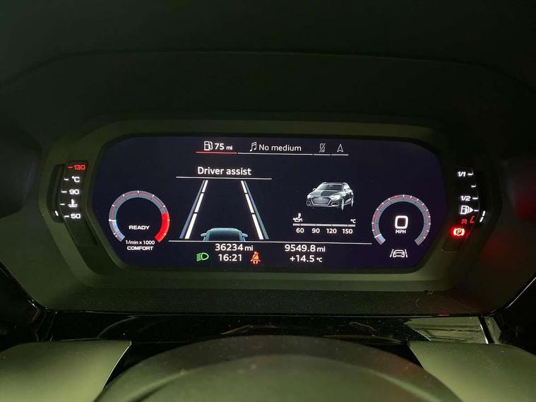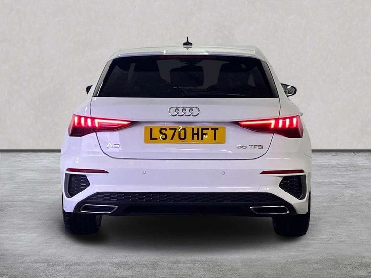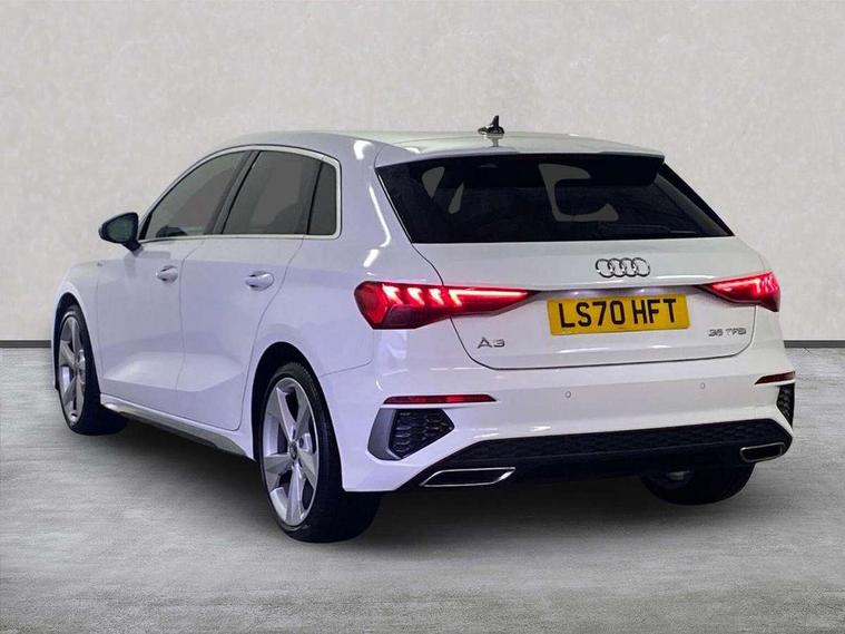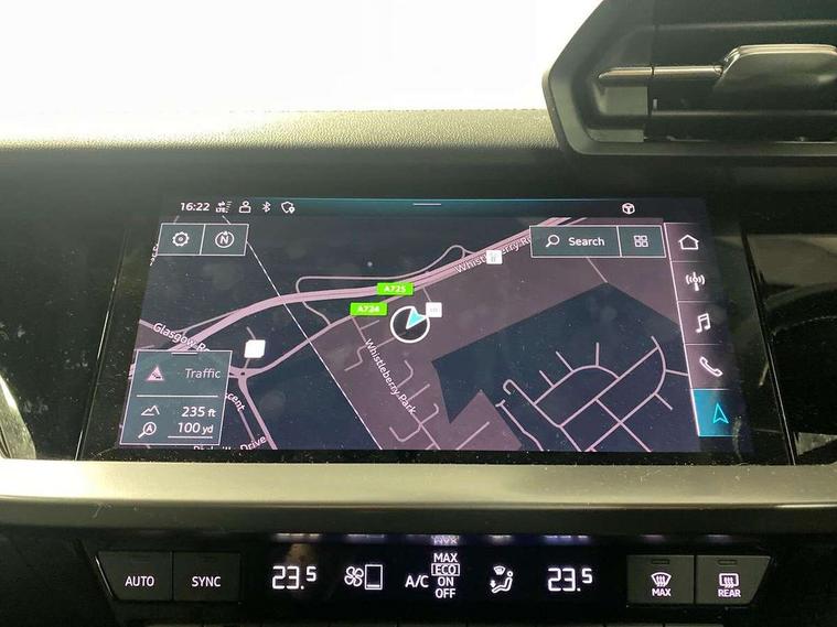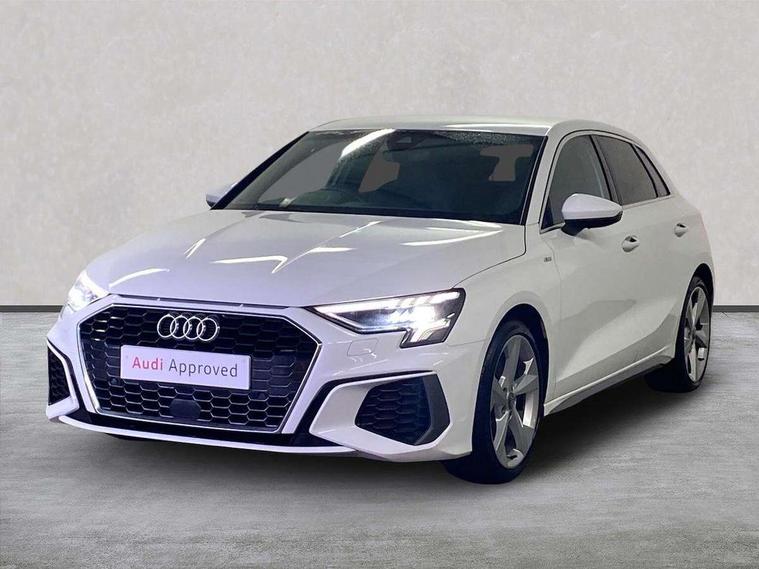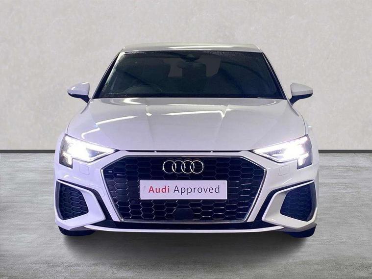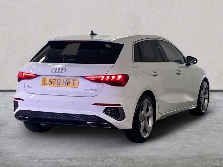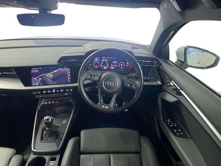 Audi connect emergency call and service, Audi drive select (Auto, Comfort, Dynamic, Efficiency and Individual), Audi smartphone interface, Audi Virtual Cockpit - 10.25" digital and colour instrument cluster, Automatic start/stop system with recuperation, Bluetooth interface, Collision avoidance assistant, Cruise control, Electromechanical power speed sensitive steering, Lane departure warning system, MMI Navigation Plus with high resolution 10.1" colour touch screen display, Rear parking sensors, Service indicator, Trip computer, Voice control system with natural language interaction, 1xUSB-A and 1xUSB-C connection, 6 passive loudspeakers, DAB Digital radio, Acoustic glass windscreen, Aluminium window trim, Auto dimming frameless rear view mirror, Body colour exterior mirrors, Electrically adjustable/heated/folding/dimming door mirrors with kerb view includes integrated LED indications + kerb view function for passenger side, Front electric windows, Illuminated aluminium inserts front door sills with S logo, LED daytime running lights, Light and rain sensors, Privacy glass - dark tinted rear window, rear door and side windows, Rear electric windows, Rear side air outlets in grained matt black, Rear wiper, S line bumpers, S roof spoiler, 12V socket and storage compartment in front centre console, 40/20/40 split folding rear seat bench with cupholder, Black cloth headlining, Dual zone electronic climate control, Front and rear centre armrest in leather, Front and rear headrests, Front/rear floor mats, Height and reach adjustable steering wheel, Interior lighting - glove compartment light and right hand side, Luggage compartment floor covering, Manual boot compartment lid, Manually adjustable front seats, Seat side bolsters, Stainless steel pedals and front footrest, Twin leather upholstery with front sports seats S embossed logo, Aluminium interior elements pack - A3 Sportback, S line styling pack - A3 Sportback, 3x3 point rear seat belts, Driver and front passenger airbag with passenger airbag deactivation, Electronic Stabilisation Control (ESC) including ABS, ASR and EDL, First aid kit with warning triangle and 2 safety vests, Hill hold assist, Pre-sense front with pedestrian and cyclist detection, Seatbelt monitoring, Tyre pressure loss indicator, Anti theft alarm, Anti-theft wheel bolts, Electronically operated child lock, Immobiliser, Remote control central locking, Accent surfaces in the dashboard and centre console in platinum grey silk effect paint finish, Dark spectrum aluminium inlays,