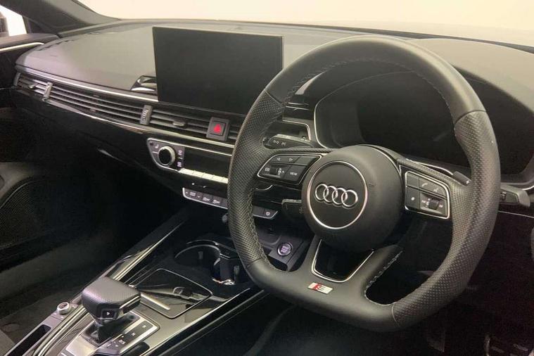 Audi connect safety and service (e-call), Audi connect with Amazon Alexa Integration, Audi drive select (Auto, Comfort, Dynamic and Individual), Audi parking system plus with front and rear sensors, Audi smartphone interface, Audi virtual cockpit - 12.3" full colour digital instrument cluster, vehicle/engine speed, Radio/media information+Driver assistance systems, Automatic start-stop system with coasting functionality and efficiency programme, Bluetooth interface, Electro-mechanical power steering, Email, calendar and text messages displayed via MMI, MMI nav+ with MMI touch - 10.1" high resolution MMI display, touch sensitive, 3D map, route/country info, dynamic route guide, personal route assist, Power operated tailgate, Rear view camera, Service interval indicator, Voice control system, Sports suspension lowered by 23mm, 8 passive loudspeakers, CD player, DAB digital radio reception, Two additional USB ports for rear passenger in rear centre console, Two SDXC card slots, Audi Beam uses LEDs to project the Audi logo, Audi matrix LED headlights with LED rear lights + dynamic front and rear indicators, Auto dimming door mirrors, Auto dimming rear view mirror, Black door mirror housings, Body colour door handles, Body colour front spoiler lip, Body colour side sill trim, Electric adjustable heated door mirrors, Electric folding door mirrors, Electric front windows, Exhaust tailpipe trims in dark chrome, Front and rear bumpers with side skirts, Front fog lights, Honeycomb structure radiator grille in grained matt black, Kerb-view function for passenger side, LED daytime running lights, LED side indicator lights integrated into door mirrors, LED third brake light, Privacy glass, Rain and light sensors, Rear diffuser in matt anthracite black with trim strip in matt aluminium silver, Rear side wing doors, S model rear spoiler in black, Side air inlets in grained matt black with matt aluminium silver inlay, Variable front intermittent wipers, Windscreen with acoustic glazing, 3 seat bench in 2nd row, 4 way electric lumbar support for driver and front passenger, 40/20/40 split folding 3 seater rear bench seat, Adjustable steering column, Black cloth headlining, Black perforated leather gearknob, Contrast stitching on seats, steering wheel and gear lever gaiter, Deluxe 3 zone electronic climate control, Front centre armrest, Front head restraints, Front/rear floor mats, Heated front seats, Illuminated door sill trim with S logo, ISOFIX child seat mounting and top tether, Luggage compartment mat, Manual seat adjustment, Rear centre armrest, Rear headrests, Single front passenger seat, Stainless steel pedals, Sunvisors with vanity mirrors, Black styling pack - A5 Coupe/Sportback, LED interior light pack - A5/RS5, 3x3 point rear seatbelts, 6 airbags - Driver, front passenger, curtain and side airbags, Electromechanical parking brake, Electronic Stabilisation Control (ESC) including ABS, ASR and EDL, Front passenger airbag deactivation, Height adjustable front seatbelts, Hill hold assist, Manual child lock in rear doors, Multi collision brake assist, Pop-up bonnet for pedestrian protection, Pre sense city, Seatbelt monitoring, Tyre pressure warning, Variable restraint system, Warning triangle and first aid kit, Anti theft alarm system, Anti theft wheel bolts, Immobiliser, Keyless Go, Remote central locking, Piano black finish inlay, 20" 5 twin spoke polygon design alloy wheels in gloss anthracite black and gloss turned finish, Tool kit, Tyre repair kit,