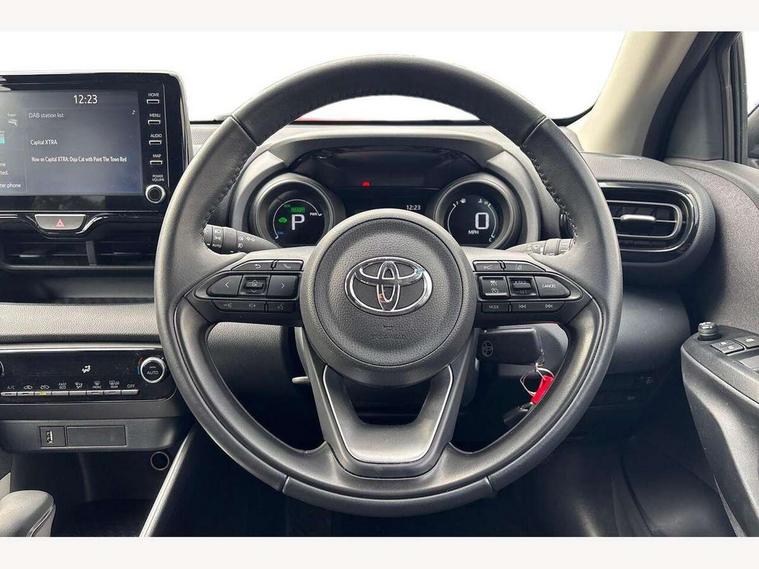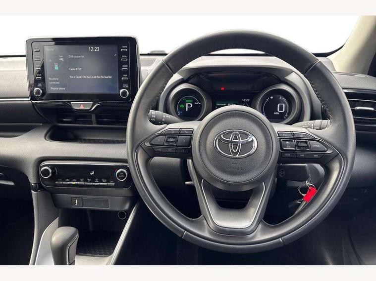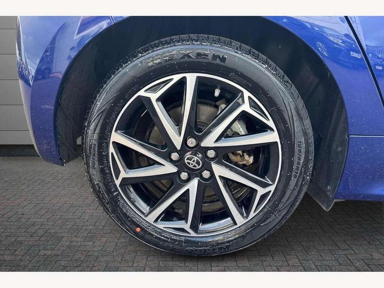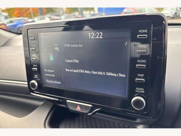 Adaptive cruise control, Adjustable speed limit with speed warning, Bluetooth connectivity, Colour binocular inspired displays with digital speedometer, E-call, Electric power steering, Hybrid energy display, Multi information display switches on steering wheel, Reversing camera, Smartphone integration with Apple CarPlay and Android auto, Tailgate, Voice recognition, Vehicle Stability Control (VSC), 4 speakers, 8" Multimedia display touch screen, USB connection, Acoustic windscreen glass, Auto windscreen wipers, Automatic headlights, Body coloured door mirrors, Electric adjustable heated door mirrors, Follow me home headlights, Front auto power windows with anti jam protection, Full LED rear lights, LED daytime running lights, LED front fog lights, LED front light guide, LED Headlights, LED High mounted stop lamp, LED Indicators, LED rear light guide, Manual headlight levelling, Painted chequered front grille, Rain sensor, Rear auto power windows with anti jam protection, Rear privacy glass, Rear side wing doors, Rear spoiler, Rear wiper, Shark fin antenna, Turning signal integrated indicators in door mirrors, Variable front intermittent wipers, 3 adjustable rear headrests, 3 seat bench in 2nd row, 3 spoke leather steering wheel, 60/40 split folding rear seat, Active headrests, Adjustable boot height, Auto air conditioning, Coat hooks in rear grab handles, Cup holders (2 front & door), Data Communication Module (DCM) connected services, Fabric upholstery, Front armrest, Glovebox, Grey roof lining, Height adjustable driver's seat, Isofix seat fixing, Leather gearshift, Pollen filter, Shopping bag hooks, Single front passenger seat, Tilt/telescopic steering column, 3 point seatbelts on all rear seats, ABS+EBD+Brake assist, Electronic parking brake, Emergency brake light system (EBS), Front passenger airbag on/off switch, Front seatbelt reminder, Hill start assist control (HAC), Rear child proof door locks, Rear seat belt reminder, Supplemental Restraint System (SRS) 8 airbags: Driver & passenger's airbags, dual side curtain airbags, side impact airbags, front centre airbag, Toyota Safety Sense 2, Precollison + Night time Pedestrian & Cyclist Detection, Lane Trace Assist, Auto High Beam, Intelligent ACC & Road Sign Assist, Tyre pressure warning system, 2x Master key, Alarm/immobiliser, Remote powered central double locking doors, Soft touch instrument panel, Space saver spare wheel,