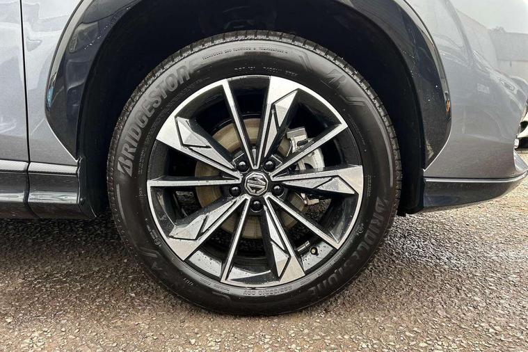 Driver attention alert, 12.3" colour touchscreen, 12.3" Virtual driver information display, 360 degree parking camera, Adaptive cruise control, Android Auto, Apple CarPlay, Blind spot detection, Bluetooth connectivity, Driver memory function, Emergency call service, Forward collision warning, Front parking sensors, Intelligent speed limit assist, iSmart, Lane change assist, Lane keep assist system (LAS) with Lane departure warning system (LDWS), Live services, PAS, Power tailgate, Rear cross traffic alert, Rear parking sensors, Satellite navigation system, Traffic jam assist, Trip computer, Wireless charging, 4 USB ports 2 front and 2 rear, 8 Speaker audio system, DAB audio, Auto dimming rear view mirror, Automatic headlights, Electric adjustable/heated/folding door mirrors with memory, Follow me home headlights, Front and rear aero wiper, Front and rear electric windows with one-touch up/down, Front fog lights, Intelligent high beam, LED 3rd brake light, LED daytime running lights, LED Headlights, LED rear lights, Rain sensing wipers, Rear privacy glass, Rear side wing doors, Silver roof rails, Vehicle to Load, 12V power sockets, 2nd row 60/40 split fold seat, 3 rear headrests, 3 seat bench in 2nd row, 3 stage heated front seats, 4 way electric adjustable passenger seat, 6 way electric adjustable drivers seat + lumbar support, Dual zone automatic air conditioning, Front and rear reading lights, Front centre sliding armrest with storage compartment, Front headrests, Height and reach adjustable steering wheel, ISOFIX restraints on outer rear seats x2, Multi function steering wheel, Single passenger seat, 3x3 point rear seatbelts, ABS/EBD, Active emergency braking with pedestrian/Bicycle detection, Anti rolling protection, Door open warning, Drivers seatbelt reminder, Dual front airbags, Electric parking brake with auto hold function, ESP, Front and rear passenger seat belt reminder, Front centre airbag, Front passenger airbag deactivation switch, Front seat belt height adjuster, Front seatbelts (3-point + pretensioner + load limiter), Front side airbags, Hill descent control, Hill launch assist, Manual rear child locks, Rear outer seatbelt pretensioner and load limiter, Side curtain airbags, Tyre pressure monitoring system, Alarm system and engine immobiliser, Keyless entry and push button start system, Remote central locking, Speed sensing door locks, 19" Blade diamond cut alloy wheels, Tyre repair kit,