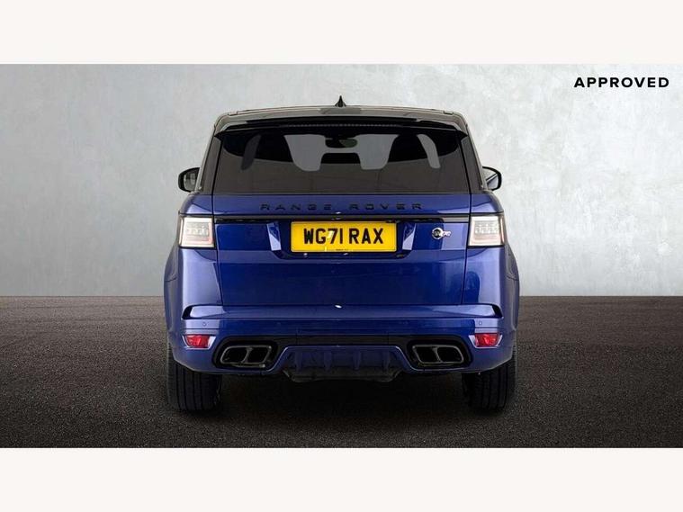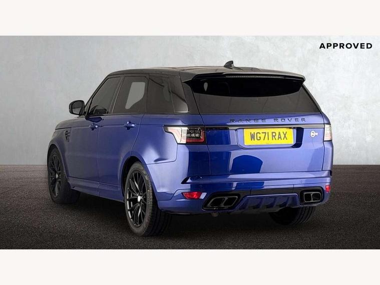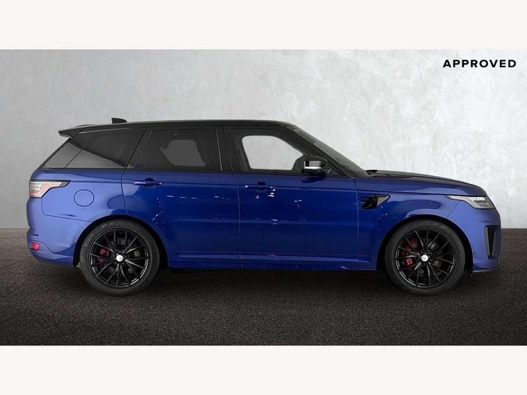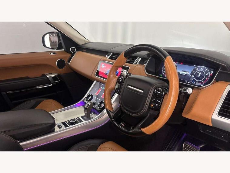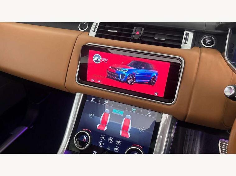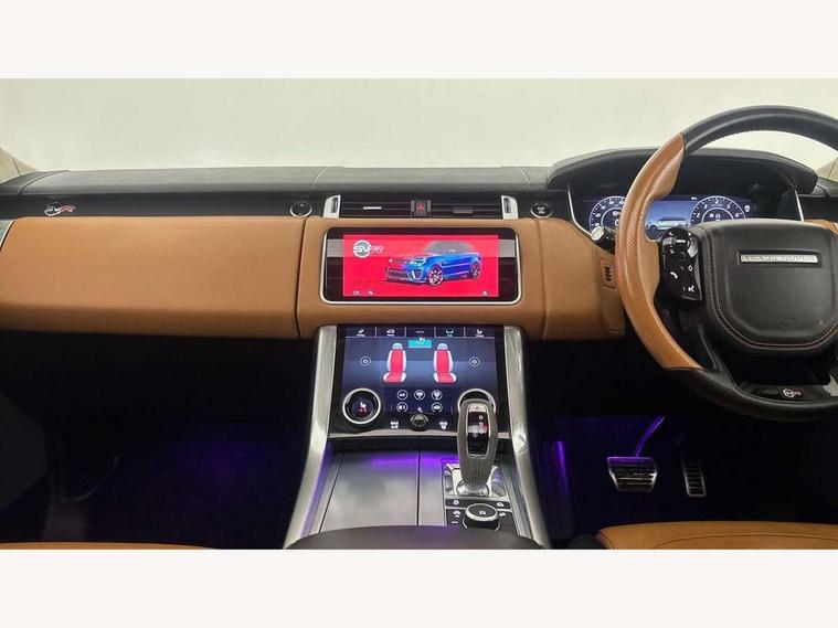 360 Parking aid, All Terrain Info Centre, Android Auto, Apple car play, Bluetooth connectivity, Clear exit monitor, Driver condition monitor, Electric power assisted steering (EPAS), Incontrol apps in vehicle touchscreen, Interactive Driver display instrument cluster, Mist sensor, Navigation pro system with 10" touch screen, app interface and media storage, Powered gesture tailgate/boot lid, Pro services and wifi hotspot, Push button start, Rear traffic monitor, Remote premium - Upgraded Incontrol remote app including remote climate control (engine dependent), remote lock + Unlock and remote beep + flash, Touch pro duo system, Traffic sign recognition with adaptive speed limiter, Trip computer, Adaptive dynamics, All terrain progress control, Configurable dynamics, Electronic active differential with brake torque vectoring, Gradient release control (GRC), SVR sports suspension with dynamic response (active roll control), Terrain Response 2 with dynamic program, Twin speed transfer box, Bluetooth audio streaming, DAB Radio (Digital Audio Broadcasting), Incontrol protect - SOS emergency call with automatic collision detection, optimised assistance call and Incontrol remote app essential, USB/aux input socket, Acoustic front and toughened rear side glass, Acoustic laminated front windows, Active exhaust system with integrated exhaust mounted quad tailpipes, Adaptive brake lights, Auto dimming interior rear view mirror, Automatic headlights, Body coloured side sills and bumpers corners, Centre high mounted stop light, Electric windows with one touch open/close and anti trap, Electrical towing preparation, Follow me home lighting, Front and rear recovery eyes, Headlight power wash, Heated rear window, Heated windscreen includes heated washer jets, Illuminated metal treadplates with brand name script, LED rear lamps, Power fold, auto-dimming, heated door mirrors with memory and approach lights, Rain sensing windscreen wipers, Rear fog lights, Rear side wing doors, Rear wash/wipe, Remote window closing, Side repeater indicators in mirror, SVR badge, SVR exterior styling, Switchable sports exhaust, Trailer stability assist, Unique light weight exhaust system, 16 way driver/passenger electrically adjustable SVR performance seats with memory, 2 way rear head restraints, 3 seat bench in 2nd row, 4 way lumbar support with memory function, 60/40 split folding rear seat, Aluminium gear shift paddles, Auto air recirculation, Bright metal foot pedals, Centre console with armrest, Climate control memory, Configurable Ambient interior lighting, Customer configurable single point entry, Driver's footrest, Extended leather upgrade includes door top rolls and leather instrument panel mid section, Front and rear cupholders, Front and rear premium carpet mats, Front door storage space, Front map lights, Front seat back map pockets, Front stowage pocket, Front/rear passenger grab handles, Heated steering wheel, Integrated front head restraints, Isofix child seat preparation, Loadspace light, Loadspace mounting provisions, Lockable glovebox, Multifunction steering wheel, Pollen filter, Power socket, Reach/rake electric adjustable steering column + entry/exit tilt away, Rear centre armrest, Rear ISOFIX, Roller blind loadspace cover, Single front passenger seat, Sports pedals, SVR leather steering wheel, SVR Performance seats, Three 12V accessory power outlets, Smartphone pack - Range Rover Sport, 3 point seatbelts on all seats, Anti-lock braking system (ABS), Brake pre-fill technology, Cornering brake control (CBC), Curtain airbags, Customer configurable autolock, DSC - Dynamic Stability Control, Dual stage driver/passenger airbags, EBD - Electronic brakeforce distribution, Electric parking brake, Electronic traction control, Emergency braking includes city, urban AEB and pedestrian, Front seatbelt pretensioners, Gradient acceleration control, Height adjustable front seatbelts, High speed emergency braking, Hill descent control, Hill launch assist, Low traction launch, Passenger seat occupant detector with front airbags, Power operated child locks, Roll stability control, Seatbelt warning, TPMS (Tyre pressure monitoring system), Immobiliser, Intrusion sensor, Keyless entry, Locking wheel nuts, Perimetric and volumetric anti theft alarm, Remote locking,