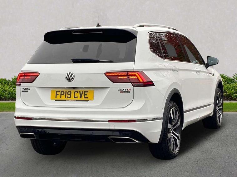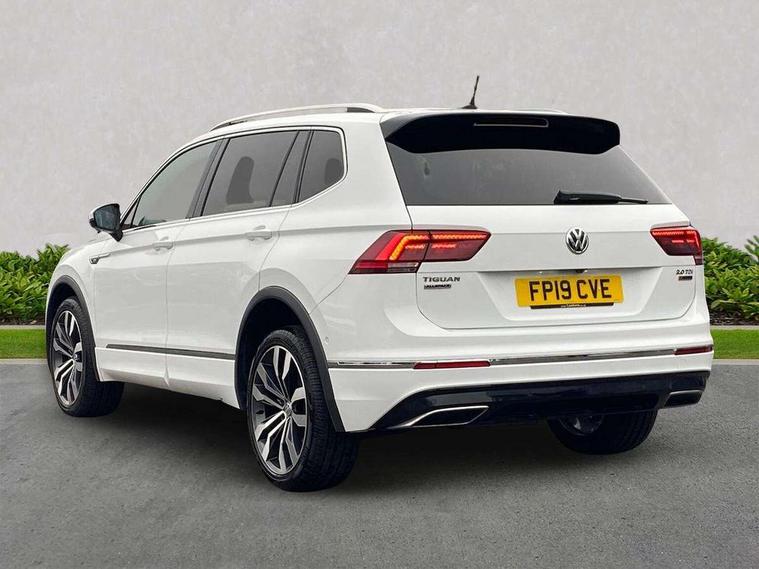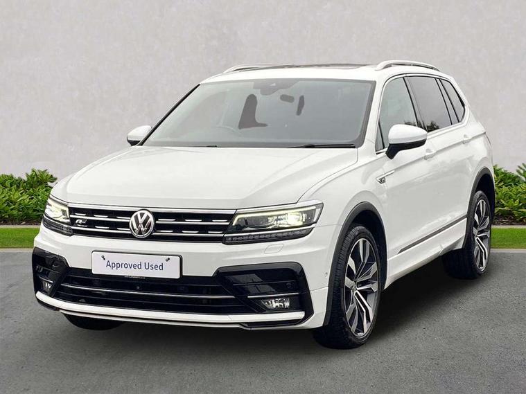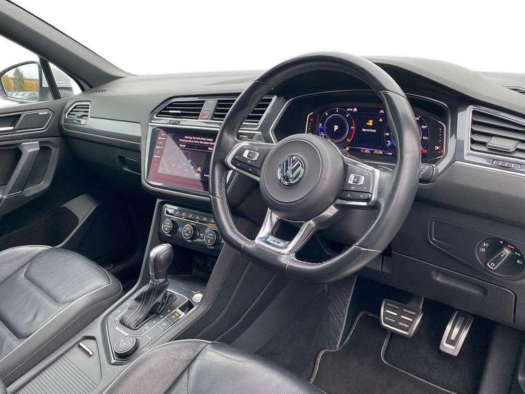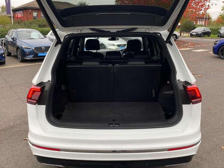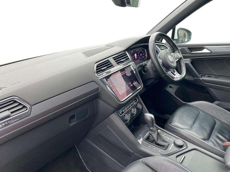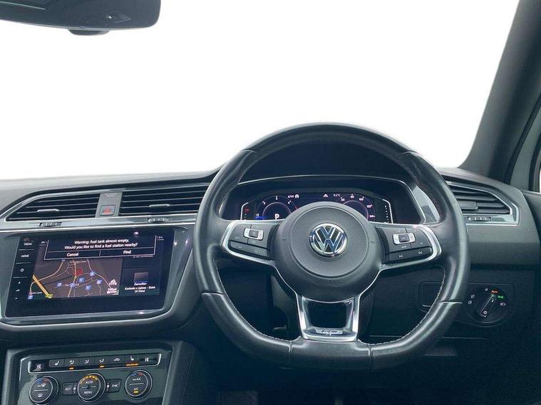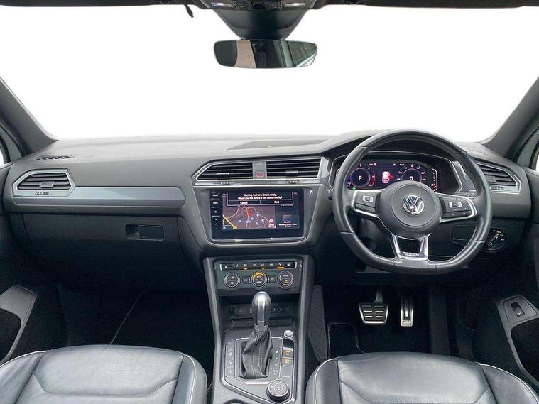 App-Connect, Active information display, Adaptive cruise control, Area view with park assist steering and front and rear parking sensors, Bluetooth phone integration system, Car-Net Security and Service, Coasting function, Drive mode selector, Driver alert system, Driver profile selection, Fatigue detection system, Front assist, radar sensor controlled distance monitor, city emergency braking + predictive pedestrian protection, Fully electric tailgate + keyless entry and start, Instrument cluster, Lane assist, Low washer fluid warning light, Outside temperature display, Progressive power assisted steering, Service interval indicator, Speed limiter, Start/Stop function, Warning sound and light for doors and tailgate open, Battery regeneration during braking, Diesel particulate filter, Misfuel prevention device, Sports suspension, 2x USB sockets in front, 4 X 20 watt output, Aux-in socket, DAB Digital radio, Dynamic navigation based on TMC+, Music playback - MP3, WMA and AAC files, SD card slot, Simultaneous pairing of 2 compatible mobile devices, SMS Functionality, Three route options - Fast, Short, Eco, Title and cover art display, Volkswagen media control, 3D effect cherry red LED rear tail lights, Aluminium decorative inserts in dash and door panels, Auto dimming interior mirror, Automatic activation of hazard warning lights, Body colour door handles, Body colour door mirrors, Chrome side window surrounds, Chrome trimmed radiator grille, Coming/leaving home lighting function, Door mirror puddle lights, Dusk sensor + auto driving lights, Electric panoramic sunroof with sunblind, Electrically heated and foldable door mirrors, door mirror puddle lights and reverse activated kerb view adjustment on passenger's door mirror, Front air intake with chrome strip, Front and rear electric windows, Heated rear window, Heated windscreen washer jets, High level 3rd brake light, LED headlights with dynamic light assist daytime running lights and cornering front fog lights, LED rear number plate lights, Rain sensor windscreen wipers, Rear tinted windows from B pillar back, Rear windscreen washer and wiper with interval delay, Silver anodised roof rails, Twin trapezoid chrome exhaust pipes, Unique R Line badging, Windscreen wipers/ intermittent wipe + 4 position delay, 12V socket in centre console storage area, 12V socket in luggage compartment, 12V socket on rear of front centre armrest, 2 cup holders in front, 2 head restraints in 3rd row, 2 individual 3rd row seats, 3 head restraints in 2nd row, 3 single seats foldable in 2nd row, 3 zone climate control, 4 load lashing points, Assymetric split folding rear bench seat and backrest with centre armrest, Bag hook in luggage compartment, Black headlining, Driver + front passenger lumbar support, Foldable front passenger seat backrest, Front + rear carpet mats, Front centre armrest with storage compartment, longitudinal and height adjustable and two rear air vents, Front seat R Line logo with rear seat backrest, Front seatback folding tables, Height/reach adjust steering wheel, Illuminated driver/passenger vanity mirrors, Illuminated scuff plates, Instrument lighting white adjustable panel illumination, Interior light with delay, Isofix Preparation 2 Rear child seats, Leather gear knob, Leather trimmed three spoke multifunction steering wheel with aluminium inserts and paddle shift, Load through provision with 2 cupholders when folded, Lockable cooled glovebox, Luggage compartment lighting, Luggage compartment side storage, Map pockets on front seats, Passenger seat height adjuster, Rear cupholders, Removable luggage cover, Sliding/reclining rear seats, Stainless steel pedals, Storage compartment in driver's door, Storage compartment in passenger's door, Storage compartment in rear doors, Storage tray on dashboard, Sunglasses storage, Unique R Line door sill protectors, Variable boot floor, Ambient lighting pack - Tiguan, R Line styling pack - Tiguan, 3 point seatbelts on all seats, ABS+EBD+Brake assist, Active bonnet, Active pedestrian safety system, Curtain airbags, Driver/Front Passenger airbags, Driver/Passenger whiplash optimised head restraints, Drivers knee airbag, Electronic parking brake with auto hold, ESC with EDL, ASR, EDTC and trailer stabilisation function, First aid kit, Front and rear brake disc, Front seat side impact airbags, Front side airbags, Front ventilated brake discs, Head airbag system, Height adjustable front 3 point seatbelts + pretensioners, Hill hold control, Passenger airbag deactivate switch, Passenger knee airbag, Pre crash system, Rear side airbags, Rigid safety cell with front and rear crumple zones, Seatbelt warning lamp and buzzer, Two tone horn, Volkswagen roadside assistance, Warning sound and light for front seat belts if unfastened, Warning triangle, Alarm with interior protection, Electronic engine immobiliser, Remote central locking with 2 remote folding keys, Chrome door trim inserts, Piano black interior trim, 20" Suzuka alloy wheels + anti theft wheel bolts, Steel space saver spare wheel,