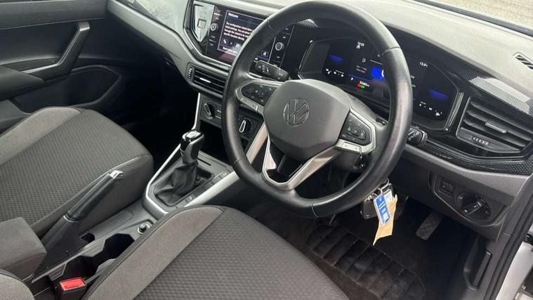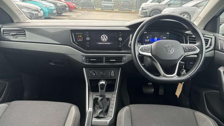 Adaptive cruise control with follow-to-stop and speed limiter, Bluetooth mobile phone interface, Driver alert system, Emergency call service, Front assist system, Power assisted speed sensitive steering, Preparation for We connect and We connect plus, Speedo and rev counter, electronic odometer, trip, service interval display and fuel gauge, Standard rear axle, Travel Assist - Lane keeping system and traffic jam assist, Travel assist including emergency assist, Trip computer, Warning signal and warning light for front and rear seatbelts not fastened, Washer fluid level indicator, Wireless app connect, Front wheel drive, Rear shock absorpion, Start-stop system with battery regeneration (recuperation - energy recovery during braking), DAB Digital radio, Diversity antenna for FM reception, Front and rear 6 speakers, Automatic dimming interior rear view mirror, Body colour bumpers, Body colour door handles, Body colour door mirrors, Chrome plated radiator grille inserts, air vent surrounds and light switch surrounds, Electric front windows, Heat insulating glass in side and rear windows, Heat insulating glass windscreen, Power folding adjustable/heated exterior mirrors and front passenger exterior mirror lowering function, Rain sensor, Rear electric windows, Rear fog light, Rear side wing doors, Rear windscreen washer and wiper with interval delay, Third brake light, 12V power socket in centre console, 2 front and 2 rear reading lights, 2 USB-C ports in the front, 2 USB-C charging sockets on the center console in the rear, 3 rear head restraints, 60/40 split folding rear seat and rear seat bench not split, Ceramique headliner, Door and side trim panel, Driver and front passenger seat height adjustment, Driver/passenger sunvisors with illuminated vanity mirrors, Front centre armrest, Front seat backrest storage pockets, Front standard seats, Handbrake lever handle in leather, Hartley/Thomas cloth upholstery, Isofix child seat preparation easy-fit (for two outer rear seats, and front passenger seat) compatible with I-size, Leather trimmed gear knob, Luggage compartment cover, Luggage compartment floor, Luggage compartment lighting, Single front passenger seat, Standard pedal cluster, Three spoke leather wrapped multifunction steering wheel with shifting paddles, Light and vision pack - Polo, 3 point height adj front seatbelts + pretensioners, 3x3 point rear seatbelts, ABS, Driver and front passenger airbag with front passenger airbag deactivation, Drivers and front passengers safety optimised head restraints, ESC (Electronic stability control) + EDL (Electronic Differntial lock) and ASR (Traction control), Extended and predictive pedestrian/ cyclist protection, Front curtain and side airbags with center airbag, Front disc brakes, Hill hold control, Manual child lock in rear doors, Rear drum brakes, Single tone horn, Tyre pressure loss indicator, Alarm with interior protection, Anti-theft alarm system with interior monitoring, backup horn, and towing protection, Anti-theft wheel bolts, Electronic engine immobiliser, Lava stone black gloss/matt decorative inserts in dash and front door panels, Low rolling resistance tyres,