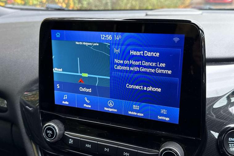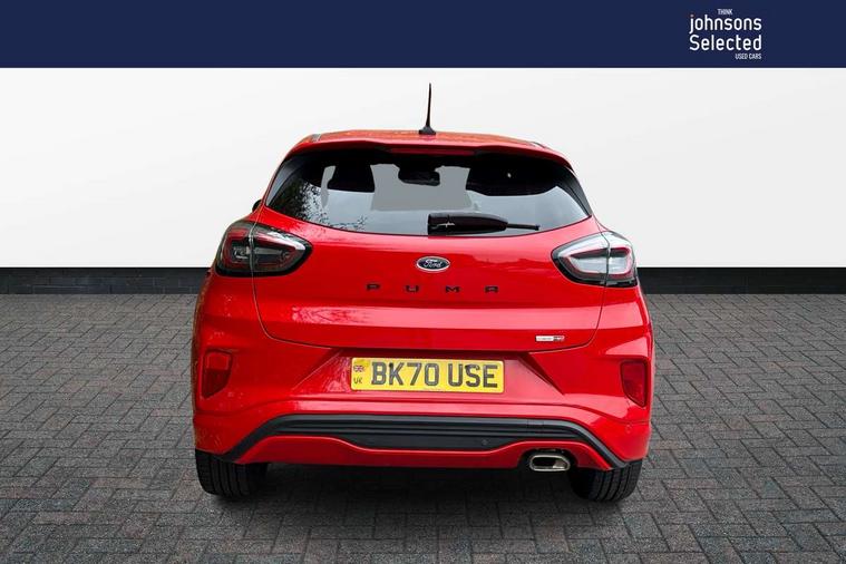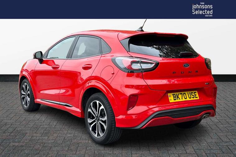 Ford easy fuel, Full digital 12.3" instrument cluster, Lane keeping aid with lane departure warning, Power assist steering, Rear parking sensor, Selectable drive modes(Normal, sport, Eco, trail, slippery), Wireless charging pad, Automatic headlights with rain sensing wipers and auto high beam, Body coloured door mirrors, Front fog lights with cornering lights and LED rear lamps, Power foldable heated door mirrors with puddle lamps, Quickclear heated windscreen, Rear wiper, ST-Line body kit with large rear spoiler wth sports suspension, Alloy sports pedals, Centre console with armrest and stowage, Court cloth upholstery with belgrano bolsters, Driver seat height/lumbar adjust, Ford megabox extended bootspace, Front and rear floor mats, Front and rear head restraints, Manual air conditioning, ST-Line flat bottomed sensico leather steering wheel with leather handbrake and aluminium gear knob, 3 rear seatbelts, Electronic stability control (ESC) and hill start assist, Pre-collision assist with autonomous emergency braking, pedestrian/cyclist detection & post-collision braking, Tyre pressure monitoring system (TPMS), Thatcham alarm, Tyre inflation kit,