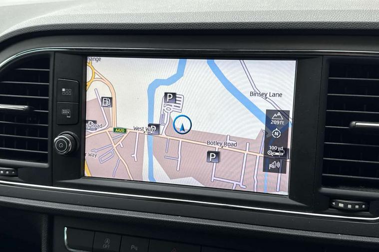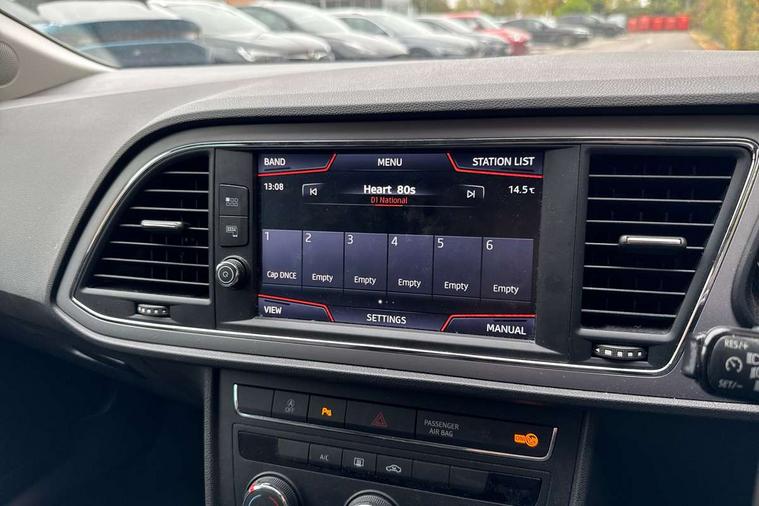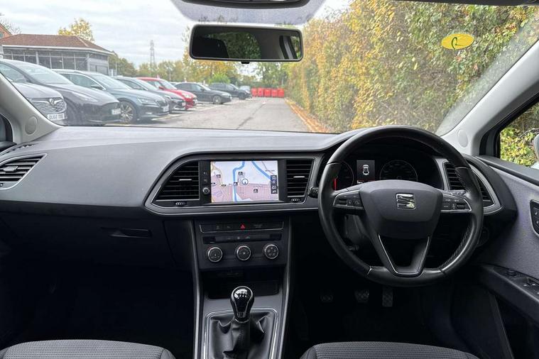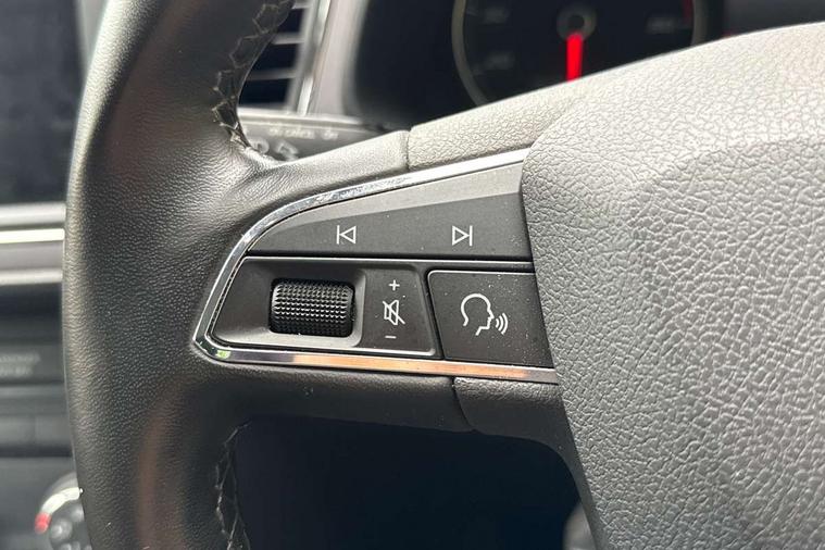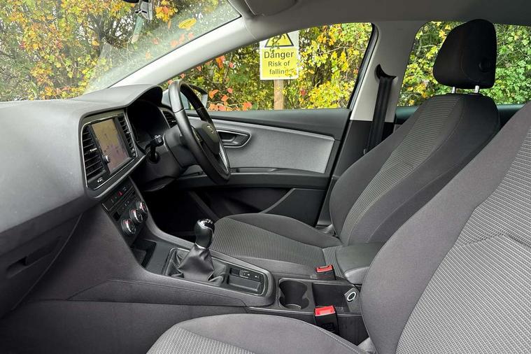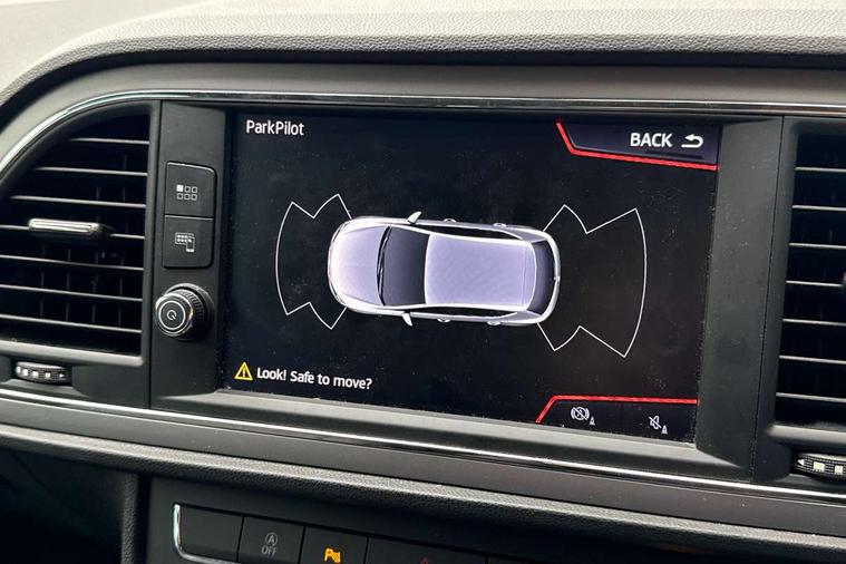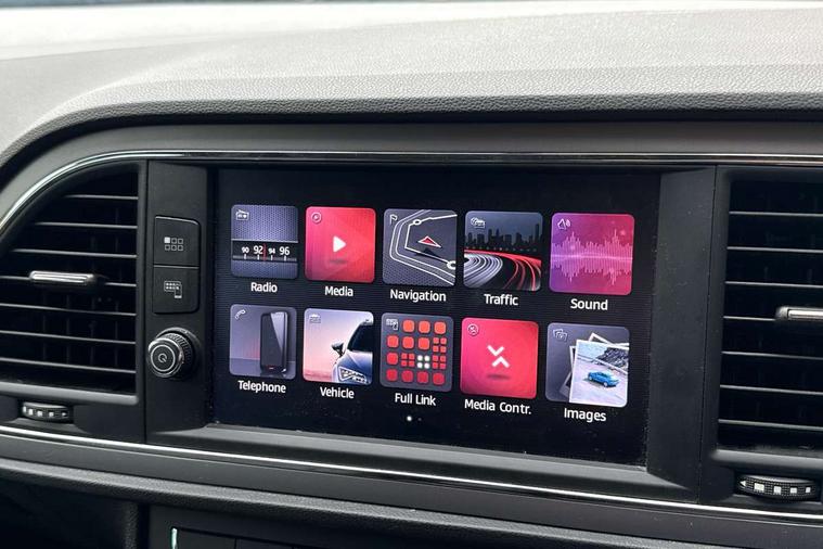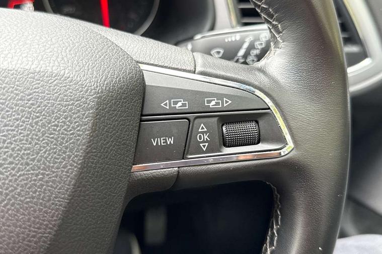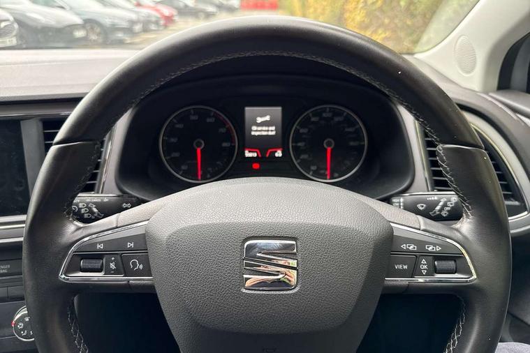 Electro-mechanical power steering, Front and rear parking sensors, Front assist with pedestrian protection, Full Link Smartphone Integration with Mirror Link, Apple Car Play, Google Android Auto with USB Type C cable for Apple and Android compatibility, Media system plus with 8" display, 4 USB, 8 speakers, CD, voice control, DAB, bluetooth and handsfree, steering wheel mounted audio and phone control, Navigation system 3D map display, high resolution colour driver display, two SD card slots, RPM, trip computer, outside temp gauge, instrument light brightness, low fuel warning light, lights on reminder, gearshift indicator, SEAT logo boot release, Service interval indicator, Comfort suspension, XDS electronic differential lock, Auxiliary input socket, SEAT USB media cable, Black front grille, Body colour door handles, Body coloured bumpers, Body coloured exterior mirrors with integrated LED indicators, Dark tinted rear windows, Electric front/rear windows, Electrically adjustable and heated door mirrors, Front fog lights with cornering function and rear fog light, Front grille frame in chrome, Halogen headlights with small LED daytime running lights, Hidden exhaust pipe, High gloss black finish B and C pillars, Rear wash/wipe, 12v power point in centre console, Additional heating and ventilation outlet in rear of centre console, Air conditioning, Boot storage net, Cargo rings in boot, Driver and passenger seat height adjust, Driver and passenger sun visor, covered and illuminated mirror, driver sun visor with card holder, Driver seat lumbar adjustment, Dust/pollen filter, Folding rear seats, Front and rear head restraints, Front centre armrest with storage compartment, Front comfort seats in Tresil cloth, Front cupholders x 2, Front seatback storage pockets, Front/rear floor mats, Height adjustable front and rear headrests and third rear headrest, Height/reach adjust steering wheel, High centre console with integrated box & cup holder, rear air outlet, with armrest in front seats, Illuminated glovebox, ISOFIX points in outer rear seats with top tether anchorage points, Leather steering wheel and gear knob, Luggage tie-down hooks, Storage box under drivers seat, 3 point seatbelts on all rear seats, ABS, traction control system, electronic stability control, Child proof door locks, Driver and front passenger airbags with front passenger airbag de-activation, front side, curtain, driver knee airbags, EBA, Electric handbrake, Electronic parking brake with auto hold, Front seatbelt pretensioners, Front seatbelt reminder, Hill hold control, Multi-Collision braking, Tyre pressure monitoring system, 2 folding remote keys with window open/close and boot opening function, Central locking fuel filler cap, Engine immobiliser, Locking wheel bolts, Remote central locking + deadlocks, Volumetric alarm with back up horn, Chrome interior detailing, 17" Dynamic alloy wheels 30/3,