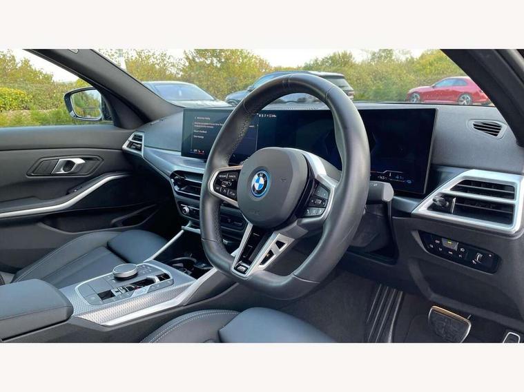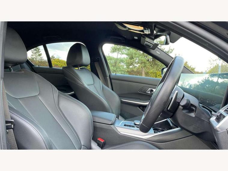 Active guard plus, Attentiveness assist, Automatic Start/stop button, Bluetooth Wi-Fi interface, BMW iDrive, BMW Teleservices, ConnectedDrive Services - last state call, Live cockpit plus with Navigation + 12.3" instrument display + 14.9" display, Intelligent voice assist, 2 USB, 4G LTE connect, Oil sensor for level and grade, Personal e-SIM, Shifting point display, Double joint spring strut front axle, Fuel tank breather system, Public mode 3 professional fast charging cable with 5m length, Steptronic Sport automatic transmission with steering wheel mounted gearshift paddles launch control and xtreme drive lever control, DAB tuner, 3rd brake light, Auto dimming rear view mirror, Automatic headlight beam throw control with load dependent regulating reaction, dynamic compensation of braking dive and acceleration squat, Bi-LED Low and high beam headlights, BMW emblem, engine compartment lid and tailgate, Body colour roof fin, Door sill strips, Electric windows - front and rear, with open/close fingertip control, anti-trap facility and comfort closing, Fading support, Follow me home headlight function, Front and rear bumper system with replaceable deformation elements, Front apron plastic in body colour, Fuel filler flap - right rear in body colour, Heat protection glazing on front windows and windscreen, Heated washer jets, High gloss chrome kidney frame with high gloss black kidney struts, LED daytime running lights, LED rear lights, LED turn indicator, Licence plate panel integrated into front bumper and tailgate, M high gloss shadow line exterior trim, Matt black B-pillar finsher, Matt black window recess cover, Model designation on right side of tailgate, One piece front bumper cover including towing eye cover in body colour, Rain sensor with automatic headlight activation, Rear boot, Rear side wing doors, Reversing lights, Side frame decorative moulding black matt, Trailer stabilisation logic, Visible exhaust tailpipe finisher, Welcome lights in interior and door handle area, 12V power socket in front storage compartment, 2 front cupholder in centre console with clamping elements and matt black inlay, 3 seat bench in 2nd row, 3 spoke M Sport multifunction flat bottom leather steering wheel, 3 zone automatic air conditioning, 40:20:40 split folding rear seat with loading system, Anthracite headlining, Armrest integrated in front and rear door trim + front centre console armrest, Battery in luggage compartment, BMW ID, Cruise control operation in steering wheel, Driving experience mode switch, Folding rear centre armrest with 2 cupholders, Front and rear headrests, Front and rear velour floor mats, Front reading light, Heated front seats, Height adjustable mechanically and infinitely variable steering column, Illuminated armrest storage compartment, Illuminated glove compartment, Illuminated luggage compartment, Lashing eyelets in luggage compartment, Single front passenger seat, Sunvisors with illuminated vanity mirrors and ticket pocket, Toolkit located in luggage compartment, Connected pack professional - 3 Series Saloon/Touring, Interior and exterior mirror pack - 3 Series Touring/Saloon, M sport exterior styling pack - 3 Series Saloon/Touring, Parking assistant pack - 3 Series, 3x3 point rear seatbelts, BMW emergency call, Child locks on rear doors, Crash sensor activating of airbags, Unlocking doors, hazard warning lights, interior light, safety battery terminal, Drive-off assistant, Driver and front passenger with seat occupancy detection for driver's and passenger side, Driver and passenger side airbags, body protection at side and airbags deploy from seat backrests, Dry braking, Dynamic brake control, Dynamic stability control + (DSC+) - Anti-lock Braking System (ABS) with brake assist and cornering brake control + Automatic Stability Control (ASC), Dynamic Traction Control - DTC, Electric parking brake including automatic hold function and automatic release of the parking brake when driving off, Electronic differential lock control (EDLC), Front airbag deactivation, Front airbags for driver and front passenger, Head airbags in 1st and 2nd row, head protection at side, curtain airbags open from headliner above 1st and 2nd row, Plastic fuel tank, Side impact protection, Tyre pressure sensors, Ventilated front and rear disc brakes, Warning triangle and first aid kit, Alarm system, Centre lock switch, Closing system with central locking, Electronic vehicle immobiliser, Locking wheel bolts,