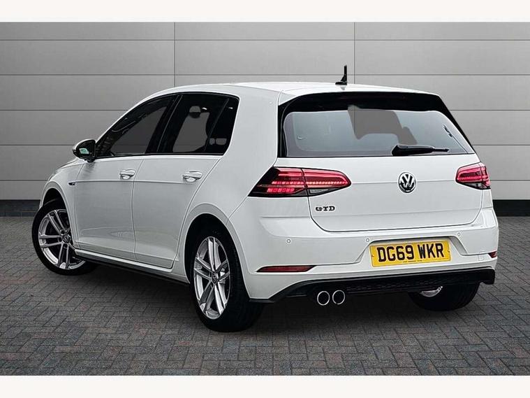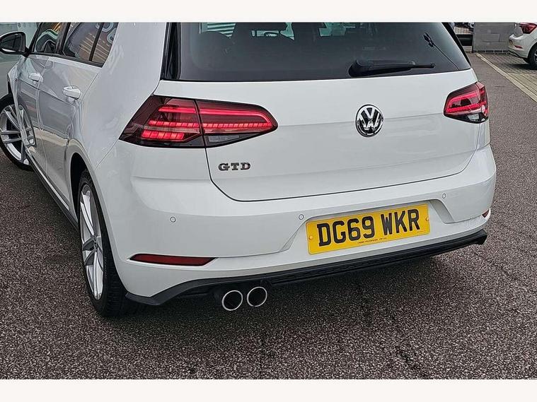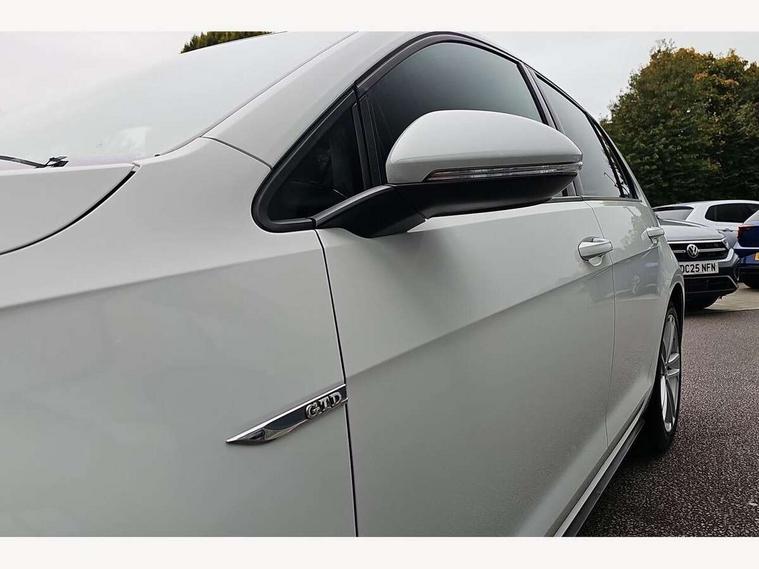 'Lights On' Reminder warning buzzer, ACC - Adaptive cruise control with front assist, forward collision warning, distance monitoring, city emergency brake and speed limiter, Bluetooth telephone and audio connection for compatible devices, Brake pad wear indicator warning light, Driver alert system, Driver profile selection, Driving Mode Selection with four preset modes - Eco, normal, sport or individual modes, Instrument cluster in white, Lane assist with dynamic light assist and traffic sign recognition, Misfuelling protection device, Multifunction computer with visual gear change recommendation for fuel consumption, Progressive power assisted steering, Push tank flap, Rear view camera, Speedo, rev counter, electronic odometer, trip, service interval display, exterior temperature and fuel gauge, Stop/start system, Warning buzzer and light for front seatbelts unfastened, Anti-tramp function, Battery regeneration during braking, Diesel particulate filter, Lowered sports suspension, XDS plus electronic differential lock, Composition media system, DAB Digital radio receiver, MP3/WMA compatability, Multi device interface (MDI) with USB connection, Premium USB cable in choice of either Apple or Android smartphone compatibility, SD card slot, SMS Functionality, USB and SD card connectivity, Volkswagen media control, 3D-LED tinted rear light clusters with indicator sweep function, Black rear diffuser, Body colour door handles, Body colour door mirrors with integrated indicators, Body colour rear roof spoiler, Body colour sports bumpers, Dusk sensor + automatic driving lights, Electric front windows, Electric rear windows, Electrically adjustable and heated door mirrors, Fully galvanised body, GTD logo lettering on front wings on right and left, Heated rear windscreen, High level 3rd brake light incorporating LED Technology, Honeycomb radiator grille - black, LED daytime running lights, LED front fog lights with static cornering light function, Rear fog lamp, Rear window aerial, Rear window wash/wipe with intermittent wipe, Reflectors in all doors, Shiny black aerofoil downside, Sill extensions, Twin exhaust tailpipe, Unique GTD badging, Uniquely shaped front/rear bumpers, Windscreen wipers/ intermittent wipe + 4 position delay, 12V socket in luggage compartment, 3 rear headrests, 4 load lashing points in luggage compartment, 60/40 split folding rear seat backrest, Bag hook in luggage compartment x 2, Black headlining, Climate control - 2 zone electronic air conditioning with automatic air recirculation and allergy filter, Cooled glovebox, Dust/pollen filter, Front + rear carpet mats, Front centre armrest with storage compartment and two rear air vents, Front seat back storage pockets, Grab handles front x 2, rear x 2 with integrated coat hooks, Height and reach adjustable steering wheel, Illuminated door sills, Illuminated vanity mirrors, Instrument lighting white adjustable panel illumination, Interior light delay, Isofix preparation for 2 rear child seats, Leather gear knob and handbrake grip, Load through provision with rear centre armrest and cupholders x2, Luggage compartment lighting, Multifunction leather steering wheel with GTE logo and selector lever boot grip with grey stitching including paddle shift, Overhead storage box, Stainless steel pedals, Storage box in luggage compartment, Storage compartment in roof console with cover, Storage compartments in front doors, Storage compartments in rear doors, Stowable luggage compartment cover, Sun visors, Variable boot floor, height adjustable and removable, Ambient lighting pack - Golf, Convenience Pack - Golf, Light and Sight pack - Golf, Mirror pack - Golf, 3 rear three point seatbelts, Airbags - Driver's and front passenger's, curtain airbag, Driver's knee, front side impact and passenger's airbag deactivation switch, Anti-lock Braking System (ABS) with Hydraulic Brake Assist (HBA), Automatic post collision braking system, Child locks on rear doors, Driver/Passenger optimised head restraints, Electronic parking brake with auto hold, Electronic stability control (ESC) including Electronic differential lock (EDL) and ASR (Traction control) with deactivation via infotainment system, Front ventilated disc brakes and rear disc brakes, Pre crash preventive occupant protection, Three point height adjustable front seatbelts with tensioners, Tyre pressure loss indicator, Alarm with interior protection and deactivation via infotainment system, Electronic engine immobiliser, Keyless entry with start/stop button on centre console, Remote central locking with 2 remote folding keys, Chrome plated air vent surround, Chrome plated electric mirror adjustment light switch surround, Honeycomb black decorative inserts, Piano black centre console, 17" Curitiba alloy wheels with anti theft wheel bolts, Steel space saver spare wheel,