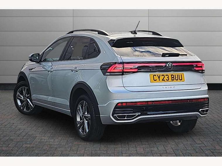 App-Connect including App-Connect Wireless, Digital cockpit pro - 10.25" high resolution TFT dash display screen with customizable menus and information, Driver alert system, Driving profile selection, e-Call (emergency call), Power Steering, Travel assist including emergency assist, Washer fluid level indicator, Wireless Charging including Bluetooth, Start-stop system with battery regeneration (recuperation - energy recovery during braking), XDS electronic differential lock for improved traction and handling, Digital radio reception (DAB+), Diversity antenna for FM reception, WeConnect plus, Aspherical driver's exterior mirror, Auto headlights, Body coloured bumpers, Body coloured exterior mirror housings and door handles, Bumpers in R-Line style, Electric windows, External USB type C socket and charging sockets, Front fog lamps with cornering function, Front scuff plates with R-Line logo, Headlight range control, LED headlamps, LED rear combination lamp, LED third brake light, Left convex exterior mirror, Power folding adjustable/heated exterior mirrors and front passenger exterior mirror lowering function, Rear fog light on one side, reversing light on both sides, Rear side wing doors, Rear wash/wipe with intermittent wipe setting, 12V socket in centre console, 2 front reading lights, 3 rear head restraints, 3 seat bench in 2nd row, Air care climatronic air conditoning system with active combination filter and 2-zone temperature control, Ambient lighting with logo projection, Black carpets, Black roof lining, Child seat anchor for child seat system i-Size, 2x top tether and child seat anchor in front on front passenger side, Chrome bezel for instrument cluster, vents, door handles + gear shift, Driver and front passenger seat height adjustment, Front + rear carpet mats, Front centre armrest, Front footwell illumination, Front sports comfort seats, Height and reach adjustable steering wheel, Interior ambient lighting and surround lighting, Karoso artvelours cloth upholstery, Leather trimmed gear knob, Leather wrapped multifunction steering wheel, Luggage compartment floor, Luggage compartment light, Lumbar support for driver's and front passengers seat, Seat covers in grey + titanium black, Single front passenger seat, Split folding backrest with centre armrest and unsplit rear seat bench, Stainless steel pedals, Storage compartment under front seats, Sun visors with illuminated vanity mirrors, Chrome Package - Taigo, Drivers assistance pack - Taigo, Light and Sight pack including High beam assist - Taigo, 2 x 3-point seatbelts/outer rear seats with ECE label, 3-point seat belts in front with pretensioner and height adjustment, 3-point seatbelt for centre rear seat, Driver and front passenger airbags with front passenger airbag de-activation, front side and curtain airbags, Driver and front passenger safety-optimised head restraints, Electronic stability control, Extended and predictive pedestrian/ cyclist protection, Front and rear disc brakes, Front curtain and side airbags with center airbag, Hill start assist, Manual rear child locks, Single tone horn, Tyre pressure loss indicator, Anti-theft alarm system with interior monitoring, backup horn, and towing protection, Anti-theft wheel bolts, Grey anodised matte decorative inserts in dash and front door panels, Low rolling resistance tyres,