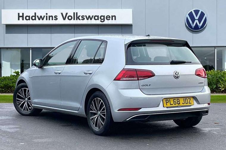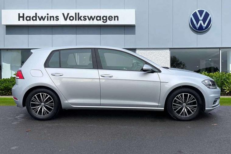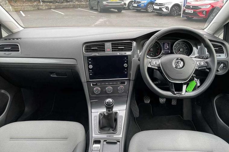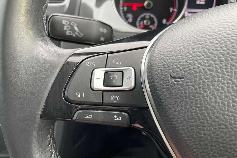 'Lights On' Reminder warning buzzer, 8" colour touch screen, ACC - Adaptive cruise control with front assist, forward collision warning, distance monitoring, city emergency brake and speed limiter, App-Connect, Bluetooth telephone and audio connection for compatible devices, Brake pad wear indicator warning light, Drive mode selector, Driver alert system, Driver profile selection, Front assist, radar sensor controlled distance monitor, city emergency braking + predictive pedestrian protection, Front assistant collision mitigation, Instrument cluster in white, Multifunction computer with visual gear change recommendation for fuel consumption, Power assisted speed sensitive electro-mechanical steering, Speedo, rev counter, electronic odometer, trip, service interval display, exterior temperature and fuel gauge, Stop/start system, Ultrasonic front and rear optical and audible parking sensors, Warning buzzer and light for front seatbelts unfastened, Battery regeneration during braking, XDS electronic differential lock, 8 Speakers, Composition media system, DAB Digital radio receiver, MP3/WMA compatability, SMS Functionality, USB and SD card connectivity, Aerodynamic black radiator grille with chrome trimmed insert, Automatic coming/leaving home lighting function, Automatic dimming rear view mirror/rain sensor, Black rear diffuser, Body colour bumpers, Body colour door handles, Body colour door mirrors with integrated indicators, Electric front windows, Electric rear windows, Electrically adjustable and heated door mirrors, Glavanised body, Heated rear windscreen, High level 3rd brake light incorporating LED Technology, Range adjustable headlights via infotainment system with LED daytime running lights, Rear number plate lights incorporating LED technology, Rear window aerial, Rear window wash/wipe with intermittent wipe, Reflectors in all doors, Remote electrically foldable door mirrors, door mirror puddle lights and reverse activated kerb-view adjustment on passengers door mirror, Tailgate with integrated rear roof spoiler, Windscreen wipers/ intermittent wipe + 4 position delay, 12V socket in luggage compartment, 3 rear headrests, 4 load lashing points in luggage compartment, 60/40 split folding rear seat backrest, Bag hook in luggage compartment x 2, Cooled glovebox, Dust/pollen filter, Front and rear reading lights incorporating LED technology, Front centre armrest with storage compartment and two rear air vents, Front seat back storage pockets, Grab handles front x 2, rear x 2 with integrated coat hooks, Height and reach adjustable steering wheel, Illuminated vanity mirrors, Instrument lighting white adjustable panel illumination, Interior light delay, Isofix preparation for 2 rear child seats, Load through provision with rear centre armrest and cupholders x2, Luggage compartment light, Multifunction leather steering wheel with leather trimmed gear knob, Overhead storage box, Pearl grey headlining, Storage box in luggage compartment, Storage compartment in roof console with cover, Storage compartments in front doors, Storage compartments in rear doors, Stowable luggage compartment cover, Sun visors, Three spoke multi-function leather trimmed steering wheel and gearknob, Variable boot floor, height adjustable and removable, Mirror pack - Golf, 3 rear three point seatbelts, Airbags - Driver's and front passenger's, curtain airbag, Driver's knee, front side impact and passenger's airbag deactivation switch, Anti-lock Braking System (ABS) with Hydraulic Brake Assist (HBA), Automatic post collision braking system, Child locks on rear doors, Driver/Passenger optimised head restraints, Electronic parking brake with auto hold, Electronic stability control (ESC) including Electronic differential lock (EDL) and ASR (Traction control) with deactivation via infotainment system, Pre crash preventive occupant protection, Three point height adjustable front seatbelts with tensioners, Tyre pressure loss indicator, Alarm with interior protection, Electronic engine immobiliser, Remote central locking with 2 remote folding keys, Brushed dark silver decorative inserts in dash and door panels, Chrome plated air vent surround, Chrome-plated light switch surround, Polar night black centre console, Steel space saver spare wheel,