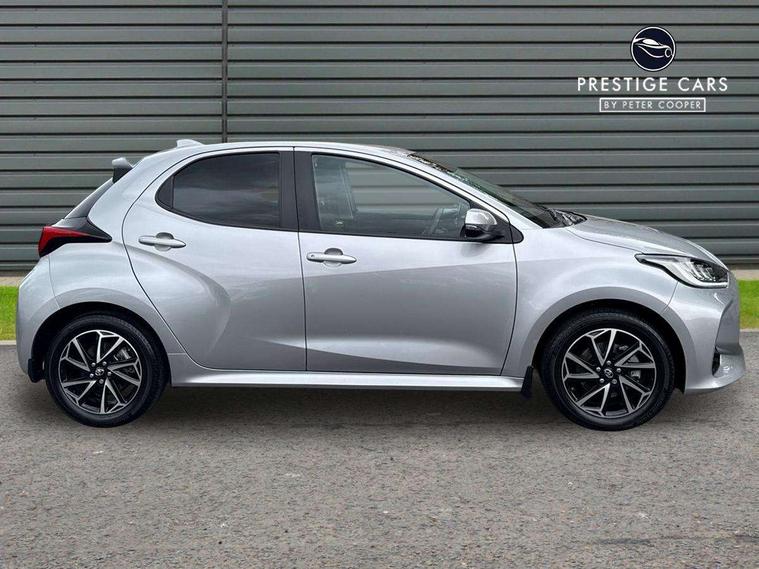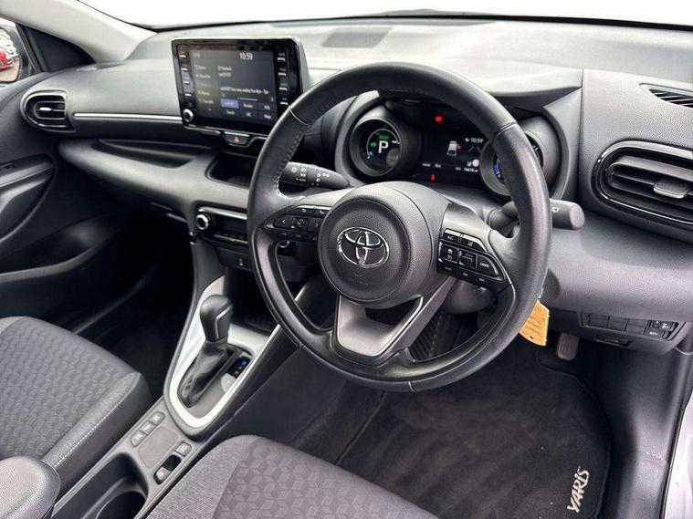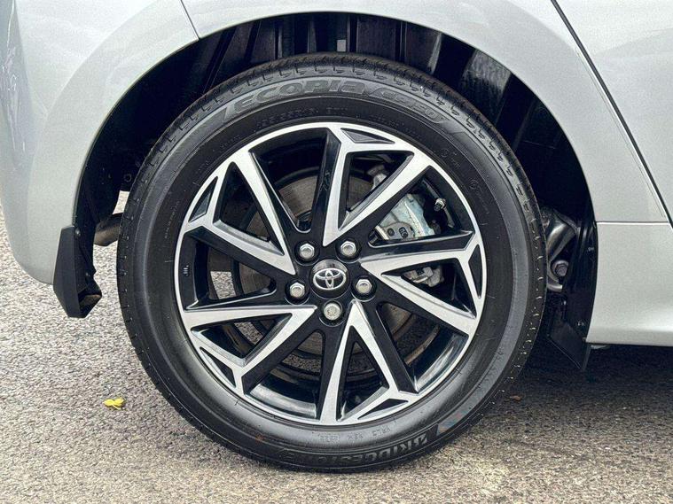 Adaptive cruise control, Adjustable speed limit with speed warning, Bluetooth connectivity, Colour binocular inspired displays with digital speedometer, E-call, Electric power steering, Hybrid energy display, Multi information display switches on steering wheel, Reversing camera, Smartphone integration with Apple CarPlay and Android auto, Tailgate, Voice recognition, Vehicle Stability Control (VSC), 4 speakers, 8" Multimedia display touch screen, USB connection, Acoustic windscreen glass, Auto windscreen wipers, Automatic headlights, Body coloured door mirrors, Electric adjustable heated door mirrors, Follow me home headlights, Front auto power windows with anti jam protection, Full LED rear lights, LED daytime running lights, LED front fog lights, LED front light guide, LED Headlights, LED High mounted stop lamp, LED Indicators, LED rear light guide, Manual headlight levelling, Painted chequered front grille, Rain sensor, Rear auto power windows with anti jam protection, Rear privacy glass, Rear side wing doors, Rear spoiler, Rear wiper, Shark fin antenna, Turning signal integrated indicators in door mirrors, Variable front intermittent wipers, 3 adjustable rear headrests, 3 spoke leather steering wheel, 60/40 split folding rear seat, Active headrests, Adjustable boot height, Auto air conditioning, Coat hooks in rear grab handles, Cup holders (2 front & door), Data Communication Module (DCM) connected services, Fabric upholstery, Front armrest, Glovebox, Grey roof lining, Height adjustable driver's seat, Isofix seat fixing, Leather gearshift, Pollen filter, Shopping bag hooks, Single front passenger seat, Tilt/telescopic steering column, 3 point seatbelts on all rear seats, ABS+EBD+Brake assist, Electronic parking brake, Emergency brake light system (EBS), Front passenger airbag on/off switch, Front seatbelt reminder, Hill start assist control (HAC), Rear child proof door locks, Rear seat belt reminder, Supplemental Restraint System (SRS) 8 airbags: Driver & passenger's airbags, dual side curtain airbags, side impact airbags, front centre airbag, Toyota Safety Sense 2, Precollison + Night time Pedestrian & Cyclist Detection, Lane Trace Assist, Auto High Beam, Intelligent ACC & Road Sign Assist, Tyre pressure warning system, 2x Master key, Alarm/immobiliser, Remote powered central double locking doors, Soft touch instrument panel, Space saver spare wheel,