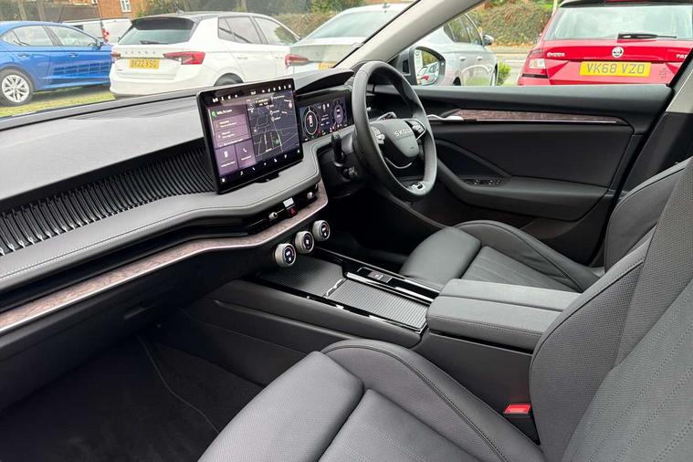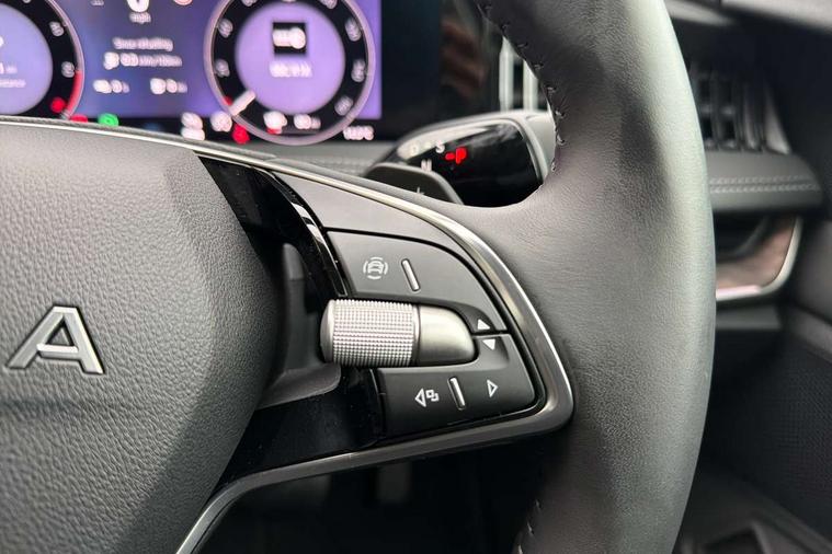 13" touchscreen display with satellite navigation, 4x USB-C ports (2x in front centre console and 2x in rear) (45W), Adaptive cruise control with speed assist, lane assist plus and traffic tram assist, Blind spot detection with door exit warning, Bluetooth system, CareConnect and Emergency Call, ChatGPT functionality, Drive mode selection, Driver fatigue sensor, Front assist with extended predictive pedestrian protection, Front cross traffic assist, PAS, Quick start all heating software functionality, Remote park assist, Stop/start engine system, Traffic sign recognition, Turn assist with evasive assistance, Virtual Cockpit - 10.25" digital display, Voice control system, Washer for rear camera, Wireless charging for one smartphone (15W) with cooling function, Wireless smartlink apple carplay, SmartLink+ android auto, Dynamic chassis control plus with progressive dynamic steering, Mode 3 charging cable, Canton sound system - 14+1 speaker, DAB Digital radio, Display cleaner, FM radio connection, Web radio connection, Acoustic side windows and interior noise suppression, Backdrop lighting, Body colour door handles, Body coloured door mirrors, Chrome roof rails, Chrome window surround, Dynamic range control with poor weather light and integrated fog light, Electrically adjustable, heated, folding and driver side auto-dimming door mirrors with memory function, integrated indicators and logo projection, Frameless auto-dimming rear view mirror with USB-C, Ice scraper in fuel tank cap, LED 3rd brake light, Light assist with High beam control, Light assistant (coming/leaving home/tunnel light), Privacy glass, Rear fog lights (x2), Rear roof spoiler, Rear side wing doors, Rear windscreen wiper, Unique dark chrome design logo on alloy wheels, Unique dark chrome grille surround with dark chrome rib elements, plus dark chrome rear diffuser strip, Windscreen wipers with rain sensor, 12V socket 1x centre console 1x boot, 14-way electrically adjustable, memory, front seats with 4-way pneumatic lumbar support, and extendable thigh support with smart comfort entry aid, 2x cargo elements in boot, 2x light in boot, 3 seat bench in 2nd row, 4x foldable bag hooks in boot, 60:40 Split folding rear seats, Advanced massage function for front seats, Bottle holders in the front doors 1.5 litre bottle and rear 1.5 litre bottle, Cup holder in front with easy open mat, Front armrest with storage box, Front sports comfort seats, Heated and ventilated front seats, Height adjustable front and rear head restraints, Illuminated glovebox, Interior lights with control switches, Isofix child seat fittings in outer rear and front passenger seats, LED front and rear reading lights, Single front passenger seat, Skoda lettering on steering wheel, Storage compartment with cover, Storage pockets on back of front seats, Sun visors with illuminated vanity mirrors, Ticket holder on A Pillar, Tri zone climate control, Umbrella in driver's door, Light and view package - Superb, Parking package - Superb, Transport package - Superb Estate, Winter package - Superb, 3 rear seatbelts, 8 Airbags - Front driver and passenger, front side driver and passenger, centre, curtain front and rear, drivers knee, Crew protect assist, Driver and passenger seatbelts with warning light, Electronic parking brake, ESC including ABS, EBV, MSR, ASR, EDS, HBA, DSR, RBS, CBC, multi-collision brake (MKB) and Auto hold, Hill hold assist, Power operated child lock in rear doors, Alarm with interior monitoring tilt sensor and back up horn, Backrest remote release from trunk, Electronic engine immobiliser, Keyless start/stop, Remote central locking with SAFE system, Third key, Walk away locking, Decorative front door sills, Tyre repair kit,