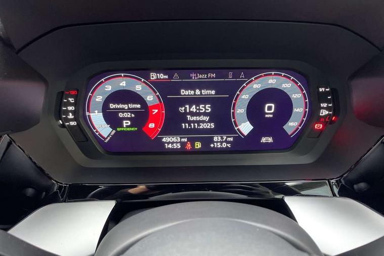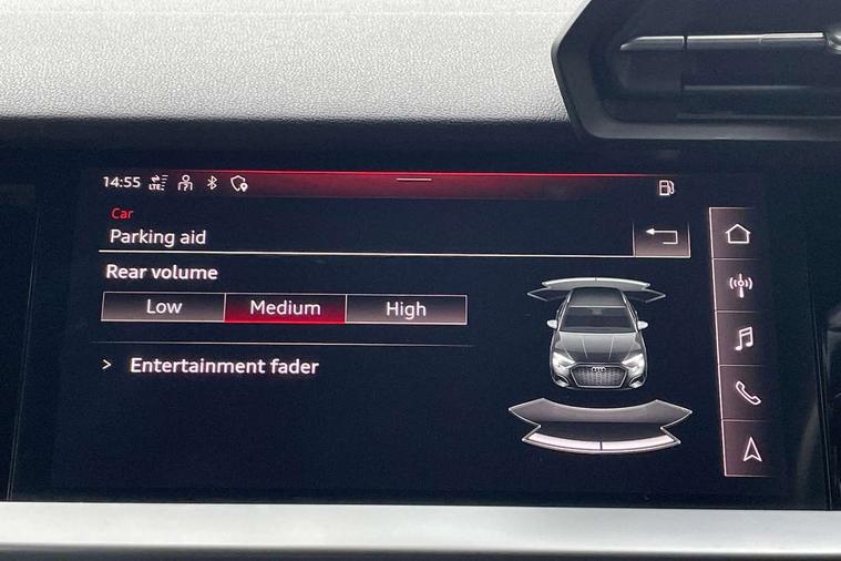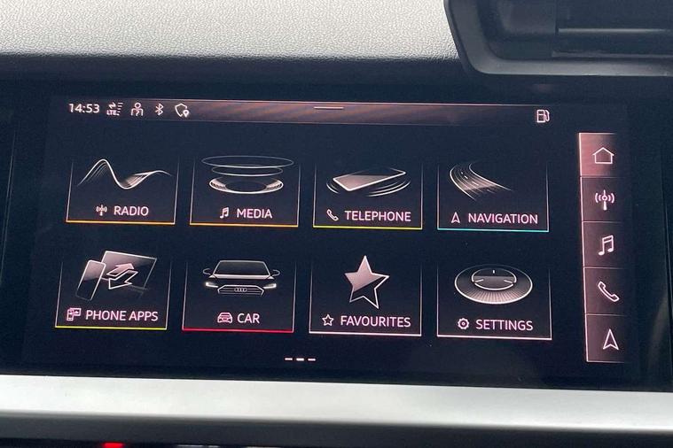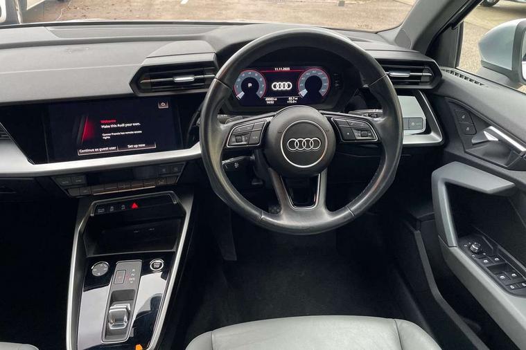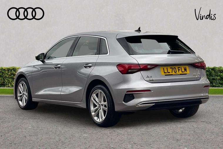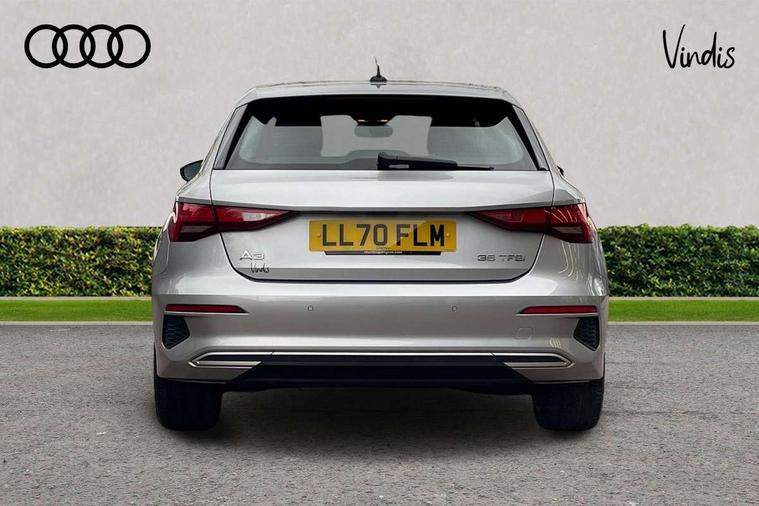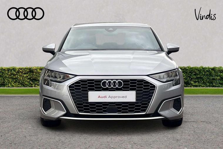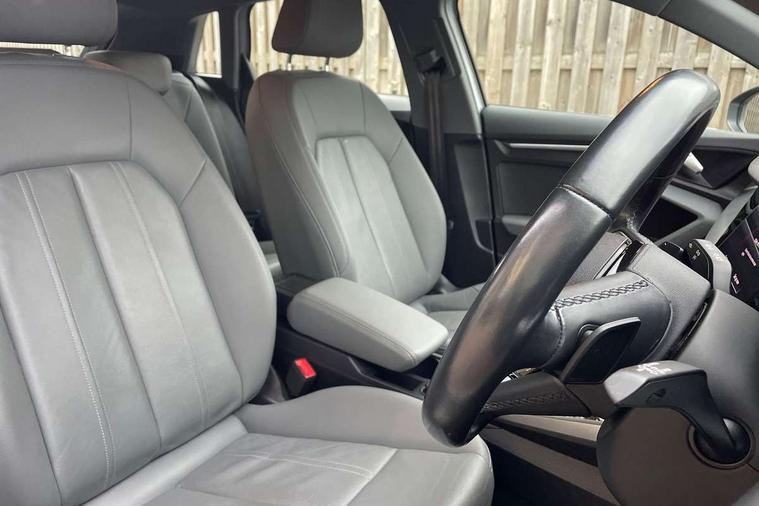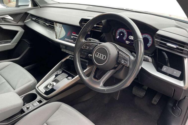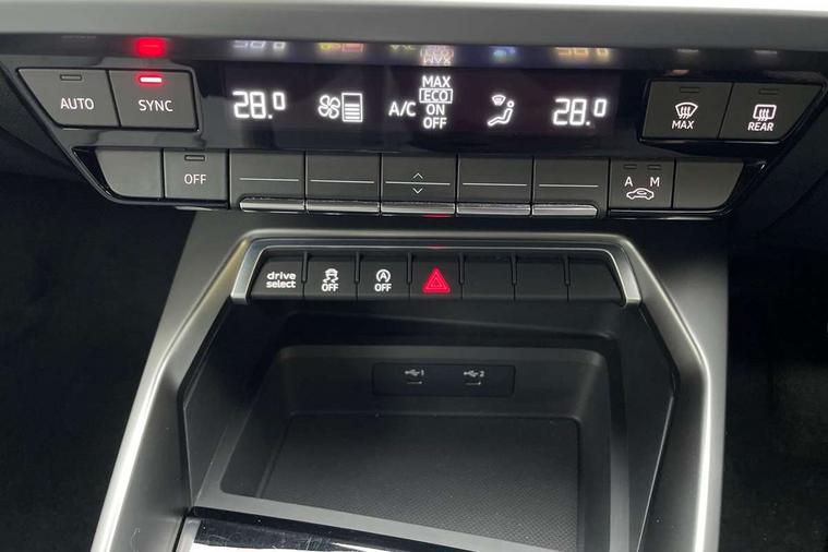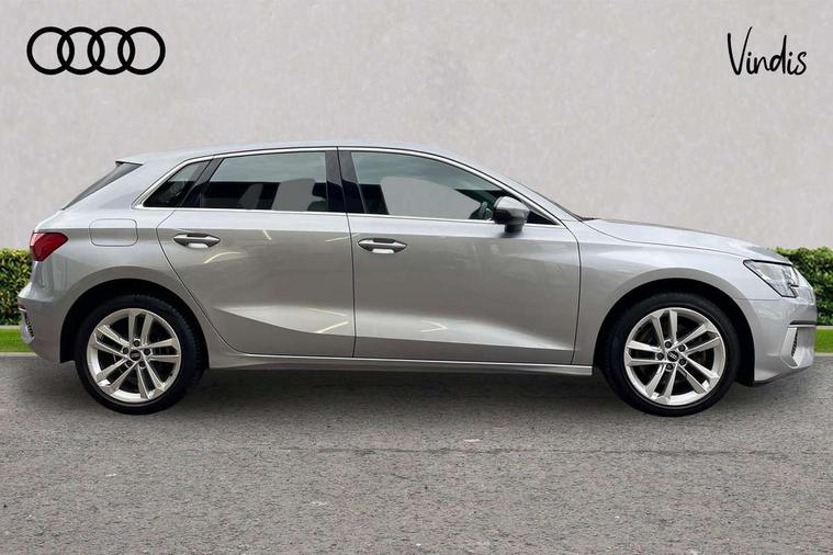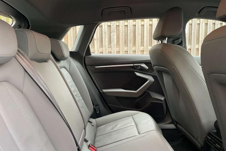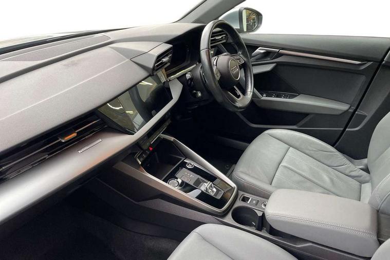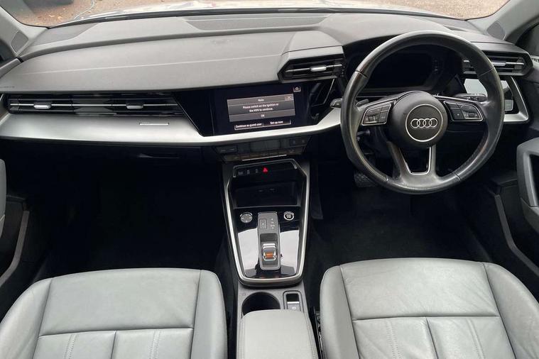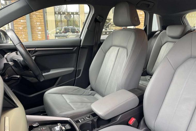 Audi connect emergency call and service, Audi drive select (Auto, Comfort, Dynamic, Efficiency and Individual), Audi smartphone interface, Audi Virtual Cockpit - 10.25" digital and colour instrument cluster, Automatic start/stop system with recuperation, Bluetooth interface, Collision avoidance assistant, Electromechanical power speed sensitive steering, Lane departure warning system, MMI Navigation Plus with high resolution 10.1" colour touch screen display, Service indicator, Trip computer, Voice control system with natural language interaction, Standard suspension, 2xUSB-C connection with data and charging functions, 6 passive loudspeakers, DAB Digital radio, Acoustic glass windscreen, Aluminium window trim, Auto dimming frameless rear view mirror, Body colour exterior mirrors, Body colour roof spoiler, Electrically adjustable/heated/folding/auto dimming door mirrors with integrated LED indications + kerb view function for passenger side, Front electric windows, LED daytime running lights, Light and rain sensors, Rear electric windows, Rear window, rear door windows and rear side windows in clear glass, Rear wiper, 12V socket and storage compartment in front centre console, 40/20/40 split folding rear seat bench with cupholder, Dual zone electronic climate control, Front and rear centre armrest, Front and rear headrests, Front door sill trims with aluminium inlay, Front/rear floor mats, Height and reach adjustable steering wheel, Interior lighting - Front and rear roof module including reading lights, glove compartment light and right hand side, Luggage compartment floor covering, Manual boot compartment lid, Manually adjustable front seats, Seat side bolsters, Steel grey cloth headlining, Twin leather upholstery, Aluminium interior elements pack - A3 Sportback, Sport styling pack - A3 Sportback, 3x3 point rear seat belts, Driver and front passenger airbag with passenger airbag deactivation, Electronic Stabilisation Control (ESC) including ABS, ASR and EDL, First aid kit with warning triangle and 2 safety vests, Front side airbags with head airbags and interaction airbag, Hill hold assist, Pre-sense front with pedestrian and cyclist detection, Seatbelt monitoring, Tyre pressure loss indicator, Anti theft alarm, Anti-theft wheel bolts, Electronically operated child lock, Immobiliser, Remote control central locking, Inlays with silk effect paint in platinum grey,