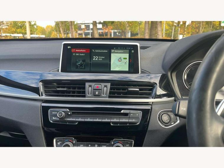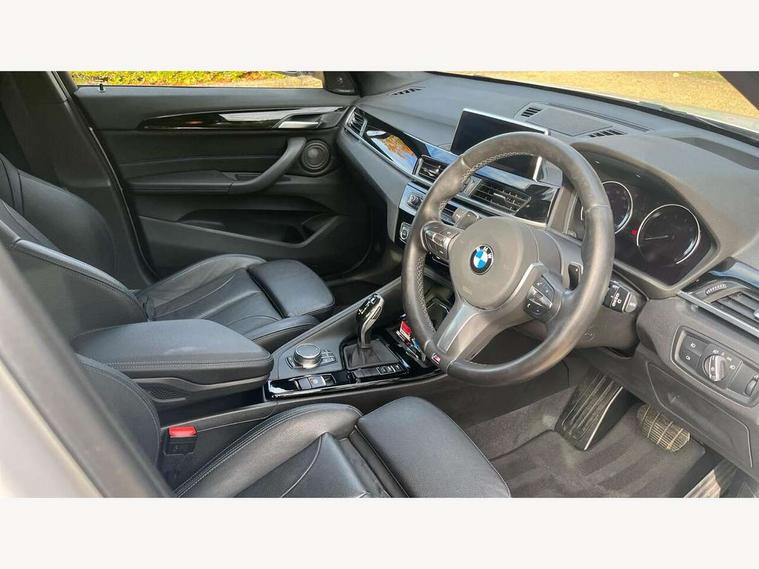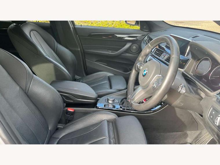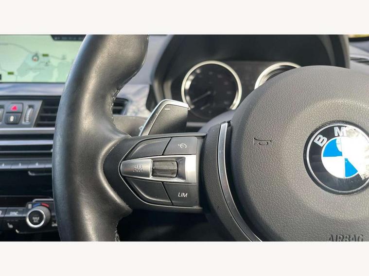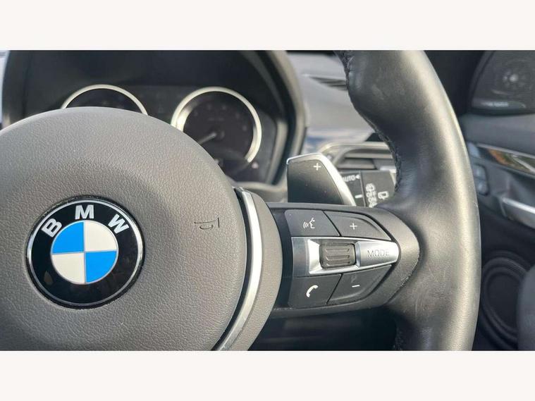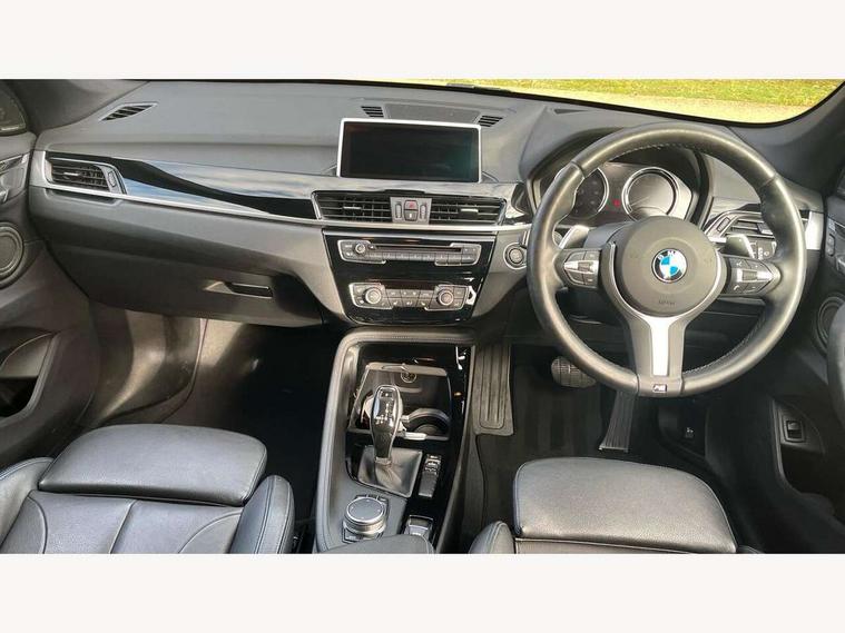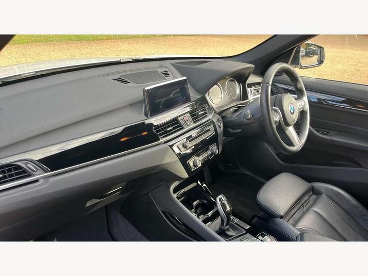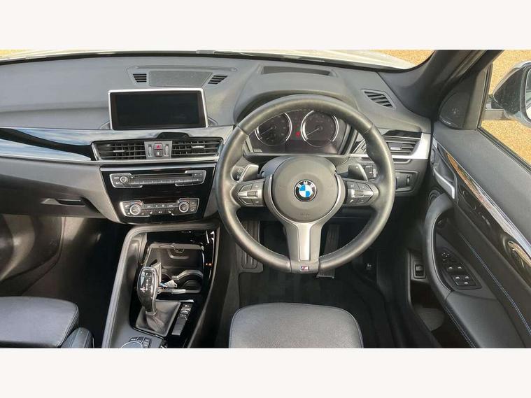 Active Guard incl speed limiting and lane departure functions with auto steering, and front collision warning with brake intervention, Ambient temperature display, Attentiveness assist, Automatic tailgate opening, BMW Online services, BMW remote services, BMW Teleservices, Lights on warning, On board computer, Outside temperature gauge, Real time traffic information, Service interval indicator, Speed limiter, Stop/start button, Tyre puncture warning system, Electronic differential lock, Performance Control, 2 USB Power socket for rear seat, BMW professional radio with CD player, DAB Digital radio, USB connection located in centre console, USB/audio interface, Adaptive LED Headlights, Adjustable headlights, Body colour bumpers, Body colour door handles, Body colour door mirrors, Chrome tailpipe finisher, Electrically adjustable and heated door mirrors, Fingertip control / anti-trap function on electric window, Follow me home headlights, Front and rear electric windows, Front fog lights, Heat insulating tinted glass, Heated windscreen washer jets, kidney grille with high gloss black vertical slats, LED daytime running lights, M door entry sills, Rain sensor including auto headlights activation, Rear window wash/wipe, Twin chrome exhaust tailpipes x2, Welcome home function, 12V power socket in passenger footwell, 3 rear headrests, 3 spoke sport nappa leather steering wheel, 4 grab handles, Anthracite headlining, Boot light, Centre console with cupholders, Driver/passenger sunvisors with ticket holders, Drivers folding storage compartment, Dual zone automatic air conditioning, Front and rear door armrests, Front centre armrest/sliding cover, Front passenger isofix child seat attachment, Front sports seats, Front/rear adjustable head restraints, Heated front seats, Illuminated glovebox, Isofix rear child seat preparation, Leather gearknob/gaiter/handbrake grip, LED ambient lighting in door trim, Luggage area underfloor compartment, Luggage compartment lighting, Multifunction steering wheel, Rake/reach adjustable steering wheel, Sliding/split/reclining 40/20/40 rear seat with 60/40 split rear seat base, Steering wheel gearshift paddles, Velour floor carpets, Extended storage package - X1, 3 rear 3 point seatbelts, ABS/EBD, Audio/visual collision warning system, Automatic Stability Control (ASC), BMW emergency call, Cornering brake control (CBC), Crash Sensor - activates hazard/interior lighting + unlocks doors, Driver/Front Passenger airbags, Driver/front passenger side airbags, DSC - Dynamic Stability Control, Dynamic brake control, Dynamic Traction Control - DTC, Electronic parking brake, Front and rear head airbags, Front passenger airbag deactivation, Front seatbelt force limiters, Hill start assist, Pyrotechnically pre-tensioned front seatbelts, Rear door child safety locks, Seatbelt warning, Tyre pressure monitor, Warning triangle and first aid kit, Auto door lock when driving, Central locking including boot and fuel flap with deadlocks, Engine immobiliser, Locking wheel nuts, Remote control Thatcham category 1 alarm, High gloss black centre console, Low rolling resistance tyres,