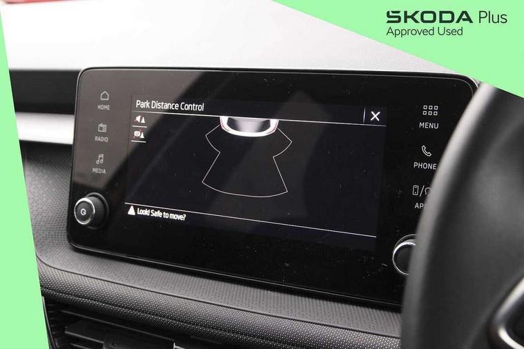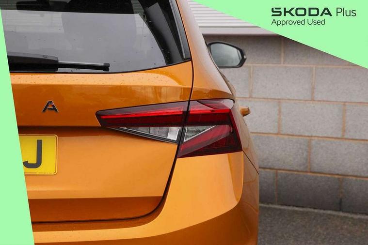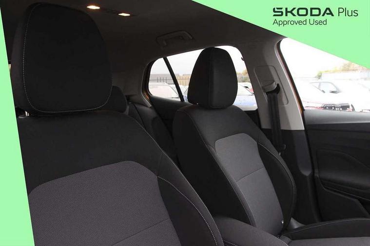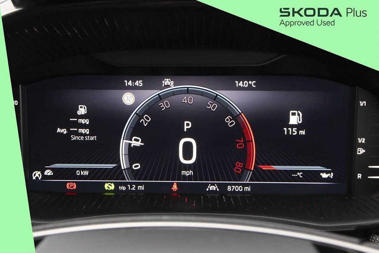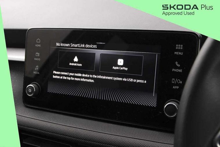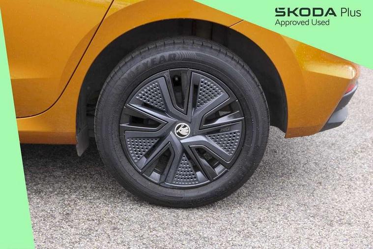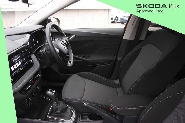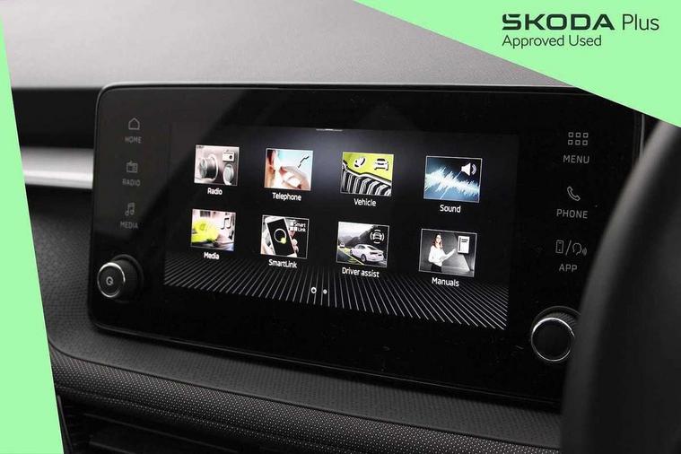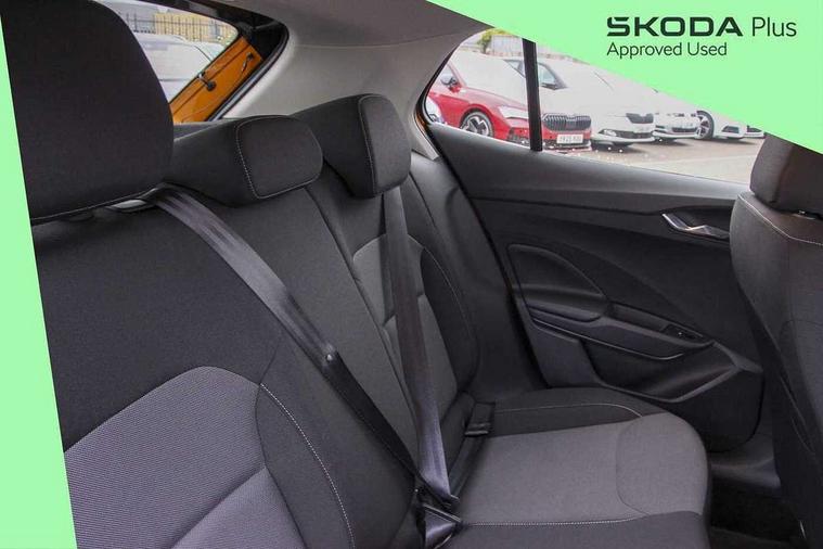 Advanced driver attention and drowsiness monitor, Bluetooth connection, Electromechanical power steering, Exterior temperature gauge, Service interval indicator, Traffic sign recognition, Virtual cockpit with 10.25" colour display, Wireless SmartLink for Apple CarPlay and Android Auto, 6 Speakers (4 in front and 2 in rear), Auxiliary socket for external MP3 player, DAB digital radio reception, Body coloured bumpers, Dimming rear view mirror with black frame, Door mirror integrated indicators, Front and rear electric windows, Front window wiper intermittent control, Headlight range control - Automatic, Ice scraper in fuel cap, LED daytime running lights with coming and leaving home feature, LED rear lights, Privacy glass, Rear LED fog light, Rear side wing doors, Rear window wiper with washing nozzles, Roof mounted spoiler, SKODA tailgate lettering in chrome, Third brake light, 2 reading lights in front and 2 reading lights in rear, 3 rear headrests, Backrest split and folding, Central console with removable cup holder and storage box, Chrome handbrake release button, Fabric upholstery, Front centre armrest, Gearshift knob/handle in leather, Grain satin black interior door handles, Hand brake lever handle in leather, Height adjustable front headrests, Height adjustable front seats, Height adjustable steering wheel, ISOFIX and TopTether anchorage points to the outer rear seats, ISOFIX and TopTether on the front passenger seat, Luggage compartment lighting, Manually adjustable lumbar support in front seats, Pollen filter, Rear seat bench unsplit, Single front passenger seat, Storm grey headlining, Sun visors with mirror and airbag label on passenger side, Textile floor mats, Ticket holder, Umbrella in drivers door, 3-point height adjustable front seats belts with pretensioner and force limiter, Automatic warning lights in case of crash, Driver and passengers airbag with switch off function, e-Call+, ESC including ABS, MSR, ASR, EDS, HBA and XDS, Front and rear seat belt warning, FRONT ASSIST (AEB City and AEB Inter Urban), Front side airbags, Head airbags, Hill hold control, One tone horn, Pedestrian protection, Three rear 3-points safety seat belts with pretensioner and force limiter including stop function for outer rear seat belts, Tyre pressure monitoring system, Anti-theft alarm system including immobiliser, interior monitoring, backup horn, and towing protection, Central locking with radio remote control, interior controls, SAFE function and 2 foldable keys, Colour Edition air vents, Grain satin black central console cover, Metallic grey upper decorative trim, Satin black door and side trim panel in front, Textile Kota grey lower decorative inserts, Anti-theft wheel bolts protection, Super-low rolling resistance tyres,