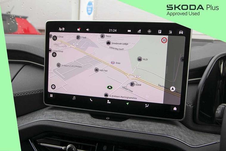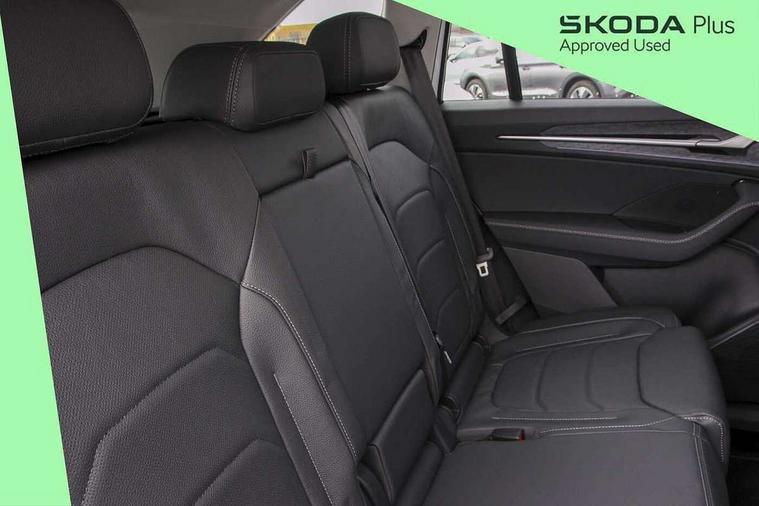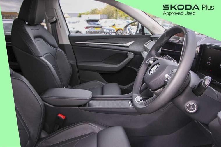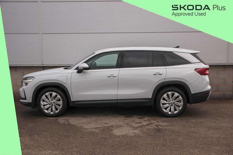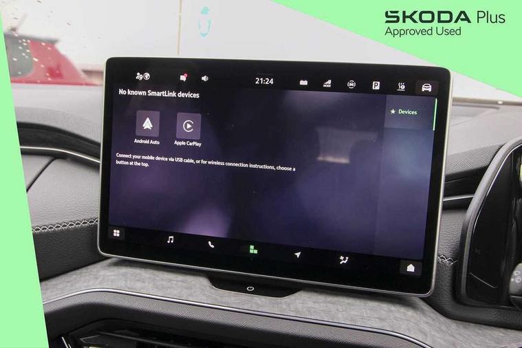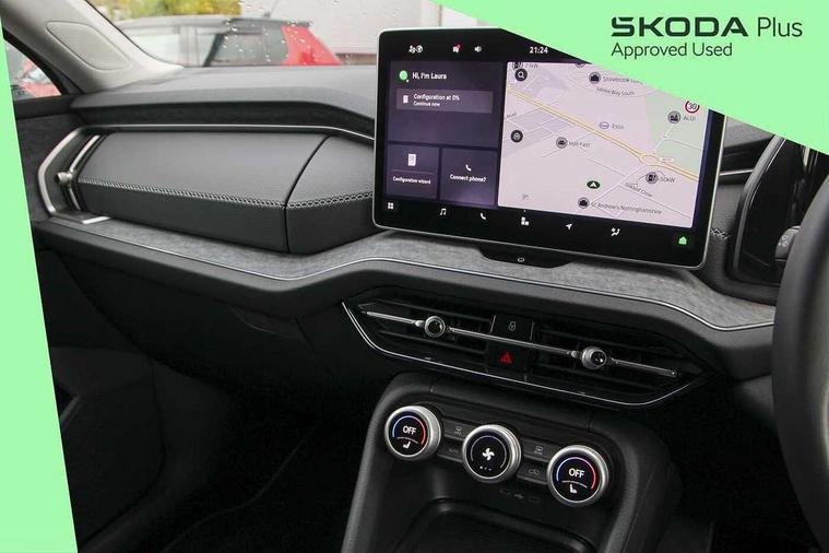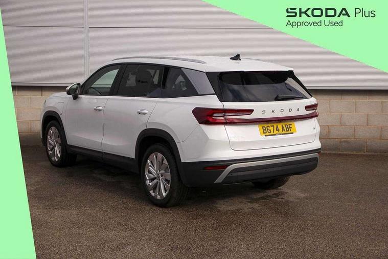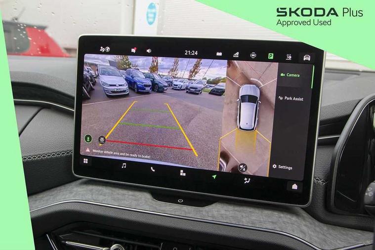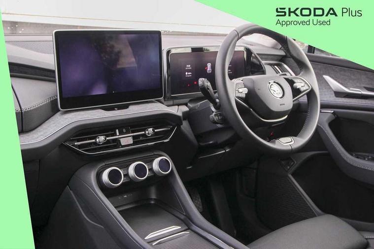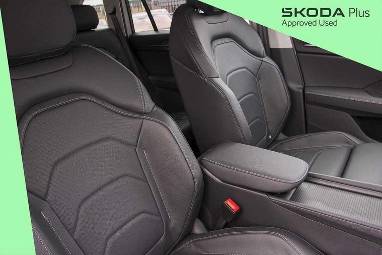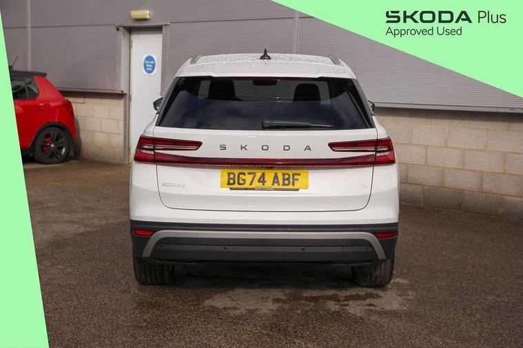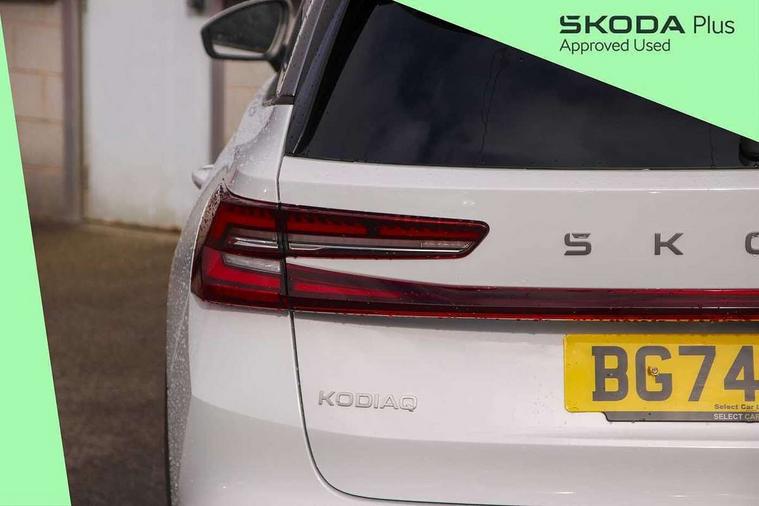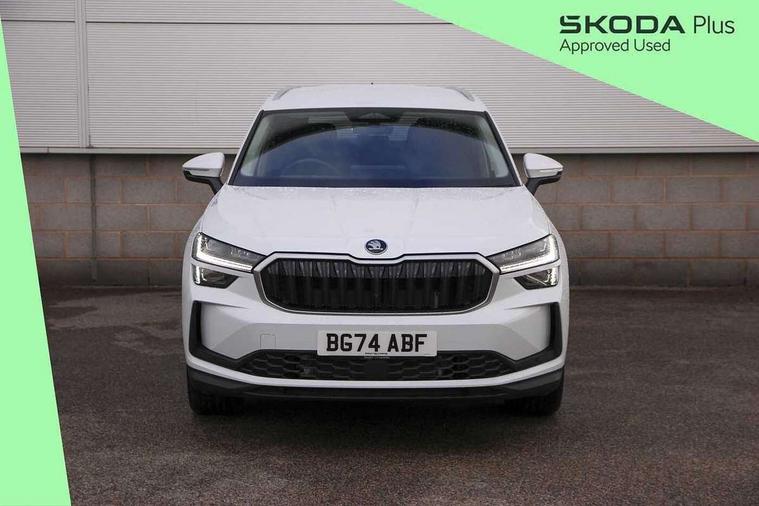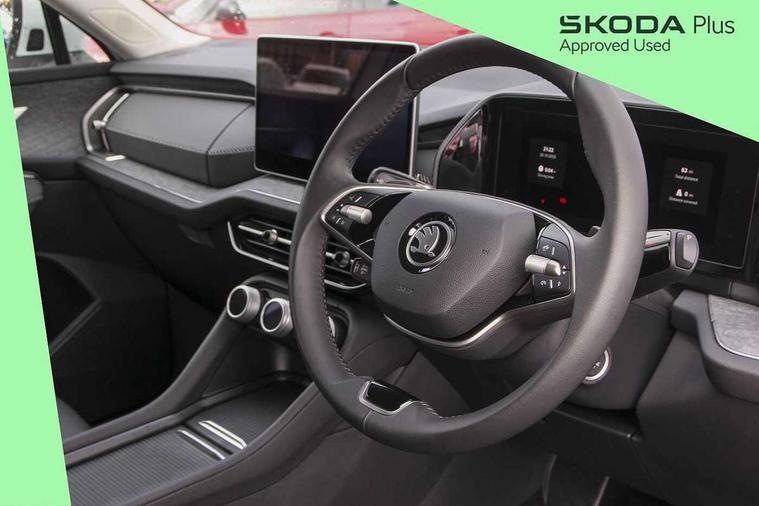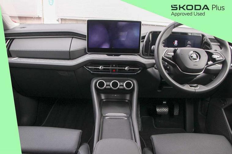 13" satellite navigation touchscreen display, Blind spot detection with door exit warning, Bluetooth system, ChatGPT functionality, Drive mode selector, Driver alert with fatigue sensor, Driver drowsiness alert system, Dry display cleaner, e call+, Front cross traffic assist, Lane assist, PAS, Rear traffic assist, Tailgate unlocking from outside, Traffic sign recognition, USB C Port x 2 in front centre console, Virtual Cockpit - 10.25" digital display, Voice control system, Wireless charging for two smartphones (15W) with cooling function, Wireless SmartLink for Apple CarPlay and Android Auto, 32A charging cable, Stop/start function, 2x USB-C in the rear, DAB Digital radio, Aero front windscreen wipers with intermittent function, Auto dimming rear view mirror, AWL (all weather lighting) and all weather light with cornering function, Black wheel arch surrounds, Body colour bumpers, Body colour door mirrors and handles, Cornering light and poor weather light, Electric folding /adjustable/separted heated/folding door mirrors, auto dimming with boarding sports and memory function, Electric front and rear windows, Exterior black decorative trims, Heat insulating glass in windshield, Heated rear window, Ice scraper in fuel tank cap, Invisible tailpipe, LED daytime running lights, LED rear fog light, LED third brake light in rear spoiler, Light assistant with automatic headlight control and coming home feature, Logo projection in door mirrors, Privacy glass, Rear side wing doors, Rear spoiler, Rear window wiper, Red decorative strip between rear LED lights, Safety reflectors on front and rear doors, Window control switches with black trim, Windscreen wipers with rain sensor, Without engine designation, 1.5l bottle holder points in all door, 12V socket in boot, 1x centre rear reading light, 3 configurable smart dials with 32mm coloured display, 3 seat bench in 2nd row, 4 foldable roof handles with rear coat hooks, Ambient interior lighting - Dashboard, front-door stowage compartments, front and rear door panels and footwell lighting, Automatic gear selector on steering wheel, Chrome interior door handles, Driver/front passenger reading lights, Fabric headlining, Fixed bench 40:60:40 split folding backrests, Front and rear floor mats, Front centre armrest with jumbo box storage compartment, cup holder and 12V socket, Front courtesy lights, Height adjustable front headrests, Isofix child seat fittings in outer rear seats and front passenger with top tether, iV badging on boot, Manually adjustable steering column, Pollen filter, Rear centre armrest with cupholders, Rear seat boot backrest release, Retractable luggage compartment cover, Single front passenger seat, Sliding trunk cover, Small Bags on the inner sides of the front backrests, Storage pocket including mobile phone pockets on the backs of the front seats, Sunvisors with illuminated vanity mirrors, Three rear height adjustable headrests, Ticket holder on A Pillar, Tri zone climate control, Umbrella in door panel x1 made from sustainable materials, Upper and lower glovebox with card holder and coin compartment, USB C port by rear view mirror for charging only (15W), Exterior styling pack - Kodiaq, Auto door release and activation of warning lights in the event of an accident, Driver and front passenger airbag with knee airbag and front passenger airbag deactivation, Electric child locks, Electronic parking brake, ESC (incl. ABS+EMD+MSR+ASR+EDL+HBA+DSR+RBS+ESBS+MCB+TSA+XDS), Front assist with braking reaction to vehicles, pedestrians and cyclists, Front disc brakes, Fuel cut off safety device, Height adjustable front 3 point seatbelts + pretensioners, Hill hold control, Junction assist with automatic emergency braking, Rear disc brakes, Safety vest holder in door, Seat belt reminder for all seats, Three point rear seat belts, Two tone horn, Tyre pressure monitor, Anti-theft wheel bolts, Immobiliser, Remote central locking with 2 keys, Breakdown kit,