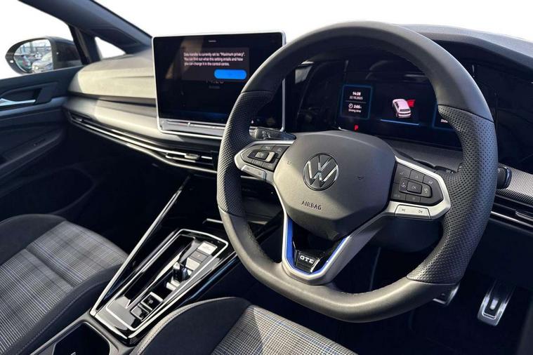 Activated carbon canister, Adaptive cruise control (ACC), Advanced driver attention and drowsiness monitor, Dynamic road sign display, Dynamic steering, E-Sim card for online connectivity, eCall emergency call system, Multi-color Digital cockpit pro, selection of different info profile possible, Multifunction front facing camera for distance control, Navigation system, Oncoming vehicle braking when turning including swerve support, Side assist blind spot lane change system, rear traffic alert and exit warning system, Speed limiter, Speedo, rev counter, electronic odometer, trip, service interval display, exterior temperature and fuel gauge, Traffic jam assist, Voice enhancer and voice control, Warning signal and warning light for front and rear seatbelts not fastened, We connect plus preparation, We connect preparation, Wireless app connect, Charging cable Mode 2 Type 2 (10A), Charging cable mode 3, type 2 32 A, Electric motor (hybrid electric vehicle) total system output 200kw, unit OEK A, Hybrid propulsion system, Start-stop system with battery regeneration (recuperation - energy recovery during braking), XDS electronic differential lock for improved traction and handling, 2 USB C ports in front, 2 USB charging sockets on the centre console in the rear charging capacity upto 45W, 6 Speakers - 4 in front and 2 in rear with central speaker, Digital radio reception (DAB), Diversity antenna for FM reception, Gaming platform via car app, Infotainment system with 12.9" display, Mobile phone interface with inductive charging feature, 3rd brake light, Auto dimming rear view mirror, Automatic headlamp activation with Coming home and Leaving home feature, Body colour door handles, Body coloured bumpers, air intake in honeycomb structure, Exterior mirrors convex on the left and aspherical on the right, Front and rear electric windows, Front fog lamps and cornering light, Heat insulating windshield made of laminated glass, LED separate daytime running light, Nameplate 'GTE' set, Rain sensor, Rear exhaust tailpipe, Rear fog light on one side and reversing lights on both sides, Rear side wing doors, Rear windscreen washer and wiper with interval delay, Remote electrically foldable door mirrors, puddle lights and reverse activated passenger's door mirror, Welcome light with surround lighting, 12V socket in front centre console, 12V socket in luggage compartment, 3 rear head restraints, 3 seat bench in 2nd row, 30 colour ambient lighting, illuminated center console storage compartment in front, Air care climatronic 3 Zone automatic climate control with rear air conditioning control panel, Aluminium gearshift handle, Brushed stainless steel pedals, Chrome plated radiator grille inserts, air vent surrounds and light switch surrounds, Entry lights, Front + rear black carpet mats, Front centre armrest, ISOFIX anchors for child seats on outer rear bench seats and on front passanger seat compatible for i-Size, Luggage compartment lighting, Rear cupholder and loadthough, Single front passenger seat, Soul black instrument panel, Soul black roof lining, Split folding backrest with centre armrest and unsplit rear seat bench, Sun visors with illuminated vanity mirrors, Driver assistance pack - Golf Estate/Hatchback Auto, Technology park and comfort pro package - Golf Hatchback, 3 point height adj front seatbelts + pretensioners, 3 rear three point seatbelts, ABS, Autonomous emergency braking front assist with pedestrian and cyclist monitoring, Child locks on rear doors, Driver and front passenger airbag with front passenger airbag deactivation, Electronic parking brake with auto hold, ESC (Electronic Stability Control), Extended pedestrian protection measures, Hill start assist, Rear disc brakes, Two tone horn, Tyre pressure loss indicator, Volkswagen roadside assistance, Anti theft wheel bolts, Preparation for alcohol interlock, Decorative inserts carbon grey for dashboard and front door trim panels, Sporty vehicle dynamics, Tool kit for tyre mobility set, Tyre mobility kit Includes 12V compressor and tyre sealant,