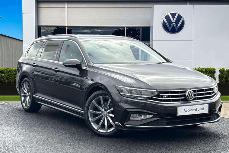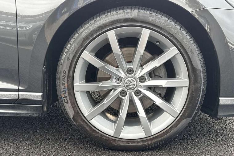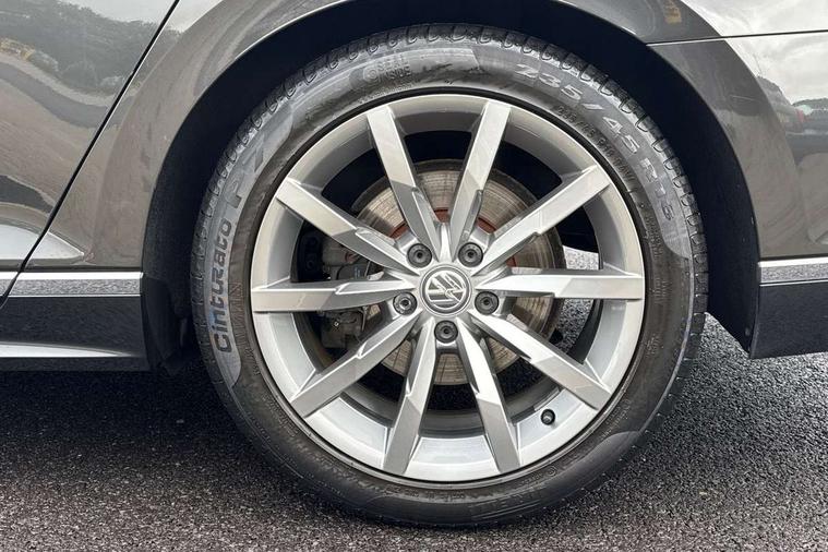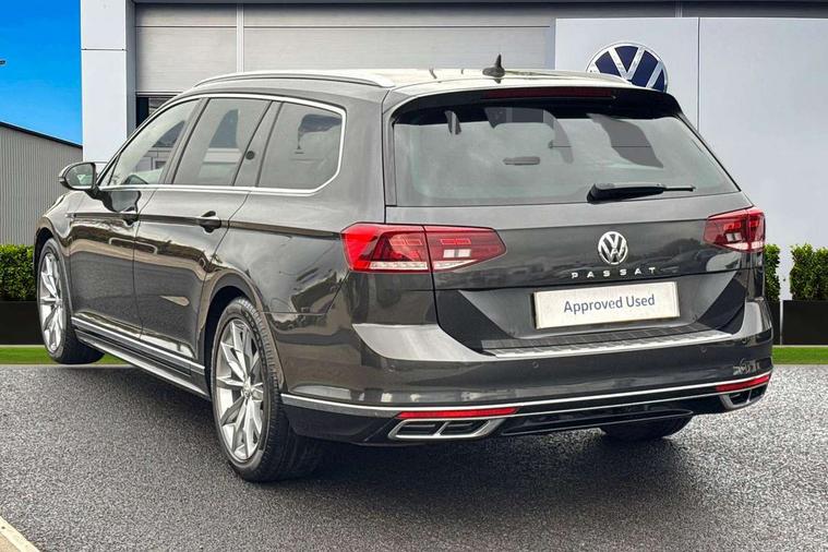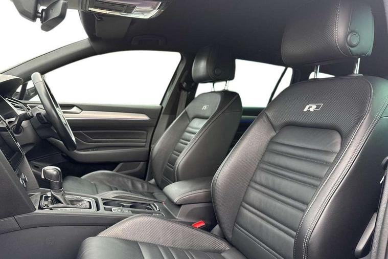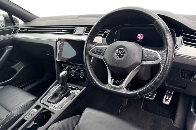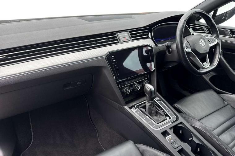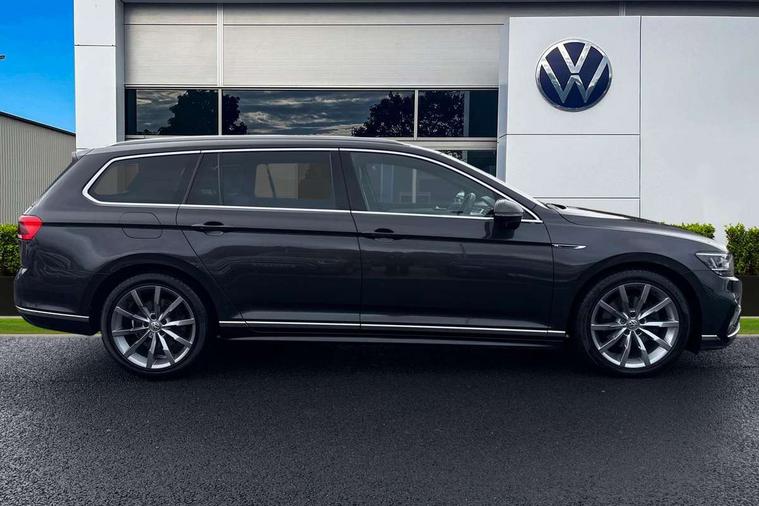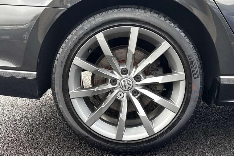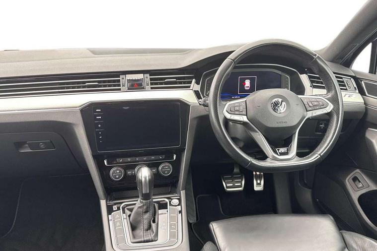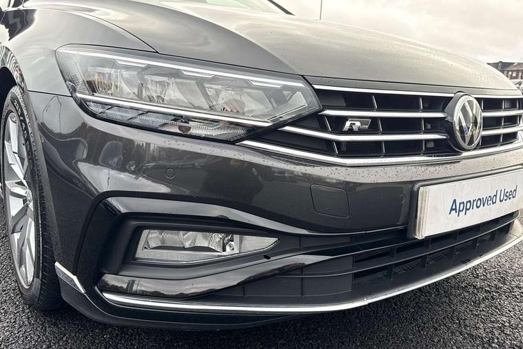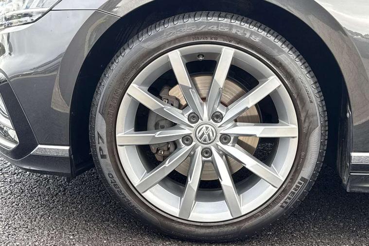 Adaptive cruise control including Front Assist, radar sensor controlled distance monitoring system, City emergency braking system, Driver alert system, Driver profile selection, Exterior temperature gauge with frost alarm, Lane assist, Low washer fluid warning light, Multifunction computer includes visual gear, One touch indicator turn signal, Proactive occupant protection, Security and service including e-call, Speed sensitive power steering, Speedo and rev counter, electronic odometer, trip, service interval display and fuel gauge, Start/Stop function, Traffic jam assist, Warning buzzer and light for front seatbelts unfastened, Wireless app connect, Battery regeneration during braking, Diesel particulate filter, Misfuel prevention device, Aerial for radio integrated into rear windscreen, DAB Digital radio receiver, Auto dimming interior rear view mirror, Automatic headlights with dusk sensor, Automatic leaving home and manual coming home lighting functions, Black radiator grille with chrome louvres, Body colour bumpers, Body colour door handles, Body coloured door mirrors with intergrated indicators, Chrome side window surrounds, Front and rear electric windows, Fully galvanised body, Gloss black finish on B pillar, Heated rear window, High level 3rd brake light, LED rear lights, LED rear number plate lights, Plastic load sill protection, Rain sensor, Rear tinted glass from B pillar backwards, approx 65% tinted, Rear window wash/wipe, Remote electrically adjustable and foldable heated door mirrors including automatic dimming function on drivers side door mirror puddle lights, Silver anodised roof rails, Warning lights for open tailgate and doors, White instrument lighting, 12V socket in front centre console, 12V socket in luggage compartment, 40:20:40 split folding rear seats with backrest, Carbon optic side bolsters, Climate control - 3 Zone electronic air conditioning with automatic air recirculation, Driver's door storage compartment for 1.0 litre bottle, Extending luggage compartment cover with convenience opening, stowable, Front and rear interior lighting with delay and dimming function, Front centre armrest with storage compartment and two rear air vents, Front cupholders x2 with covers, Front passenger storage compartment for 1.5 litre bottle, Front seats with embroidered R Line logo on backrest, Height adjustable and removable variable boot floor, Height adjustable rear seat head restraints (x3), Height/reach adjust steering wheel, Illuminated vanity mirrors, Isofix child seat preparation, outer rear seats, Load lashing points x 4 in luggage compartment, Load through provision, Lockable, illuminated, cooled glovebox, Luggage compartment lighting, Rear seat centre armrest with storage compartment, Stainless steel pedals in clutch, brake and accelerator, Storage compartment in rear doors, Storage compartment in roof console with cover, Unique R Line door sill protectors, Unique R Line front and rear carpet mats, Vienna leather upholstery + heated front seats + heated windscreen washer jets, Easy open package with full electric tailgate/ boot - Passat (Estate), R line styling pack - Passat (Estate), 3x3 point rear seatbelts, ABS (Anti locking brake system) includes BAS (Brake assist) and EBD (Electronic brake pressure distribution), Automatic post collision braking, Disc brakes front and rear, Door open warning reflectors, Driver/Front Passenger airbags, Drivers and front passengers safety optimised head restraints, longitudinal and height adjustable, Drivers knee airbag, Electronic parking brake with auto hold, First aid kit, Front airbags with deactivation switch, Front and rear passenger curtain airbags, Front side impact airbag, Height adjustable front 3 point seatbelts + pretensioners, Hill hold function, Pre crash preventive occupant protection, Rear seat side impact airbags, Rigid safety cell with front and rear crumple zones, Volkswagen roadside assistance, Warning light for rear seat belts if unfastened, Alarm with interior protection and deactivation via infotainment system, Electronic engine immobiliser, Keyless entry system including start/stop button on centre console, Chrome air vent and instrument surround, Unique R Line dark diamond flag decorative inserts in dash and door panels,