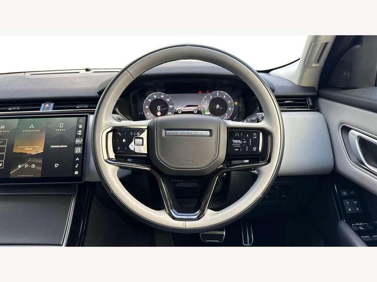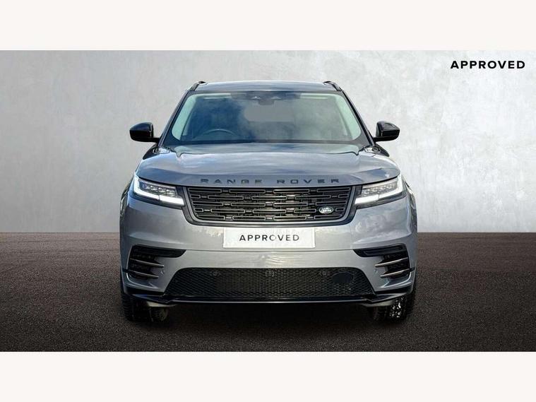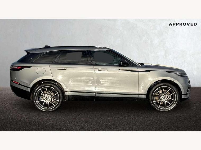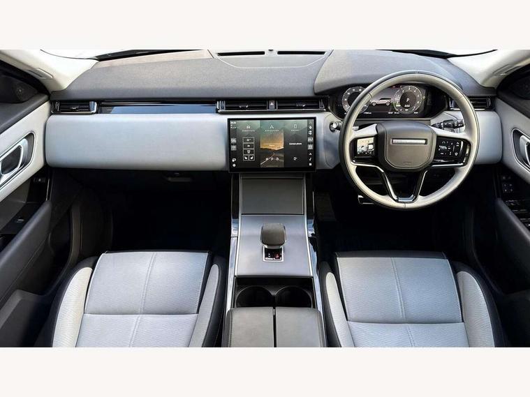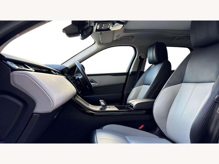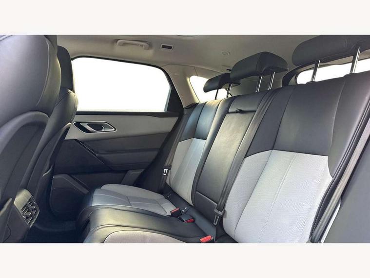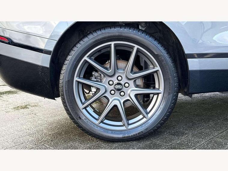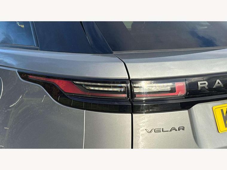 Adaptive cruise control with steering assist, Android Auto, Apple CarPlay, Blind spot assist, Bluetooth connectivity, Brake pad wear indicator warning light, Driver condition monitor, eCall emergency call system, Front and rear parking aid, InControl remote, Land Rover InControl apps, Lane keep assist, Pivi pro with connected navigation, Rear collision monitor, Rear traffic monitor, Service indicator, Speed proportional electronic power assisted steering (EPAS), Traffic sign recognition with adaptive speed limiter, Trip computer, Voice control system, Wireless device charging, 7kw on board charger, 8 speed automatic transmission, AC/DC charging, Adaptive dynamics, All terrain progress control, Coil suspension system, Home charging cable, Open differential with torque vectoring by braking, Public charging cable, Single speed transfer box, DAB radio, Steering wheel mounted controls, 3rd brake light, Acoustic laminated windscreen, Auto dimming interior rear view mirror, Automatic headlamp levelling, Automatic headlights, Body coloured bumpers, Boot protection plate, Electric windows with one touch open/close and anti trap, Flush deployable exterior door handles, Follow me home headlights, Heated rear window with timer, Heated washer jets, Heated windscreen, Metal front tread plates, Metal load space scuff plates, Pixel LED headlights with signature DRL, Power fold, auto-dimming, heated door mirrors with memory and approach lights, Rain sensor windscreen wipers, Rear animated directional indicators, Rear fog lights, Rear side wing doors, Rear wash/wipe, Tailgate/boot lid spoiler, Trailer stability assist, Velar badge, 3 seat bench in 2nd row, Ambient lighting, Bright metal pedals, Carpet mats, Driver/passenger sunvisors with illuminated vanity mirrors, Ebony morzine headlining, Electrically adjustable steering column, Extended leather upgrade, Heated steering wheel, Isofix system on outer rear seats, Loadspace cover, Overhead lighting console, Overhead stowage for sunglasses, Passive front headrests, Rear air vents, Rear centre headrest, Single front passenger seat, Twin front cupholders, Twin sliding front centre armrest, Online pack with data plan - Velar, Power socket pack 2 - Velar, 380mm front brakes and 325mm rear brakes, 3x3 point rear seatbelts, Anti-lock braking system (ABS), Cornering brake control, Curtain airbags, Customer configurable autolock, Door side intrusion beams, Driver airbag, DSC - Dynamic Stability Control, Electronic brake force distribution, Electronic parking brake, Electronic traction control, Emergency braking, Front and rear seatbelt reminder, Hill descent control, Hill launch assist, Low traction launch, Passenger airbag, Power operated child locks, Rear airbags, Roll stability control, Side airbags, Tyre pressure monitoring system (TPMS), Unpainted brake calipers, Global lock and unlock switch on driver door, Immobiliser, Intrusion sensor, Keyless entry, Lock only switch on front passenger door, Locking wheel nuts, Perimetric alarm, Remote central locking, All season tyres,