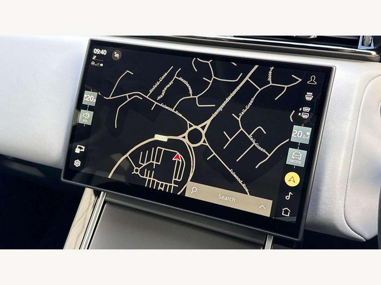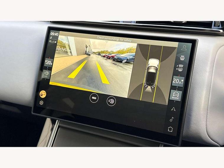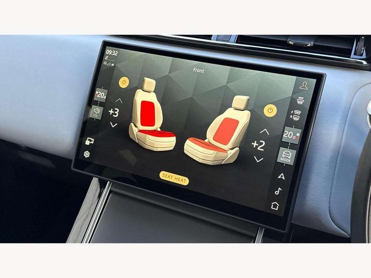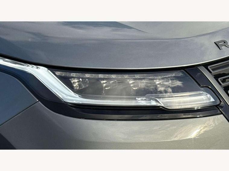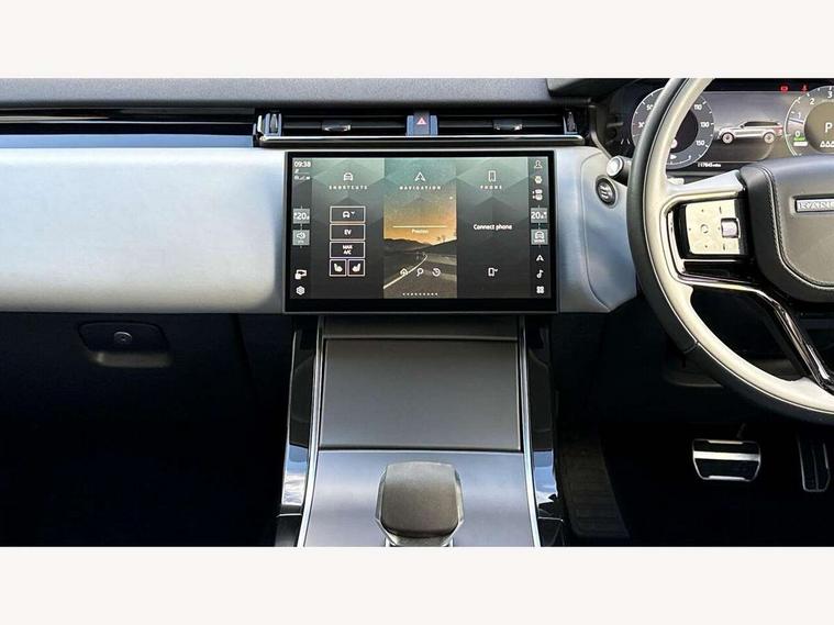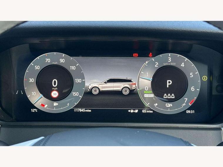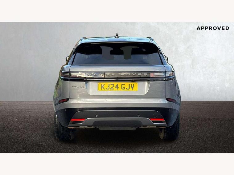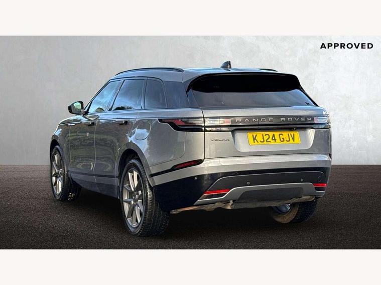 Adaptive cruise control with steering assist, Android Auto, Apple CarPlay, Blind spot assist, Bluetooth connectivity, Brake pad wear indicator warning light, Driver condition monitor, eCall emergency call system, Front and rear parking aid, InControl remote, Land Rover InControl apps, Lane keep assist, Pivi pro with connected navigation, Rear collision monitor, Rear traffic monitor, Service indicator, Speed proportional electronic power assisted steering (EPAS), Traffic sign recognition with adaptive speed limiter, Trip computer, Voice control system, Wireless device charging, 7kw on board charger, 8 speed automatic transmission, AC/DC charging, Adaptive dynamics, All terrain progress control, Coil suspension system, Home charging cable, Open differential with torque vectoring by braking, Public charging cable, Single speed transfer box, DAB radio, Steering wheel mounted controls, 3rd brake light, Acoustic laminated windscreen, Auto dimming interior rear view mirror, Automatic headlamp levelling, Automatic headlights, Body coloured bumpers, Boot protection plate, Electric windows with one touch open/close and anti trap, Flush deployable exterior door handles, Follow me home headlights, Heated rear window with timer, Heated washer jets, Heated windscreen, Metal front tread plates, Metal load space scuff plates, Pixel LED headlights with signature DRL, Power fold, auto-dimming, heated door mirrors with memory and approach lights, Rain sensor windscreen wipers, Rear animated directional indicators, Rear fog lights, Rear side wing doors, Rear wash/wipe, Tailgate/boot lid spoiler, Trailer stability assist, Velar badge, 3 seat bench in 2nd row, Ambient lighting, Bright metal pedals, Carpet mats, Driver/passenger sunvisors with illuminated vanity mirrors, Ebony morzine headlining, Electrically adjustable steering column, Extended leather upgrade, Heated steering wheel, Isofix system on outer rear seats, Loadspace cover, Overhead lighting console, Overhead stowage for sunglasses, Passive front headrests, Rear air vents, Rear centre headrest, Single front passenger seat, Twin front cupholders, Twin sliding front centre armrest, Online pack with data plan - Velar, Power socket pack 2 - Velar, 380mm front brakes and 325mm rear brakes, 3x3 point rear seatbelts, Anti-lock braking system (ABS), Cornering brake control, Curtain airbags, Customer configurable autolock, Door side intrusion beams, Driver airbag, DSC - Dynamic Stability Control, Electronic brake force distribution, Electronic parking brake, Electronic traction control, Emergency braking, Front and rear seatbelt reminder, Hill descent control, Hill launch assist, Low traction launch, Passenger airbag, Power operated child locks, Rear airbags, Roll stability control, Side airbags, Tyre pressure monitoring system (TPMS), Unpainted brake calipers, Global lock and unlock switch on driver door, Immobiliser, Intrusion sensor, Keyless entry, Lock only switch on front passenger door, Locking wheel nuts, Perimetric alarm, Remote central locking, All season tyres,