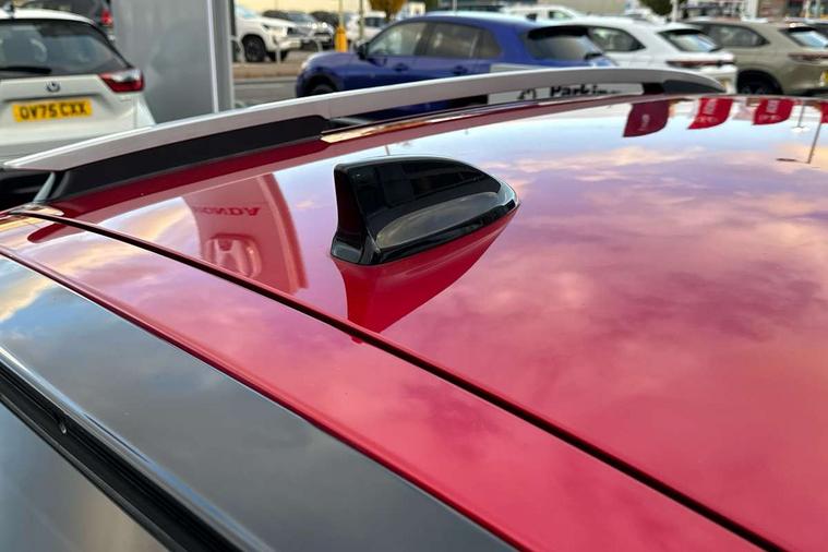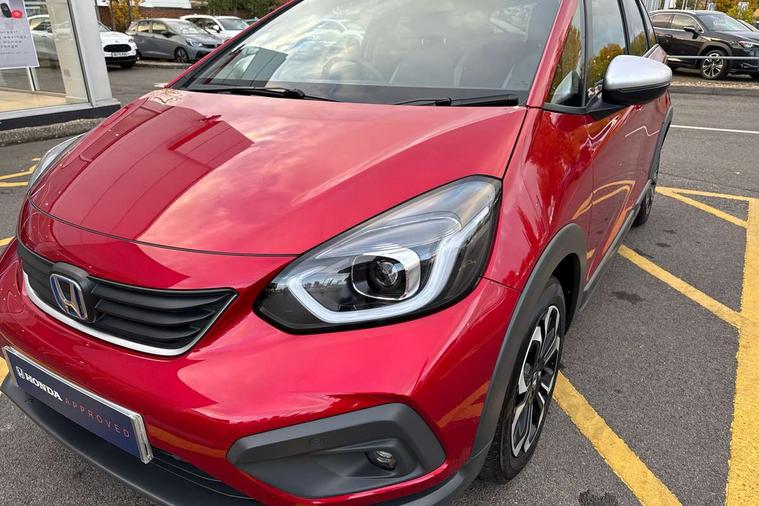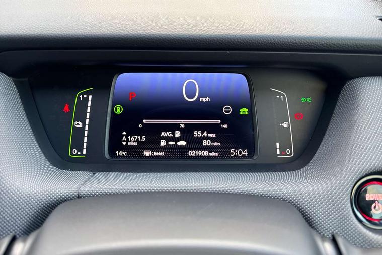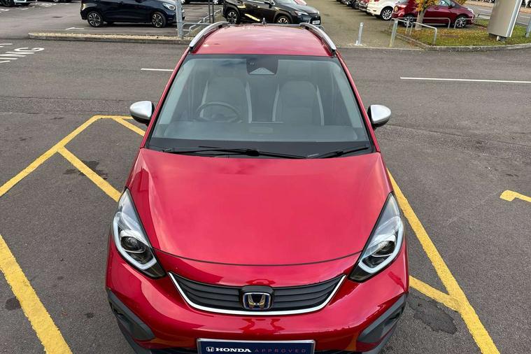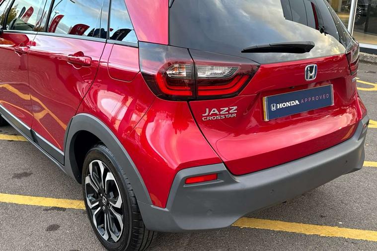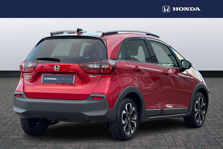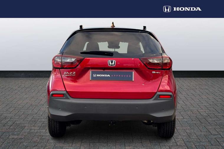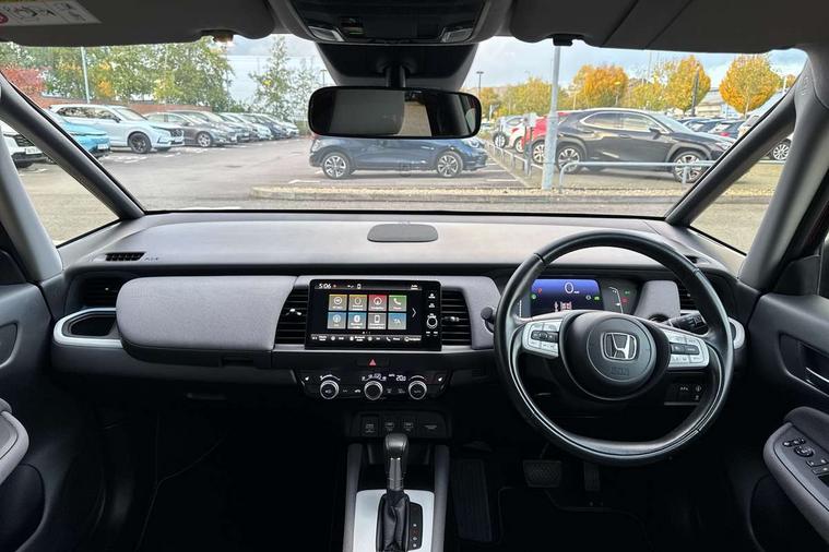 Adaptive cruise control, Bluetooth hands free telephone connection, Econ mode, Electric power steering wheel with variable gear ratio steering, Emergency stop signalling system, Forward collision warning, Front and rear parking sensors, Honda CONNECT with HERE Navigation + 9" touchscreen, AM/FM/DAB/Apple Carplay and android auto, Idle stop, Intelligent speed limiter, Lane departure warning system, Lane keep assist system, Low speed following, Multi-information display, Road departure mitigation, Traffic sign recognition, Vehicle stability assist, 'Shark fin' mobile antenna, 2 USB sockets in rear, 2x USB Front socket (1 data & 1 charge), Premium audio with 8 speakers, front tweeter, centre speaker, Remote audio controls on steering wheel, Subwoofer, Aspheric door mirrors, Auto wipers, Automatic headlights with on/off timer, Coming/leaving home function, Body colour door handles, eHEV emblem, Electric adjustable door mirrors, Electrically folding door mirrors, Exclusive styling includes Front and rear bumper, Front fog garnish, Black fender, side sill garnish, Front and rear electric windows, Heated door mirrors, High beam assist, LED daytime running lights, LED front fog lights, LED Headlights, LED rear lights, Privacy glass, Roof rails, Single exhaust tailpipe, 60/40 split rear bench seat, Climate control air conditioning, Driver and front passenger seat armrests, Driver and passenger front seat pockets, Driver's seat height adjustment, Fabric/Water repellent upholstery, Front accessory power socket, Front head restraints, Front map lights, Front/rear courtesy lights, Heated front seats, Isofix child seat restraint mechanism, Isofix points, Leather gearshift knob, Leather steering wheel, Magic seat flexibility system, Paddle shift controls, Plating interior door handles, Rear head restraints, Rear parcel shelf, Sunvisors with vanity mirrors, Tilt/telescopic adjustable steering wheel, Tonneau cover, Trunk light, 3x3 point rear seatbelts, Anti-lock braking system (ABS), Brake assist function, Brake hold function, Collision mitigation braking system, Deflation warning system, Driver knee airbag, Driver SRS airbag (single stage inflation), Driver/Front Passenger airbags, Electric parking brake, Front and rear side curtain airbag, Front side airbags, Hill start assist, Passenger SRS airbag cut-off device, Rear side airbags, Front seat belt with emergency locking retractor, Honda super locks, Immobiliser, Mirrors and windows key fob operation, Remote central locking with 2 remote folding keys, Security alarm, Smart entry + Smart start, Soft pad mesh interior panels, 16" AL Crosstar alloy wheels in mat berlina black, Tyre repair kit,