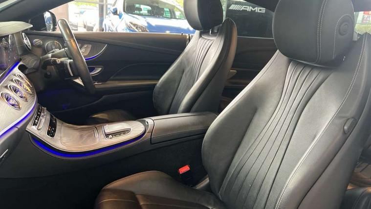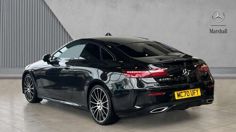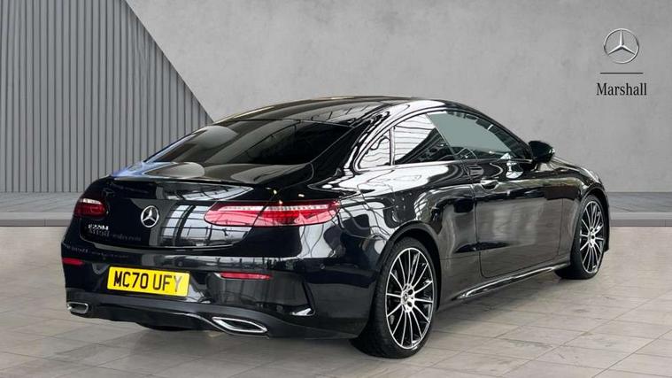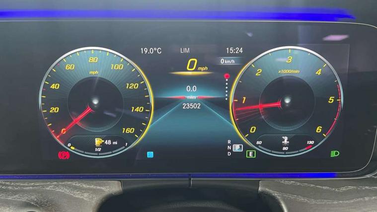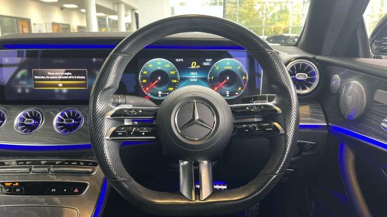 360 degree parking camera, Active parking assist including front and rear parking sensors, Analogue clock, Attention assist, Blind spot assist, Bluetooth interface for hands free telephone, Brake wear warning display, Cockpit display 12.3" widescreen digital instrument cluster, Collision prevention assist plus, COMAND online HDD navigation with Radio/Media interface, linguatronic + smartphone integration/Apple CarPlay/Android Auto and 12.3" Cockpit display, Direct steer speed sensitive steering, Direct steering, DYNAMIC SELECT with a choice of driving modes (ECO, Comfort, Sport, Sport+ and Individual), ECO start/stop function, Engine start/stop button, Mercedes connect me, Multi function trip computer, Outside temperature display, Remote boot release, Service indicator (ASSYST), Status display for rear seat belts in instrument cluster, Touchpad with control wheel, Wireless charging, 25 litre AdBlue tank, 66 litre fuel tank, Diesel particulate filter, Incorrect fuelling protection, 2 USB ports in centre console, Audio 20 with USB, touchpad and control wheel with Media Interface with Bluetooth interface and hands-free function, Burmester surround sound system with 13 speakers and a 9 channel amplifier with total output of 590 watts, DAB Digital radio, Adaptive brake lights, AMG bodystyling front and rear aprons, side skirts, AMG boot lid spoiler in body colour, AMG front, rear apron and side skirts, Body colour door handles, Body coloured bumpers, Electric windows with one touch opening/closing and obstruction sensors, Exterior mirrors heated and electronically adjustable, Fog lights, Illuminated front door sill panels with Mercedes-Benz lettering, Magic Vision Control heated windscreen wiper system, Multibeam LED Intelligent Light System with Adaptive Highbeam Assist, Panoramic electric glass sunroof, Pre-installation for roof rail systems, Privacy glass Includes rear side windows and rear windscreen, Rain sensing windscreen wipers, Rear LED lights, Top surround of side windows in polished aluminium, Visible twin pipe exhaust system integrated into bumper, 3-spoke flat bottom multifunction AMG steering wheel with Touch Control buttons, trimmed in black nappa leather, 4 way adjustable front head restraints and 2 way rear head restraints, 40:20:40 split folding rear seats, Artico man-made leather upper dashboard and beltlines with contrast stitching, Automatic child seat recognition sensor, Automatic two zone climate control, Bag hook in luggage compartment, Belt feeder driver and front passenger seat belt automatically positioned within easier reach, Black roof lining, Central stowage compartment with 12 V socket in centre console, Centre armrest and door handle illumination, Chrome door pins, Easy entry seats, Floor mats with AMG lettering, Front and rear door pockets, Front centre armrest with stowage compartment, Front footwell lights, Glasses compartment in overhead control panel, Glove compartment - lockable, air conditioned and illuminated, Heated front seats, Interior lighting - 64 colour Ambient lighting, Interior rear light/integral reading lights, Isofix rear child seat fastenings, Multi contour front sports seats, Multi function steering wheel, Rear centre armrest with 2 cupholders + storage, Seat occupancy sensor for front passenger seat, Sports pedals in brushed stainless steel with black rubber studs, Steering column manually adjustable for height and reach, Steering wheel gearshift paddles, Steering wheel touch control buttons for audio and onboard settings, Storage net in luggage compartment, Sunvisors with illuminated vanity mirrors, Twin front cupholders, Keyless Go comfort pack - E Class, Memory pack - E Class, Mirror pack - E Class, Stowage pack - E Class, 2 x 3-point rear seatbelts, Active bonnet, Active brake assist, Adaptive brake system, Adaptive driver and front passenger airbags, Anti-lock braking system (ABS), Crash sensor (auto door unlocking), Drivers knee airbag, Electric parking brake, Electronic Stability Programme, Front and rear window airbags, Front seatbelt pretensioners, Front side airbags, Head airbags, Hill hold function, Perforated front brake discs with "Mercedes-Benz" lettering, Seatbelt warning, Tyre pressure monitoring system, Warning triangle and first aid kit, Alarm system/interior protection/immobiliser, Central locking with interior switch, automatic locking and crash sensor with emergency opening function, Chrome surround in electric key, Black open pore ash wood, Open pore black ash wood centre console, Run flat tyres,