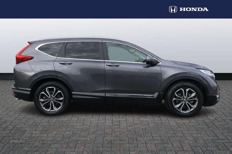 Adaptive cruise control, Agile handling assist, BLIS (Blind Spot Information System) with dual power heated blind spot mirrors, Bluetooth hands free telephone connection, E-call, Economy mode, Electric power steering, Emergency stop signalling system, Forward collision warning, Front parking sensors, Honda CONNECT with GARMIN Navigation + 7" touchscreen, DAB radio, Apple CarPlay, Android Auto, Aha app integration and internet browsing, Intelligent multi info display, Lane departure warning system, Lane keep assist system, Low speed following, Rear parking sensors, Rear view camera, Road departure mitigation, Speed limiter, Traffic sign recognition, Vehicle stability assist, 2 USB sockets in rear, 2x USB sockets in front, 9 speakers, DAB Digital radio, Dashboard centre speaker, Front tweeters, Steering wheel mounted controls, Subwoofer, Aspheric door mirrors, Auto dimming rear view mirror, Automatic headlights with dusk sensor, Body colour bumpers, Body colour door handles, Cornering light, Door mirrors tilt when reversing, Electric front windows/one touch facility, Electric rear windows + one touch facility, Electrically adjustable and heated door mirrors, Electrically retractable door mirrors, Front windscreen de-icer, High beam assist, LED daytime running lights, LED front fog lights, LED Headlights, LED rear lights, Rain sensor, Rear privacy glass, Rear side wing doors, Rear wiper, Roof rails, Shark fin roof aerial, Tailgate spoiler, Third brake light, Welcome home function, 3 seat bench in 2nd row, 60/40 split folding rear seat, Accessory sockets, Ambient interior lighting, Cargo hooks, Courtesy lights, Driver's electric adjustable lumbar support, Driver/passenger front seatback pockets, Driver/passenger sunvisors with illuminated vanity mirrors, Dual zone automatic climate control, Electric lumbar adjustment on passenger's seat, Footwell ambient lighting, Front centre armrest, Front map lights, Front passenger seat height adjust, Heated front seats, Height adjustable driver's seat, Hybrid emblem, Illuminated glovebox, Instrument panel with garnish wood film, Isofix child seat preparation, Leather steering wheel, Leather upholstery, Paddle shift controls, Rear air vents, Rear centre armrest, Rear headrests, Rear reading lights, Rear seat conversation mirror, Silver interior door handles, Single front passenger seat, Sunglasses holder with mirror, Tilt/telescopic adjustable steering wheel, Tonneau cover, Trunk light, 5 x 3 point seatbelts, ABS/EBD, Anti-whiplash front headrests, Brake assist function, Collision mitigation braking system, Deflation detection system, Driver airbag, Electronic parking brake with auto hold, Front and rear curtain airbags, Front and rear seat belts with emergency locking retractor (ELR), Front side airbags, Hill start assist, Manual child lock in rear doors, Passenger airbag deactivate switch, Honda super locks, Immobiliser, Security alarm, Smart entry + Smart start, Ultrasonic security sensor, Tyre repair kit,
