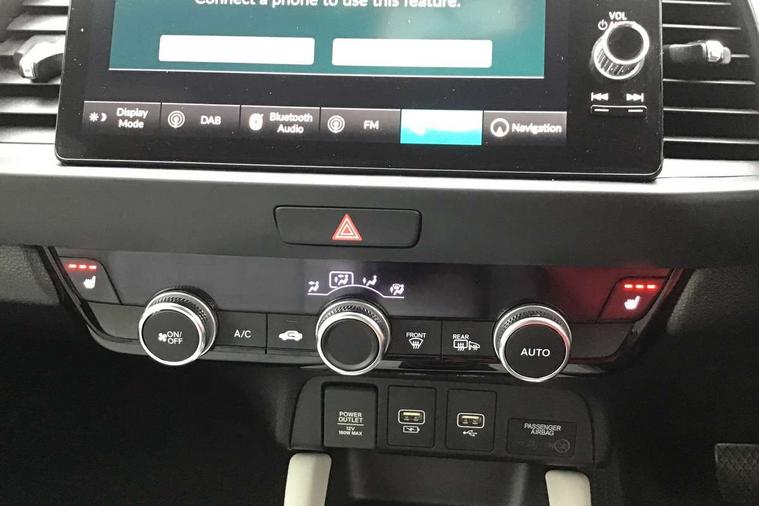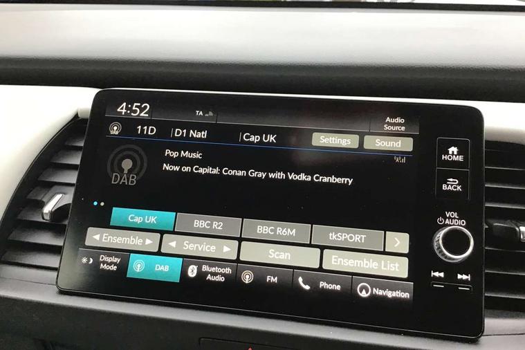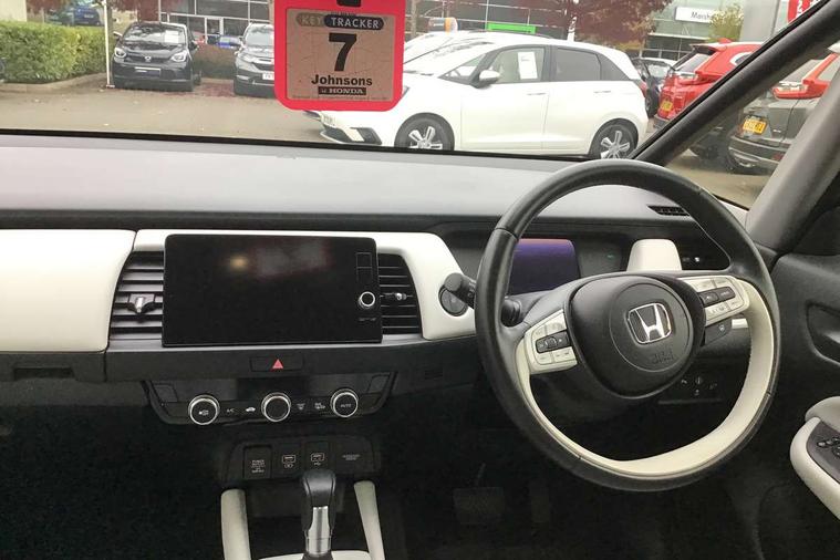 Adaptive cruise control, Adjustable speed limiter, Agile handling assist, BLIS (Blind Spot Information System) with Cross Traffic Monitor, Bluetooth hands free telephone connection, eCall emergency call system, Econ mode, Electric power steering wheel with variable gear ratio steering, Emergency stop signalling system, Forward collision warning, Front and rear parking sensors, Honda CONNECT with HERE Navigation + 9" touchscreen, AM/FM/DAB/Apple Carplay and android auto, Idle stop, Intelligent speed limiter, Lane departure warning system, Lane keep assist system, Low speed following, Multi-information display, Rear view camera, Road departure mitigation, Traffic sign recognition, Vehicle stability assist, 'Shark fin' mobile antenna, 2 USB sockets in rear, 2x USB Front socket (1 data & 1 charge), 4 speakers, Remote audio controls on steering wheel, Aspheric door mirrors, Auto wipers, Automatic headlights with on/off timer, Coming/leaving home function, Body colour door handles, Body coloured bumpers, eHEV emblem, Electric adjustable door mirrors, Electrically folding door mirrors, Front and rear electric windows, Heated door mirrors, High beam assist, LED daytime running lights, LED front fog lights, LED Headlights, LED rear lights, Privacy glass, Rear side wing doors, Rear wiper, Single exhaust tailpipe, Third brake light, 3 seat bench in 2nd row, 60/40 split rear bench seat, Cargo net hooks, Climate control air conditioning, Driver and front passenger seat armrests, Driver and passenger front seat pockets, Driver's seat height adjustment, Fabric/leather upholstery, Front accessory power socket, Front head restraints, Front map lights, Front/rear courtesy lights, Heated front seats, Heated steering wheel, Isofix child seat restraint mechanism, Isofix points, Leather gearshift knob, Leather steering wheel, Magic seat flexibility system, Paddle shift controls, Plating interior door handles, Rear head restraints, Rear parcel shelf, Single front passenger seat, Sunvisors with vanity mirrors, Tilt/telescopic adjustable steering wheel, Tonneau cover, Trunk light, 3x3 point rear seatbelts, Anti-lock braking system (ABS), Brake assist function, Brake hold function, Child locks on rear doors, Collision mitigation braking system, Deflation warning system, Driver knee airbag, Driver SRS airbag (single stage inflation), Driver/Front Passenger airbags, Electric parking brake, Front and rear side curtain airbag, Front side airbags, Hill start assist, Passenger SRS airbag cut-off device, Rear side airbags, Whiplash lessening front headrests, Front seat belt with emergency locking retractor, Honda super locks, Immobiliser, Mirrors and windows key fob operation, Remote central locking with 2 remote folding keys, Security alarm, Smart entry + Smart start, Soft pad leather interior panels, 16" Multi apperance alloy wheels in mat berlina black, Tyre repair kit,