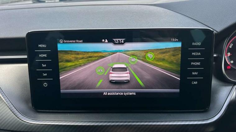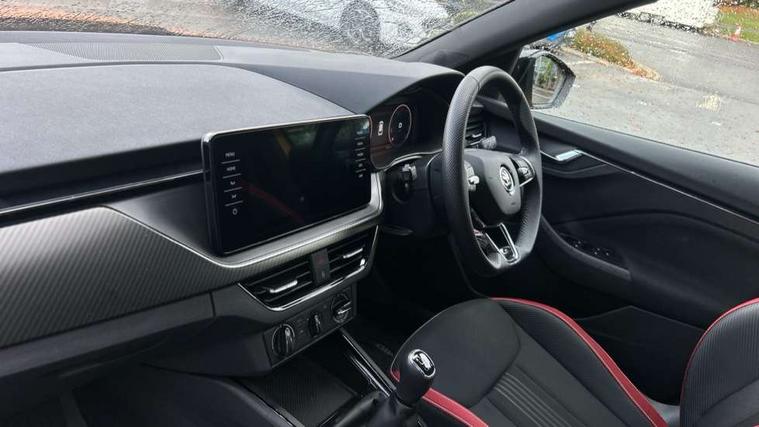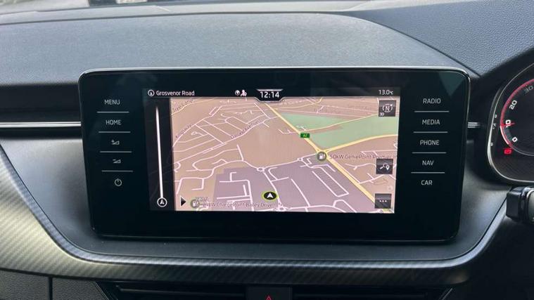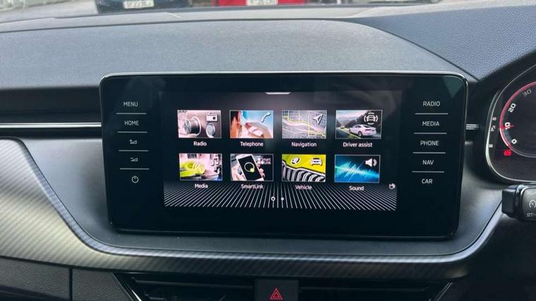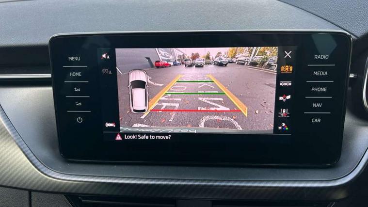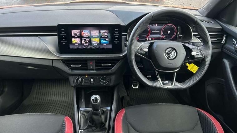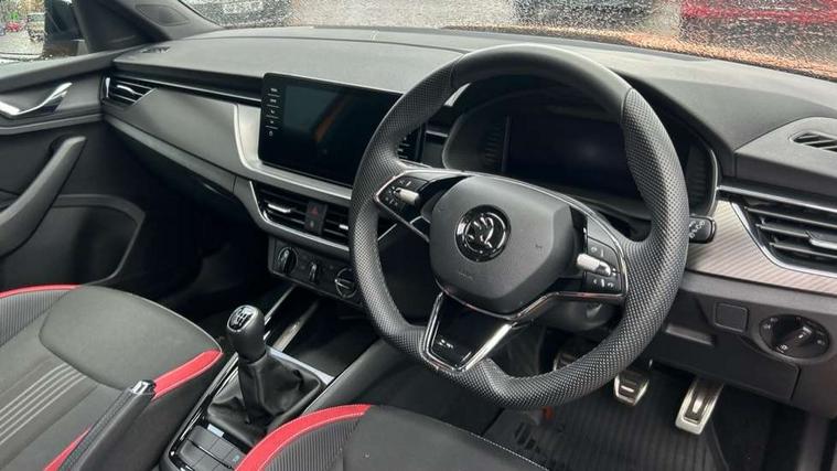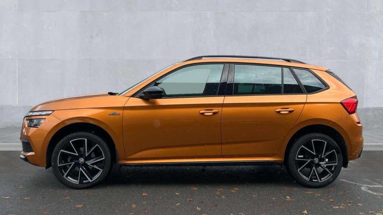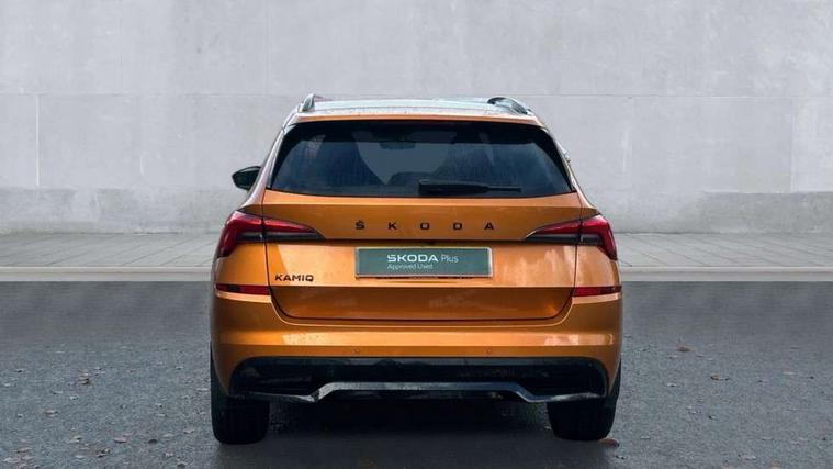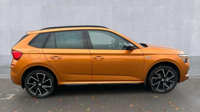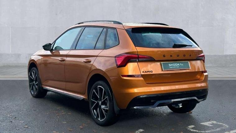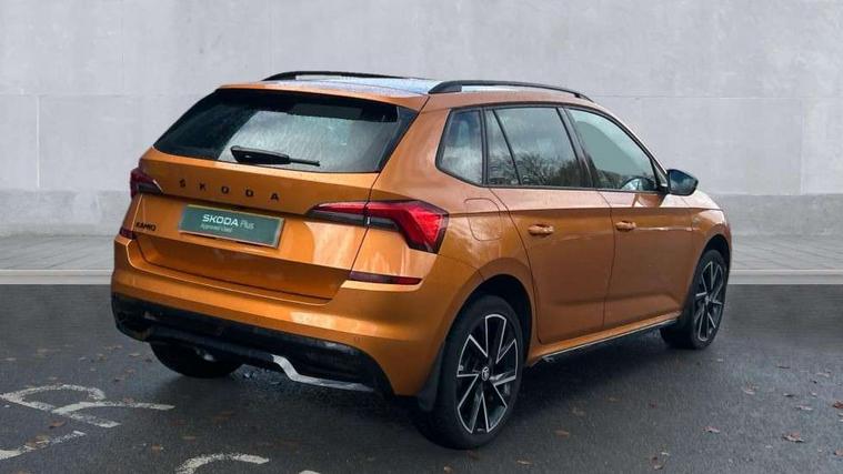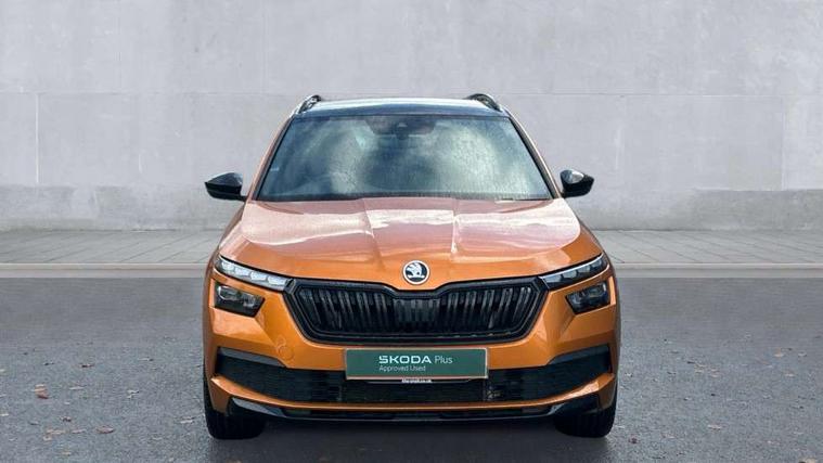 Amundsen satellite navigation with 9.2" glass colour touchscreen display, web radio, voice control and traffic sign recognition, Bluetooth system, E-call, Front assist system, Gesture control, PAS, Service indicator, Speed limiter, Wireless Smartlink for Apple CarPlay (wired for Android Auto), 8 Speakers, Auxiliary input socket, DAB Digital radio, Black door mirrors, Black radiator grille, Black rear diffuser, Body colour bumpers, Body colour door handles, Body colour roof spoiler, Boot lettering in black, Chrome grille surround, Dimming rear view mirror with black surround, Electrically adjustable and heated door mirrors, Fixed panoramic sunroof with black roof rails, Front and rear electric windows, Front sport bumper, Full LED headlights with adaptive front light system, cornering function, fog lights and dynamic indicators, Headlight range control, Heated rear window, High functionality rear led lights with dynamic indicators, KAMIQ Door sills, LED daytime running lights, LED third brake light, Light sensors, Monte carlo plaque, Privacy glass, Rain sensor, Rear fog lights, Rear side wing doors, Rear wiper, 12V Accessory socket in centre console, 3 seat bench in 2nd row, Aluminium pedals, Black ceiling for black/beige interior, Black roof lining, Chrome inner door handles, Cloth upholstery, Front head restraints, Glove compartment with illumination, Height adjustable front passenger seat, Ice scraper, Isofix child seat fittings on outer rear seats, ISOFIX on front passenger seat, Leather gear lever, Manual lumbar support for front seats, Rake/reach adjustable steering wheel, Reading lights, Single front passenger seat, Sports seats, Sun visors with illumination on front passenger, Textile floor mats, Third rear headrest, Top tether for front passenger seat, Umbrella in driver's door, 3x3 point rear seatbelts, Airbags - driver and front passenger, ESP, Front passenger airbag deactivation switch, Front side airbags with curtain airbags, Hill hold control, Manual parking brake, Manual rear child locks, One tone horn, Rear disc brakes, Seatbelt reminder for driver an co-driver, Traction control, Tyre pressure monitor, Anti-theft alarm system with interior monitoring, backup horn, towing protection and remote central locking with SAFE system, Anti-theft wheel bolts, Electronic engine immobilizer, Chrome air vent surrounds, 18" Vega alloy wheels in black,