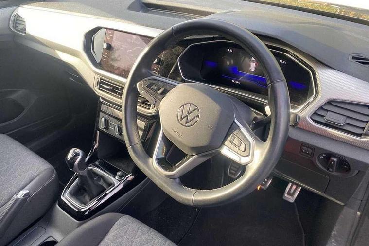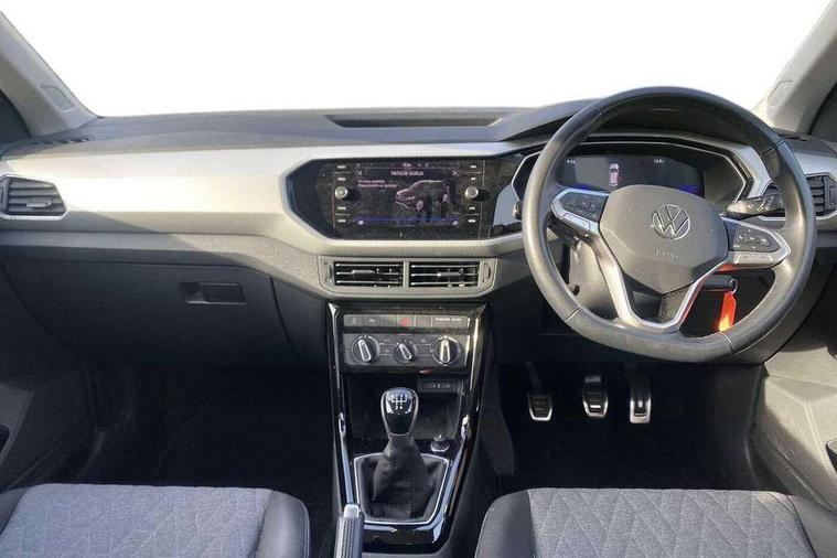 'Lights On' Reminder warning buzzer, Adaptive cruise control including front assist, forward collision warning, autonomous emergency braking, speed limiter, Blind spot monitoring, Bluetooth telephone and audio connection for compatible devices, Car information display, Driver alert system, E-Sim card for online connectivity, eCall emergency call system, Front and rear parking sensors, Lane assist, Low washer fluid warning light, Multifunction computer with visual gear change recommendation for fuel consumption, Operating permit alteration, Power assisted speed sensitive steering, Speedo, rev counter, electronic odometer, trip, service interval display, exterior temperature and fuel gauge, Tailgate, Warning sound and light for doors and tailgate open, Warning sound and light for front seatbelts unfastened, We Connect Go Dongle, Wireless Car net app connect with Apple CarPlay, combined functionality of Apple CarPlay/Android Auto and MirrorLink, Battery regeneration during braking, Misfuel prevention device, Start-stop system with battery regeneration (recuperation - energy recovery during braking), DAB Digital radio receiver, Diversity antenna for FM reception, Multi device interface (MDI) with USB connection, Music playback - MP3, WMA and AAC files, Premium USB cable for Apple or Android smartphone compatibility, Radio, Simultaneous pairing of 2 compatible mobile devices, Title and cover art display, Automatic hazard lights activation under emergency braking, Black roof rails, Body colour door handles, Body colour door mirrors with integrated indicators, Body coloured bumpers, Dusk sensor + automatic driving lights, Electrically foldable, adjustable and heated door mirrors with reverse activated kerb view adjustment on passenger's side, Front and rear electric windows, Front fog lights with static cornering function, Galvanised body, Heat insulating glass in side and rear windows, LED third brake light, Lower door sills and door pillars in black, Radiator grille with chrome trim and chrome bezel front fog lamp, Rear fog light on one side, reversing light on both sides, Rear lights incorporating LED technology, Rear side wing doors, Rear window aerial, Rear windscreen washer and wiper with interval delay, Reflectors in all doors, Scuff plates, Tailgate with integrated roof spoiler, Windscreen wipers/ intermittent wipe + 4 position delay, Without dynamic road sign display, 12V Accessory socket in centre console, 2 Front and rear reading lights incorporating LED technology, 2 USB C ports in front, 2 USB charging sockets on the centre console in the rear charging capacity upto 45W, 3 rear head restraints and 3 rear three point seat belts with ECE label, 3 seat bench in 2nd row, 60/40 split folding rear seat backrest, Ambient lighting and sourround lighting, Brushed stainless steel pedals, Child seat anchor for child seat system i-Size, 2x top tether and child seat anchor in front on front passenger side, Decorative strips doors in tomension silver leaf, Door and side trim panel, Drawer under drivers seat, Dust and pollen filter, Fabric upholstery, Front + rear carpet mats, Front centre armrest with storage compartment, Front seat back storage pockets, Front seats with adjustable lumbar support, Glovebox, Heating and fresh air system with 4 stage blower, Height/reach adjust steering wheel, Instrument lighting white adjustable panel illumination, LED interior light with switch off delay and dimmer, Luggage compartment cover, Luggage compartment lighting, Manual air conditioning, Manual front seats with height adjustment, MOVE badging on B-Pillar and door sill, Single front passenger seat, Storage compartment in drivers and front passengers door, Sun visors without mirror with ticket pocket on driver side, on front passenger side with airbag label on sun visor a.B-pillar, Three spoke multi-function leather trimmed steering wheel and gearknob, Unsplit sliding rear seat bench, Chrome pack - T-cross, 3-point seat belts in front with electric tensioner + height adjustment, Anti-lock Braking System (ABS) with Hydraulic Brake Assist (HBA), Automatic post collision braking system, Disc brakes in front, Driver and front passenger safety-optimised head restraints, Drivers and Front Passengers airbags with front passengers airbag deactivation switch, Drum brakes in rear, ESC with EDL, ASR, EDTC and trailer stabilisation function, Extended and predictive pedestrian/cyclist protection, Front and rear curtain airbags, Front seat side impact airbags, Hill start assist, Pre crash preventive occupant protection, Proactive passenger protection system in combination with front assist, Rear door child safety locks, Rigid safety cell with front and rear crumple zones, Single torn horn, Tyre pressure loss indicator, Volkswagen roadside assistance, Alarm with interior protection and deactivation via infotainment system, Electronic engine immobiliser, Remote tailgate unlocking using key fob, 16" Zurich alloy wheels + anti theft wheel bolts, Breakdown kit,