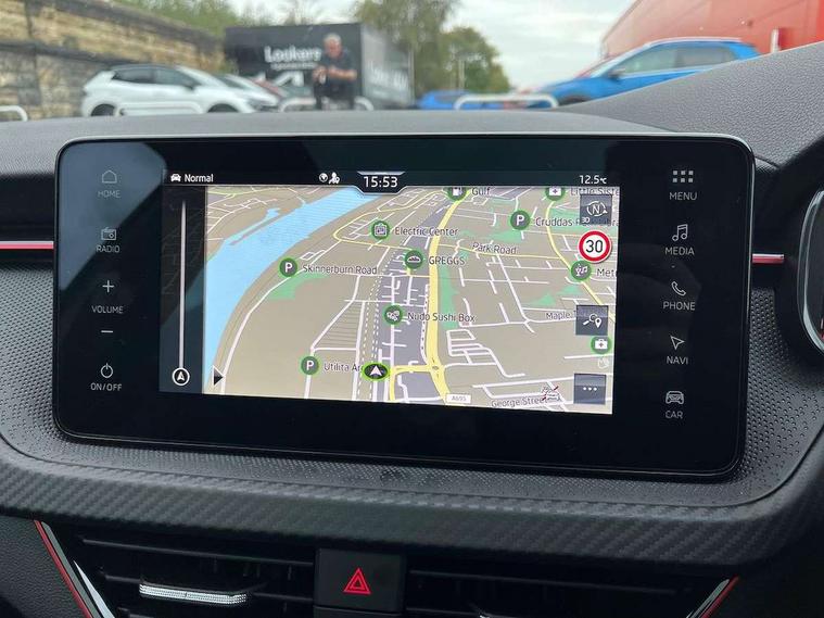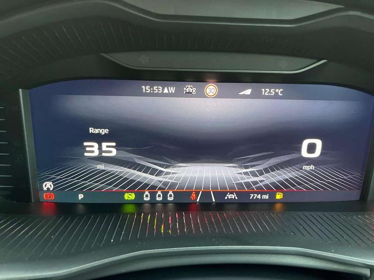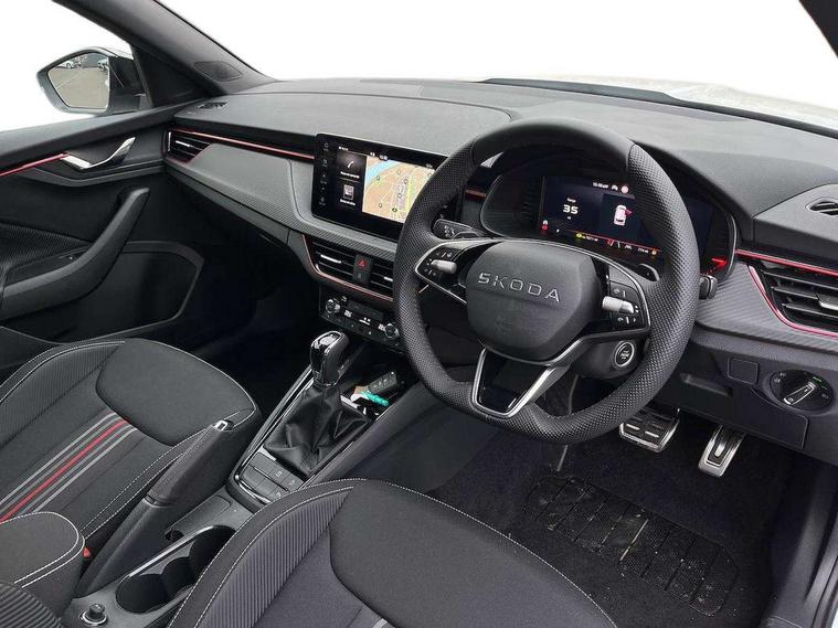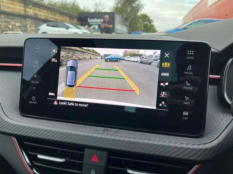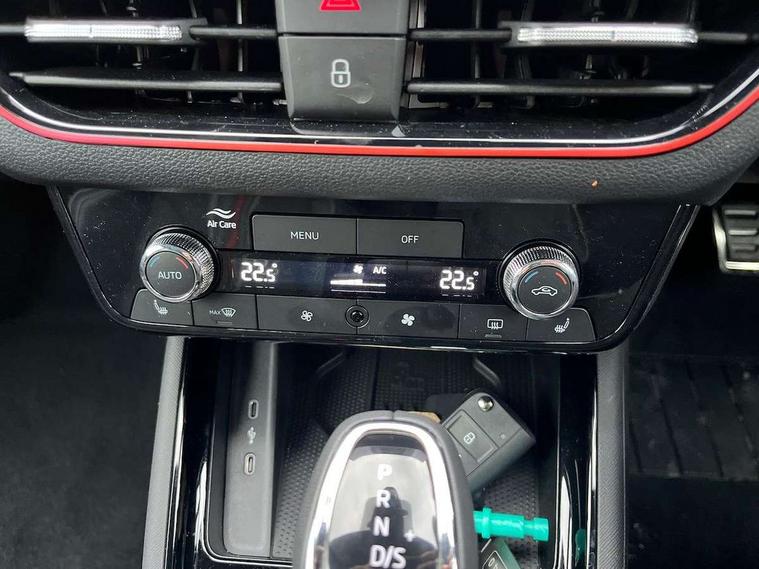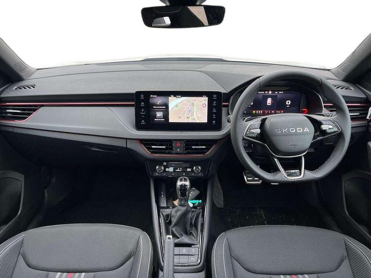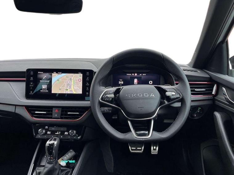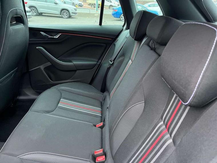 Advanced driver attention and drowsiness monitor, Bluetooth system, E-call, Front assist system, PAS, Rear parking sensors, Rear view camera, Service indicator, Speed limiter, Traffic sign recognition, Virtual cockpit with 10.25" display, Voice control system, Wireless smartlink, 4 USB C ports, 8 Speakers, 9.2" Skoda navigation display, DAB Digital radio, Auto dimming rear view mirror, Automatic headlight control with coming home and leaving home feature, Black door mirrors, Black radiator grille, Black rear diffuser, Black roof spoiler, Body colour bumpers, Body colour door handles, Boot lettering in black, Extended tailgate glass, Fixed panoramic sunroof with black roof rails, Front and rear electric windows, Heated rear window, LED daytime running lights, LED high beam, LED low beam, LED third brake light, Light sensors, Monte carlo plaque, Privacy glass, Rear side wing doors, Rear wiper, Ticket holder inside windscreen, 12V socket in luggage compartment, 3 seat bench in 2nd row, Aluminium pedals, Ambient lighting in white/red, Art leather carbon decor inserts, Art leather carbon door inserts, Black roof lining, Cargo elements, Chrome inner door handles, Driver and passenger sun visors with vanity mirror, Dual zone climate control, Front and rear roof lights, Front centre armrest, Front head restraints, Glove compartment with illumination, Height adjustable driver seat, Height adjustable front passenger seat, Ice scraper, Inner circulation control with pollen filter, ISOFIX on front passenger seat, Isofix preparation for back seats, Leather gearknob and handbrake lever, Manual lumbar support for front seats, Monte Carlo cloth upholstery, Net package and top tether hooks in boot space, Net under rear shelf, Pocket on the back of both front seats include mobile phone pockets, Rake/reach adjustable steering wheel, Reading lights, Rear centre armrests, Red hotstamping, Single front passenger seat, Sports seats, Textile floor mats, Third rear headrest, Top tether for front passenger seat, Umbrella in driver's door, Light and view plus package - Kamiq, 3x3 point rear seatbelts, Airbags - driver and front passenger, Disc brakes, ESP, Extended and predictive pedestrian/cyclist protection, Front passenger airbag deactivation switch, Front side airbags with curtain airbags, Hill hold control, Manual leather parking brake, Manual rear child locks, One tone horn, Seatbelt reminder for driver an co-driver, Traction control, Tyre pressure monitor, Anti-theft alarm system with interior monitoring, backup horn, towing protection and remote central locking with SAFE system, Anti-theft wheel bolts, Electronic engine immobilizer, 18" Ursa black diamond cut alloy wheels,