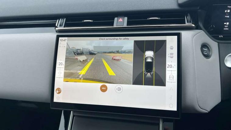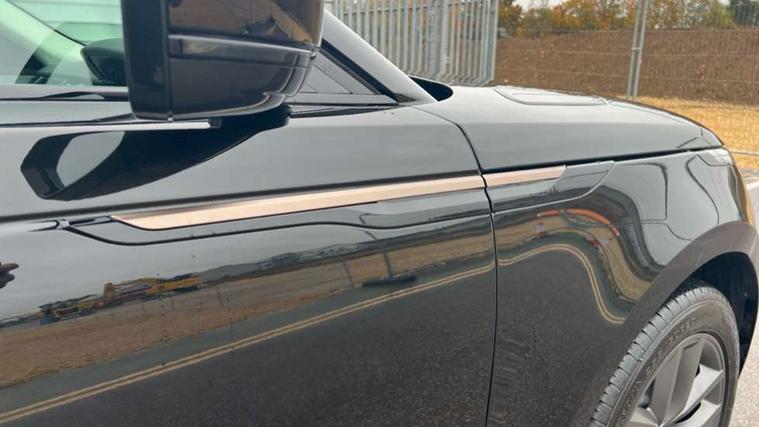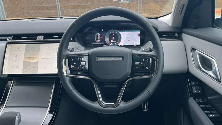 3D surround camera includes forward traffic detection and vehicle guidance, Android Auto, Apple CarPlay, Blind spot assist, Bluetooth connectivity, Brake pad wear indicator warning light, Driver condition monitor, eCall emergency call system, Front and rear parking aid, InControl remote, Land Rover InControl apps, Lane keep assist, Pivi pro with connected navigation, Rear traffic monitor, Service indicator, Speed proportional electronic power assisted steering (EPAS), Traffic sign recognition with adaptive speed limiter, Trip computer, Voice control system, Wade Sensing, Wireless device charging, 8 speed automatic transmission, All terrain progress control, Coil suspension system, Open differential with torque vectoring by braking, Single speed transfer box, DAB radio, Steering wheel mounted controls, 3rd brake light, Acoustic laminated windscreen, Auto dimming interior rear view mirror, Auto high beam assist, Automatic headlamp levelling, Automatic headlights, Body coloured bumpers, Boot protection plate, Electric windows with one touch open/close and anti trap, Flush deployable exterior door handles, Follow me home headlights, Heated rear window with timer, Heated washer jets, Heated windscreen, LED headlights with signature DRL, Metal front tread plates, Metal load space scuff plates, Power fold, auto-dimming, heated door mirrors with memory and approach lights, Rain sensor windscreen wipers, Rear animated directional indicators, Rear fog lights, Rear side wing doors, Rear wash/wipe, Tailgate/boot lid spoiler, Trailer stability assist, Velar badge, 14 way electrically adjustable front seats with driver's memory function, 3 seat bench in 2nd row, Ambient lighting, Bright metal pedals, Carpet mats, Driver/passenger sunvisors with illuminated vanity mirrors, Ebony morzine headlining, Electrically adjustable steering column, Heated steering wheel, Isofix system on outer rear seats, Loadspace cover, Overhead lighting console, Overhead stowage for sunglasses, Passive front headrests, Rear air vents, Rear centre headrest, Single front passenger seat, Twin front cupholders, Twin sliding front centre armrest, Online pack with data plan - Velar, Power socket pack 2 - Velar, 355mm Front and 325mm Rear brakes, 3x3 point rear seatbelts, Anti-lock braking system (ABS), Cornering brake control, Curtain airbags, Customer configurable autolock, Door side intrusion beams, Driver airbag, DSC - Dynamic Stability Control, Electronic brake force distribution, Electronic parking brake, Electronic traction control, Emergency braking, Front and rear seatbelt reminder, Hill descent control, Hill launch assist, Low traction launch, Passenger airbag, Power operated child locks, Rear airbags, Roll stability control, Side airbags, Tyre pressure monitoring system (TPMS), Global lock and unlock switch on driver door, Immobiliser, Intrusion sensor, Keyless entry, Lock only switch on front passenger door, Locking wheel nuts, Perimetric alarm, Remote central locking, All season tyres,