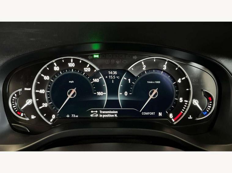 Active Guard incl speed limiting and lane departure functions with auto steering, and front collision warning with brake intervention, Attentiveness assist, Automatic tailgate operation, BMW Online services, BMW remote services, BMW Teleservices, Brake pad wear indicator in front and rear, Check Control warning system for monitoring of lights and door/luggage compartment open warning, Control display - 6.5" colour display screen, Front/rear Parking distance control, iDrive Controller with 8 favourite buttons, Instrument cluster with speedometer with mph readout, tachometer, fuel gauge and oil temperature gauge, Lights on warning by audio warning signal when ignition is switched off, Navigation system - BMW Professional multimedia with Hard disc drive (HDD) and 10.25" touch display, Oil sensor for level and grade, warning by check control system, On board computer - average speed+fuel consumption, service interval, clock/date, odometer/trip meter, outside temperature display and ice warning, Optimum shift indicator, Personal Profile - automatic lock when driving away selectable, Real time traffic information, Stop/start system, Variable sports power steering, Diesel particulate filter, Incorrect fuelling protection, Larger capacity fuel tank, Multi-link rear suspension, Performance Control, Sport automatic transmission with gearshift paddles, Auxiliary socket for external MP3 player, BMW professional radio/CD/MP3, DAB Digital radio, Black finish on B pillars, Body colour door handles, Body colour electric adjust heated aspherical door mirrors, Body colour roof mouldings, Body coloured bumpers, Chrome kidney grille with high gloss black vertical slats, Direction indicator, side repeaters, integrated in exterior mirrors, Dual chrome exhaust, Dynamic brake lights, Fingertip control / anti-trap function on electric window, Follow me home headlights, Front and rear bumper system with replaceable deformation elements, Front and rear electric windows, Green tinted heat insulating glass, Heated windscreen washer jets, Height adjustable headlamps, High gloss black door sill finishers, High level 3rd brake light incorporating LED Technology, Interior rear view electrochromatic mirror with automatic anti dazzle function, LED front fog lights, LED tail lights, Lightweight engineering, M aerodynamic bodystyling, Rain sensor including auto headlights activation, Rear wiper, Shark fin antenna, Visible VIN plate, Welcome lighting, Windscreen wipers with adjustable interval, 12V socket in centre console and luggage area, 3 rear headrests, 3 zone automatic air conditioning, 4 lashing points to secure luggage, Ambient lighting, Anthracite headlining, Anthracite Velour floor mats, Driver/passenger sunvisors with ticket holders + illuminated vanity mirrors, Foldable boot floor with storage compartment, Four grab handles integrated in roof lining, Front and rear bottle holders integrated into door trim storage compartments, Front and rear side armrests integrated into door trim, Front centre armrest with storage compartment, Front footwell lights, Front/rear courtesy lights with soft on/off dimming, Front/rear reading lights, Height adjustable front/rear head restraints, Isofix rear child seat preparation, Leather gear knob, Luggage area underfloor compartment, Luggage compartment lighting, M Sport multifunction leather steering wheel, Parcel shelf removeable and storable under boot floor, Rake/reach adjustable steering wheel, Rear seat centre armrest with two cupholders, Removable / retractable luggage cover, Slope adjustable rear seats, Storage compartment in rear centre console, Through loading system with 40/20/40 split folding rear seat, Toolkit located in luggage compartment, Two front cupholders with removable oddments tray/lid, Vernasca leather upholstery, ABS/EBD, ADB - Automatic Differential Brake, Automatic Stability Control (ASC), Battery safety cut-off, BMW emergency call, Brake assist function, Brake drying, Brake energy regeneration, Braking pre-tensioning, Child locks on rear doors, Cornering brake control (CBC), Crash Sensor - activation of central locking release, hazard warning light and interior lighting, Deactivation of fuel pump in the event of a crash, Driver and front passenger front and side airbags with passenger deactivation and ITS front and rear head airbags, DSC+, Dynamic brake control, Dynamic Traction Control - DTC, Electromechanical parking brake, Front seat belts warning, Hill descent control, Hill start assist, Seatbelt security check for front seats, Side impact protection, Three point seatbelts to all seats with front and outer rear pyrotechnic belt tensioners and seat belt force limiters, Two tone horn, Tyre pressure monitoring system, Ventilated front and rear disc brakes, Warning triangle and first aid kit, Central locking switch for all doors, fuel filler cap and luggage compartment, Electronic engine immobiliser, Locking wheel nuts, Remote control including two integrated key - one button for open/close all lockable content, windows and separate button for open luggage compartment, Remote control Thatcham category 1 alarm, Start/stop button with Comfort Go keyless engine start and auto Start/stop deactivation button, Low rolling resistance tyres,