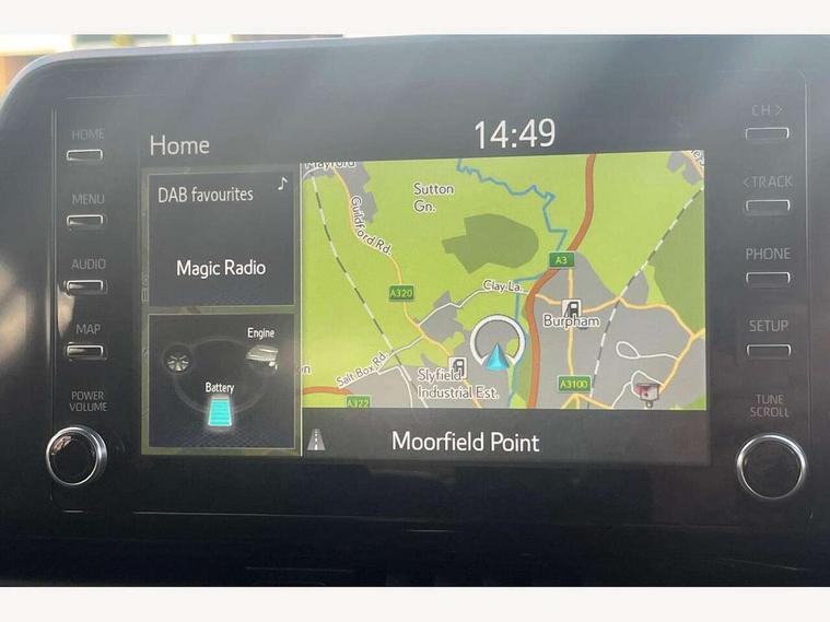 4.2" coloured TFT screen for multi-information display, Adaptive cruise control, Bluetooth connectivity, Electric power steering, Front parking sensors with ICS and auto braking, Hybrid system indicator, Lane departure alert with steering control, Rear parking sensors with ICS, Remote boot door release in cabin, Remote boot door release in key, Reversing camera, Road sign assist - RSA, Simple Intelligent parking assist, Smart entry and push button start, Touch 2 Go navigation system, Trip computer, Voice recognition, Vehicle Stability Control (VSC), 6 speakers, AM/FM radio, DAB Radio (Digital Audio Broadcasting), Toyota touch 2 multimedia system with 8" display, USB connector, Wi-fi connectivity, Anti-jam protection on power windows, Auto dimming rear view mirror, Auto high beam, Auto up and down function on all power windows, Auto wipers, Automatic headlights, Automatic headlights cut-off, Automatically retractable door mirrors, Black and body coloured rear bumper, Black upper front grille, Body colour door handles, Body colour door mirrors, Body colour front spoiler lip, Body coloured front bumper, Boot door release with push button, Electric heated door mirrors, Follow me home headlights, Front and rear power windows, Front fog lights, Honeycomb lower front grille, LED daytime running lights, LED front light guide, LED High mounted stop light, LED rear brake lights, LED rear combination lights, Manual headlight levelling, Noise reduction layer on front windows and windscreen, Power adjustable door mirrors, Privacy glass, Rear spoiler, Rear tailgate, Rear window defogger, Rear window wiper, Reflective LED headlights, Shark fin antenna, UV-filter on driver and passenger windows, UV-filter on rear windows, 12v power outlet - front, 3 rear headrests, 3 spoke leather steering wheel, 60/40 split folding rear seat, Adjustable rear headrests, Adjustable speed limiter switch on steering wheel, Assist grips front and centre pillar, Audio and telephone switches on steering wheel, Black front door assist grips, Blue ambient lighting on front cup holders, Blue ambient lighting on front doors, Boot light, Chrome interior door handles, Cloth upholstery, Driver and front passenger personal light, Driver and front passenger Whiplash Injury Lessening seats, Driver and passenger seatback pockets, Dual zone automatic air conditioning, Front cupholders, Front head restraints, Front sports seats, Glovebox with internal light, Hard tonneau cover, Heated driver and front passenger seats, Hooks for luggage holding net, Humidifying Nanoe air purifier, Illuminated entry system, Isofix attachments on outer rear seats, Leather gearshift, Light on driver sun visor, Light on passenger sun visor, Manual telescopic steering wheel, Manual tilt steering wheel, Manually height adjustable driver seat, Manually height adjustable front passenger seat, Manually reclining driver seat, Manually reclining front passenger seat, Manually sliding driver seat, Manually sliding front passenger seat, Microphone on front personal light, Mirror on driver sun visor, Mirror on passenger sun visor, Multimedia switches on steering wheel, Pollen filter, Power adjustable lumbar support on driver seat, Shopping bag hooks, Slow opening on lower glovebox, Voice recognition switch on steering wheel, 16 Disk front wheel brake, 3x3 point rear seatbelts, ABS+EBD+Brake assist, Electronic parking brake, Front and rear seatbelt reminder, Front passenger airbag on/off switch, Hill start assist control (HAC), Pre collision system with pedestrian detection, Pre-tensioners and force limiters, Rear door child safety locks, SRS Airbags - Driver + Front passenger, front side, front and rear curtain and driver's knee airbags, Toyota safety sense, Tyre pressure monitoring system, Acoustic vehicle alert system (AVAS), Glass-breaking alarm sensors, Immobiliser, Intrusion alarm, Intrusion sensor, Motion sensor alarm, Power door locks, Power passenger window lock, Remote central locking, Black lower dashboard, Black upper dashboard, Piano black console, Satin grey deco line on upper dashboard, Tyre repair kit,