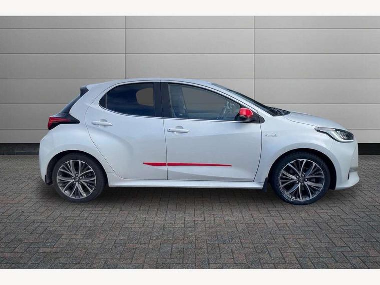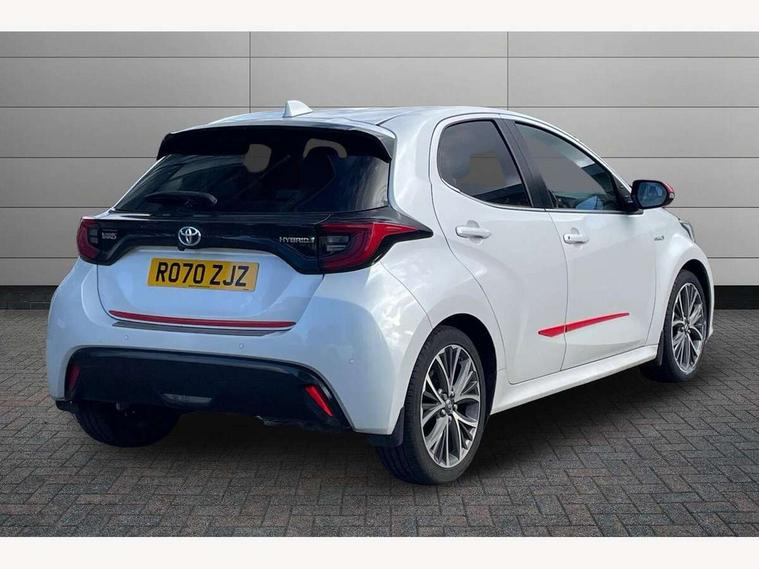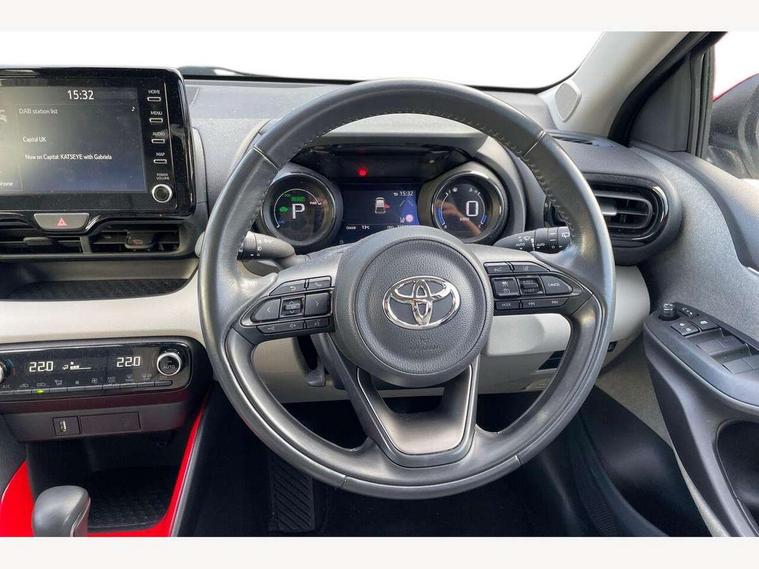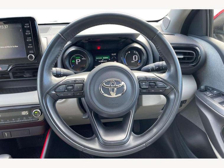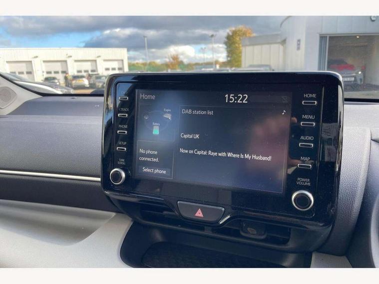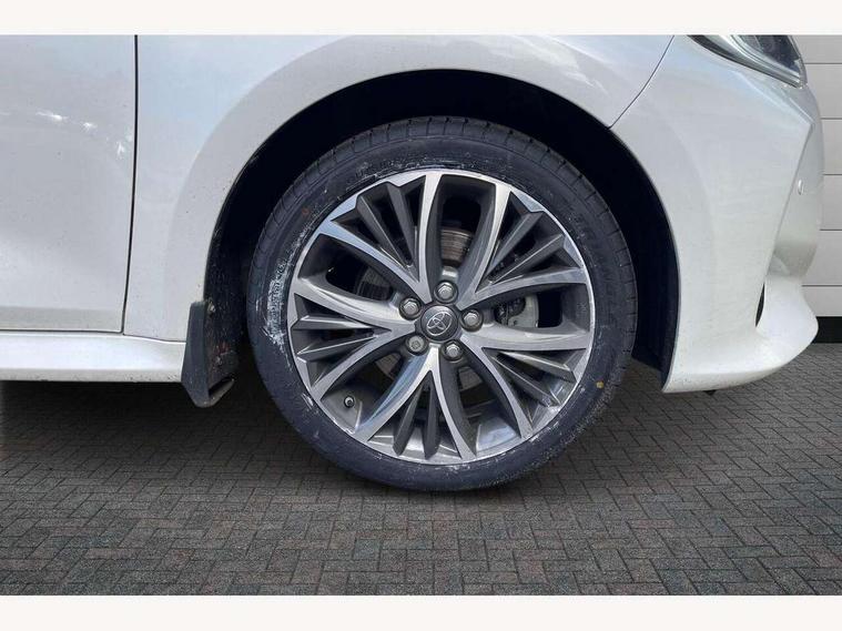 Adaptive cruise control, Adjustable speed limit with speed warning, Blind spot monitoring, Bluetooth connectivity, Colour binocular inspired displays with digital speedometer, E-call, Electric power steering, Front and rear parking sensors with intelligent clearance sonar and automatic braking, Hybrid energy display, Multi information display switches on steering wheel, Reversing camera, Smartphone integration with Apple CarPlay and Android auto, Vehicle Stability Control (VSC), 6 speakers, 8" Multimedia display touch screen, USB connection, Acoustic windscreen glass, Auto windscreen wipers, Automatic headlights, Automatically retractable door mirrors, Body coloured door mirrors, Electric adjustable heated door mirrors, Follow me home headlights, Front auto power windows with anti jam protection, Full LED rear lights, LED daytime running lights, LED front fog lights, LED Headlights, LED High mounted stop lamp, Painted front grille, Rear auto power windows with anti jam protection, Rear privacy glass, Rear spoiler, Satin lower front grille, Shark fin antenna, Turning signal integrated indicators in door mirrors, 3 adjustable rear headrests, 3 spoke leather steering wheel, 60/40 split folding rear seat, Active headrests, Adjustable boot height, Coat hooks in rear grab handles, Cup holders (2 front & door), Data Communication Module (DCM) connected services, Dual zone automatic air conditioning, Fabric seat with partial synthetic leather upholstery, Front armrest, Front sport seats, Glovebox, Height adjustable driver's seat, Height adjustable passenger seat, Isofix seat fixing, Leather gearshift, Map pockets on the backs of the front seats, Pollen filter, Shopping bag hooks, Tilt/telescopic steering column, 3 point seatbelts on all rear seats, ABS+EBD+Brake assist, Electronic parking brake, Emergency brake light system (EBS), Front passenger airbag on/off switch, Front seatbelt reminder, Hill start assist control (HAC), Rear child proof door locks, Rear seat belt reminder, Supplemental Restraint System (SRS) 8 airbags: Driver & passenger's airbags, dual side curtain airbags, side impact airbags, front centre airbag, Toyota Safety Sense 2, Precollison + Night time Pedestrian & Cyclist Detection, Lane Trace Assist, Auto High Beam, Intelligent ACC & Road Sign Assist, Tyre pressure warning system, Alarm/immobiliser, Keyless smart entry with push button start, Remote powered central double locking doors, Satin chrome interior styling, Soft touch instrument panel, Space saver spare wheel,