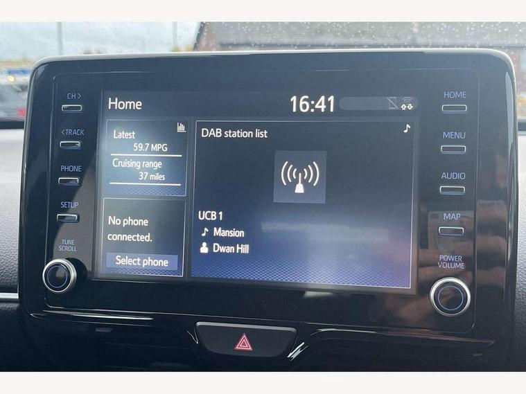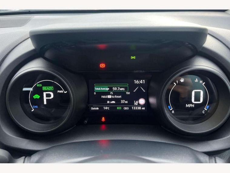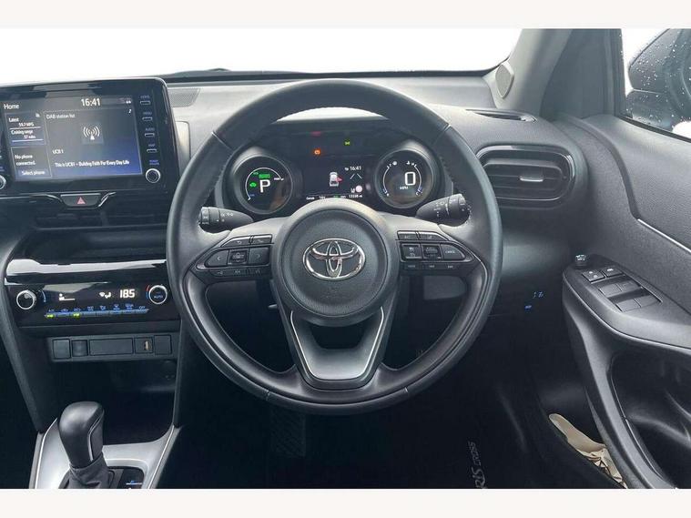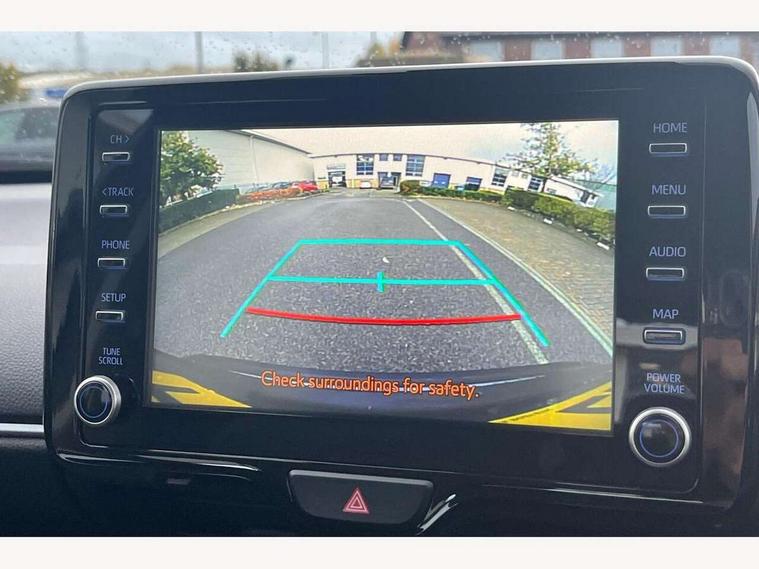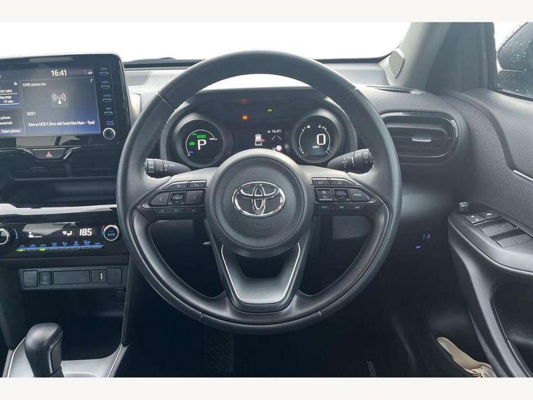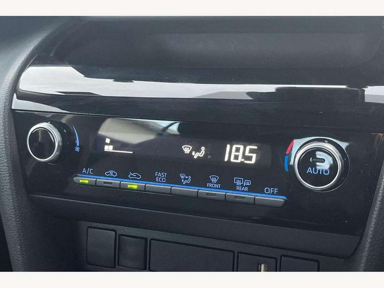 4.2" multi information display, 8" Toyota touch 2 multimedia system with Smartphone integration with Apple CarPlay and Android auto, Adjustable speed limiter, Bluetooth connectivity, Digital speedometer, Driver attention alert system, eCall emergency system, Electric power steering, Full range intelligent adaptive cruise control, Hybrid system indicator, Key reminder warning, Lane trace assist, Multimedia, audio, telephone and voice recognition switches on steering wheel, My T Connected services, Pre-collision system enhanced with emergency steering assist, Reversing camera, Road sign assist - RSA, Steering assisted vehicle stability control, 6 speakers, DAB Digital radio, USB connection, 3rd brake light, Acoustic windscreen glass, Anti-jam protection on power windows, Auto high beam [AHB] with on/off switch, Automatic headlights, Black lower front grille, Black Shark-fin antenna, Black upper front grille, Black wheel arch mouldings, Body colour door handles, Body colour front bumper, Body colour rear bumper, Electric adjustable heated door mirrors, Follow me home headlights, Front and rear electric windows with auto up/down function, Front intermittent wipers, Halogen projector headlights, Headlight cut off reminder, Indicators integrated on door mirrors, Intermittent rear wiper, LED daytime running lights, LED Indicators, Manual headlight levelling, Manually retractable door mirrors, Noise reduction layer on windscreen, Rain sensor, Rear side wing doors, Rear spoiler, Rear window defogger, 12v power outlet - front, 2x Rear coat hooks, 3 seat bench in 2nd row, 3 spoke leather steering wheel, 60/40 split folding rear seat, Adjustable speed limiter switch on steering wheel, Auto air conditioning, Boot light, Central armrest, Driver and front passenger personal lights, Fabric door trim, Fabric upholstery, Front console box, Front cup holders, Front head restraints, Glovebox, Grey roof lining, Height adjustable driver's seat, Height adjustable front passenger seat, ISOFIX child restraint system, Lane departure alert switch on steering control, Leather gearshift, Manual telescopic and tilting steering wheel, Mirror on driver and passenger sun visor, Pollen air filter, Rear head restraints, Single front passenger seat, Soft tonneau cover, 3x3 point rear seat belts, ABS+EBD+Brake assist, Driver and passenger central airbags, Driver and passenger front airbags, Driver and passenger side airbags, Electronic parking brake, Emergency brake light system (EBS), Front seat belt reminder, Hill start assist control (HAC), Passenger airbag on/off switch, Pre-collision system with pedestrian and cyclist detection, Rear door child safety locks, Rear passenger side airbags, Rear seat belt reminder, Traction control, Tyre pressure warning system, Immobiliser, Intrusion alarm, Keyless smart entry with push button start, Power door locks, Power passenger window lock, Remote door lock, 16" 10 spoke alloy wheels, Tyre repair kit,