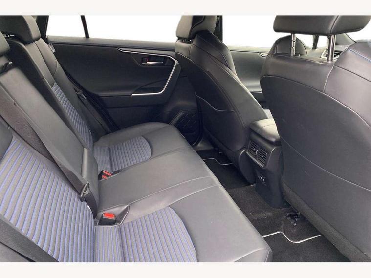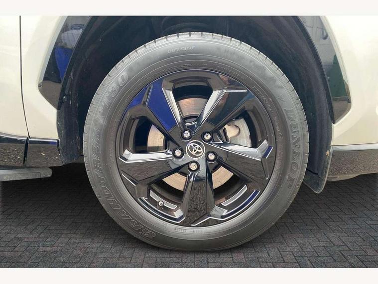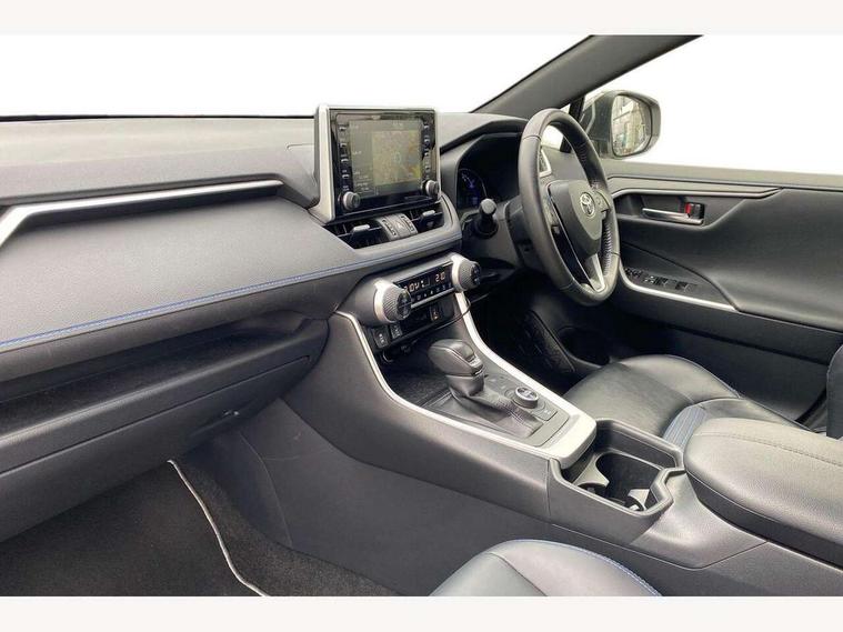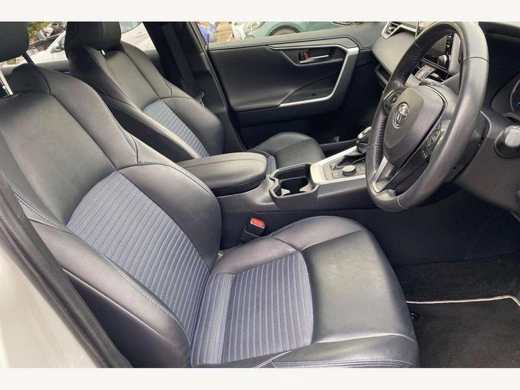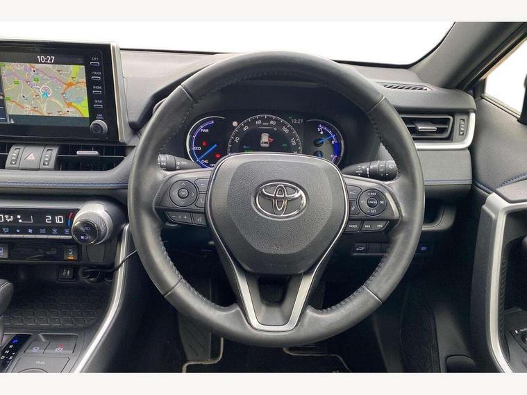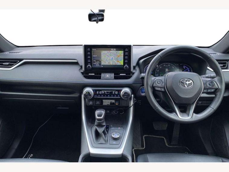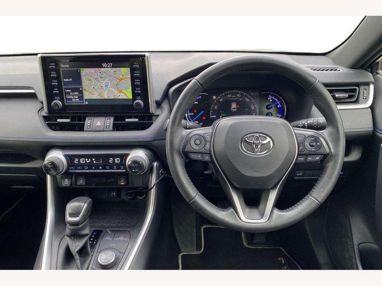 7" colour TFT display, Adaptive cruise control with lane trace assist, Adjustable speed limiter, Blind spot monitoring with rear cross traffic alert, Bluetooth system, Cyclist Detection, Drive mode selector, eCall emergency call system, ECO-driving indicator, Electric power steering, Hybrid system indicator, Lane departure warning system, Lights on warning, Night Time Pedestrian Detection, Pedestrial detection, Power boot opening and closing, Rear parking camera, Rear parking sensors, Remote boot door release in cabin, Tachometer, Touch 2 Go navigation system including 3D maps and voice control, Traffic sign recognition, Trip computer, Voice control system, Vehicle Stability Control (VSC), 6 speakers, 8" Multimedia display touch screen, Auxiliary socket for external MP3 player, DAB audio, Steering wheel mounted audio controls, Toyota touch media system, USB connection, Auto dimming interior mirror, Auto high beam, Automatic headlamp levelling, Automatic headlights, Automatically retractable door mirrors, Bi-tone black roof, Black door mirrors, Black rear spoiler, Black roof rails, Black Shark-fin antenna, Body colour door handles, Body coloured bumpers, Door mirror puddle lights, Electric adjustable door mirrors, Emergency brake-light signal (EBS), Follow me home headlights, Front fog lights, Gloss black front bumper insert, Gloss black rear bumper insert, Headlight cleaners, Heated door mirrors, LED daytime running lights, LED High mounted stop lamp, LED rear lights, Meshed upper front grille, Power front windows, Power rear windows, Privacy glass, Projector LED headlights, Rear screen wiper - intermittent, Rear windscreen defogger, Silver front under-run, Silver rear under-run, Trailer sway control, Turning signal integrated indicators in door mirrors, 3 rear headrests, 60/40 split fold rear seat back, Black roof lining, Boot light, Clean air filter, Driver and front passenger personal light, Driver and front passenger Whiplash Injury Lessening seats, Driver and passenger sunvisors with illuminated vanity mirrors, Dual sided deck board in boot, Dual zone automatic air conditioning, Floor mats, Folding rear centre armrest, Front and rear bottle holders, Front centre armrest, Front footwell lights, Front headrests, Front seat and rear pockets, Front sport seats, Front/rear roof mounted assist grips, Heated driver and front passenger seats, Isofix child seat preparation, Leather gear shift with chrome surround, Light blue ambient lighting on front cupholders and open tray, Manual telescopic and tilt 3-spoke leather steering wheel with Chrome insert, Manually reclining and sliding front passenger seat, Pollen filter, Power height-adjustable sliding reclining and lumbar support for driver seat, Rear coat hooks, Rear door armrests, Rear passenger air vents, Reclining rear seats, Satin chrome interior door handles, Sunglasses holder, Synthetic leather upholstery, Parking pack - Rav4, 3x3 point rear seatbelts, ABS/EBD, Adjustable front driver and passenger seat belt extender, Brake assist function, Child proof door locks, Collision mitigation braking system, Driver/Front Passenger airbags, Driver/front passenger side airbags, Drivers knee airbag, Electronic parking brake, Electronic Stability Programme (ESP), Emergency brake light system (EBS), Front and rear curtain airbags, Front and rear seatbelt reminder, Hill start assist, Passenger airbag cut-off device, Seatbelt pretensioners with load limiters, Traction control, Tyre pressure warning, Alarm/immobiliser, Glass-breaking alarm sensors, Light - on and Key in reminder, Remote central locking, Smart entry + Smart start, Speed sensitive auto door locking, Tilt detection sensors, Piano black centre console with silver insert, Soft-touch black lower dashboard, Soft-touch black upper dashboard with silver insert, Full size spare wheel,