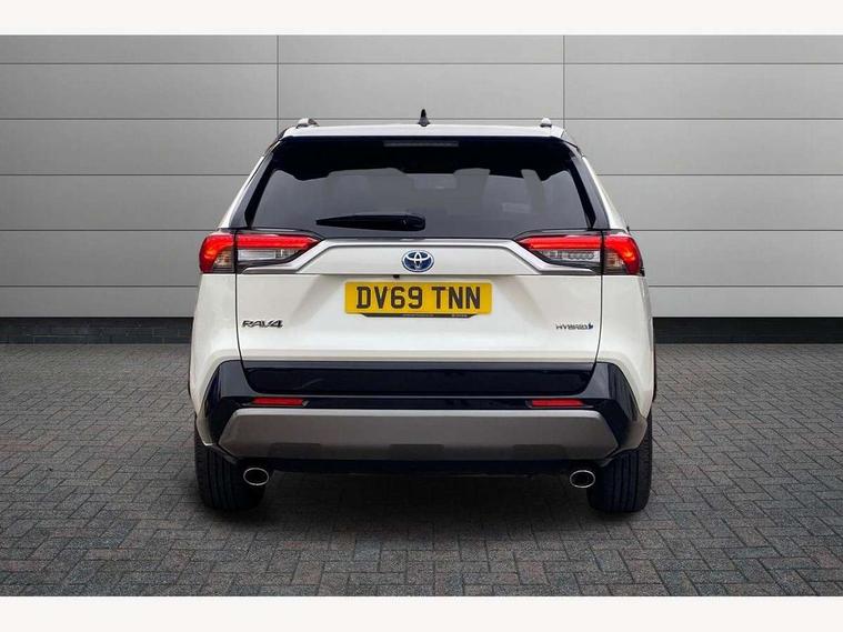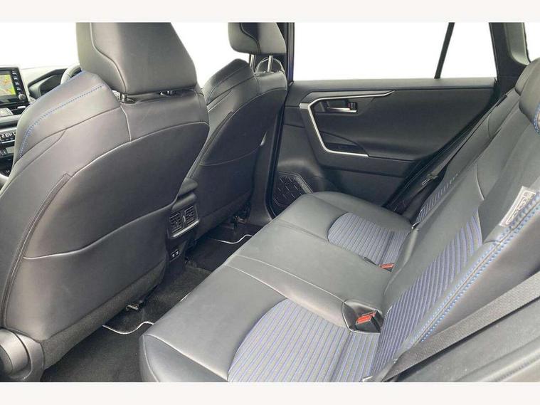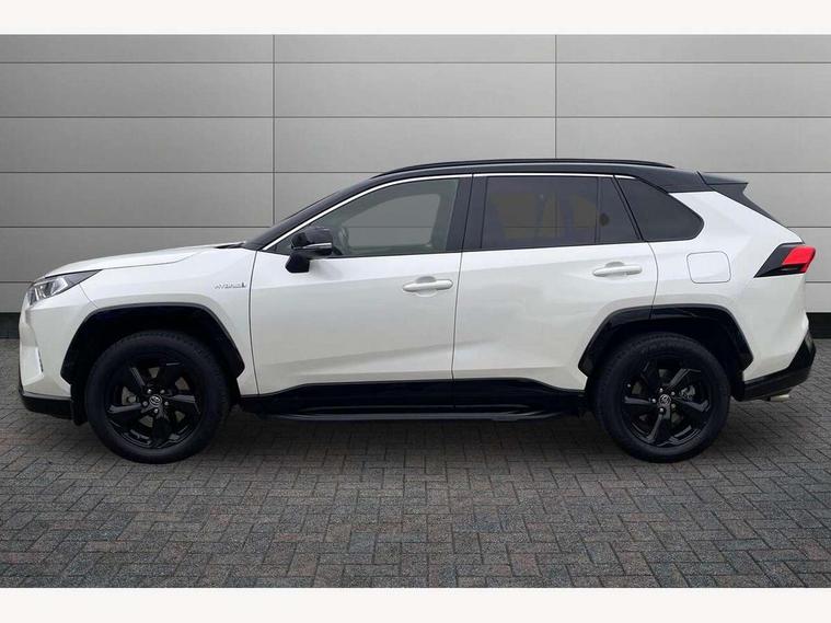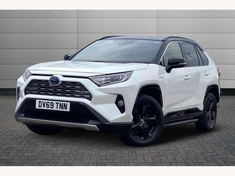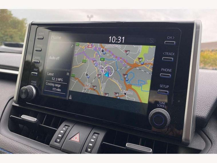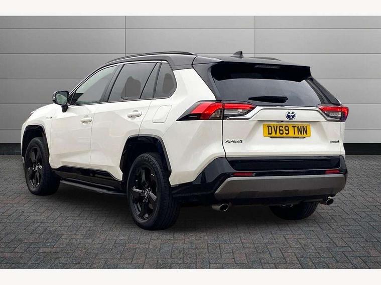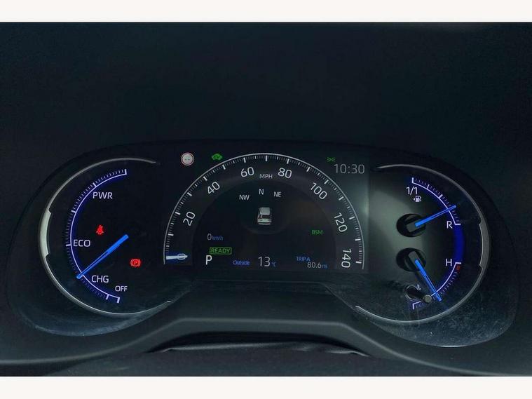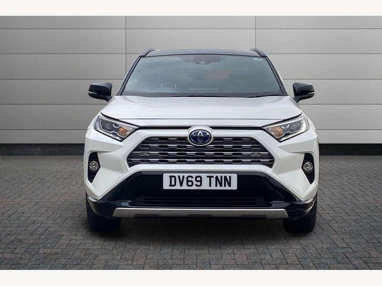 7" colour TFT display, Adaptive cruise control with lane trace assist, Adjustable speed limiter, Blind spot monitoring with rear cross traffic alert, Bluetooth system, Cyclist Detection, Drive mode selector, eCall emergency call system, ECO-driving indicator, Electric power steering, Hybrid system indicator, Lane departure warning system, Lights on warning, Night Time Pedestrian Detection, Pedestrial detection, Power boot opening and closing, Rear parking camera, Rear parking sensors, Remote boot door release in cabin, Tachometer, Touch 2 Go navigation system including 3D maps and voice control, Traffic sign recognition, Trip computer, Voice control system, Vehicle Stability Control (VSC), 6 speakers, 8" Multimedia display touch screen, Auxiliary socket for external MP3 player, DAB audio, Steering wheel mounted audio controls, Toyota touch media system, USB connection, Auto dimming interior mirror, Auto high beam, Automatic headlamp levelling, Automatic headlights, Automatically retractable door mirrors, Bi-tone black roof, Black door mirrors, Black rear spoiler, Black roof rails, Black Shark-fin antenna, Body colour door handles, Body coloured bumpers, Door mirror puddle lights, Electric adjustable door mirrors, Emergency brake-light signal (EBS), Follow me home headlights, Front fog lights, Gloss black front bumper insert, Gloss black rear bumper insert, Headlight cleaners, Heated door mirrors, LED daytime running lights, LED High mounted stop lamp, LED rear lights, Meshed upper front grille, Power front windows, Power rear windows, Privacy glass, Projector LED headlights, Rear screen wiper - intermittent, Rear windscreen defogger, Silver front under-run, Silver rear under-run, Trailer sway control, Turning signal integrated indicators in door mirrors, 3 rear headrests, 60/40 split fold rear seat back, Black roof lining, Boot light, Clean air filter, Driver and front passenger personal light, Driver and front passenger Whiplash Injury Lessening seats, Driver and passenger sunvisors with illuminated vanity mirrors, Dual sided deck board in boot, Dual zone automatic air conditioning, Floor mats, Folding rear centre armrest, Front and rear bottle holders, Front centre armrest, Front footwell lights, Front headrests, Front seat and rear pockets, Front sport seats, Front/rear roof mounted assist grips, Heated driver and front passenger seats, Isofix child seat preparation, Leather gear shift with chrome surround, Light blue ambient lighting on front cupholders and open tray, Manual telescopic and tilt 3-spoke leather steering wheel with Chrome insert, Manually reclining and sliding front passenger seat, Pollen filter, Power height-adjustable sliding reclining and lumbar support for driver seat, Rear coat hooks, Rear door armrests, Rear passenger air vents, Reclining rear seats, Satin chrome interior door handles, Sunglasses holder, Synthetic leather upholstery, Parking pack - Rav4, 3x3 point rear seatbelts, ABS/EBD, Adjustable front driver and passenger seat belt extender, Brake assist function, Child proof door locks, Collision mitigation braking system, Driver/Front Passenger airbags, Driver/front passenger side airbags, Drivers knee airbag, Electronic parking brake, Electronic Stability Programme (ESP), Emergency brake light system (EBS), Front and rear curtain airbags, Front and rear seatbelt reminder, Hill start assist, Passenger airbag cut-off device, Seatbelt pretensioners with load limiters, Traction control, Tyre pressure warning, Alarm/immobiliser, Glass-breaking alarm sensors, Light - on and Key in reminder, Remote central locking, Smart entry + Smart start, Speed sensitive auto door locking, Tilt detection sensors, Piano black centre console with silver insert, Soft-touch black lower dashboard, Soft-touch black upper dashboard with silver insert, Full size spare wheel,