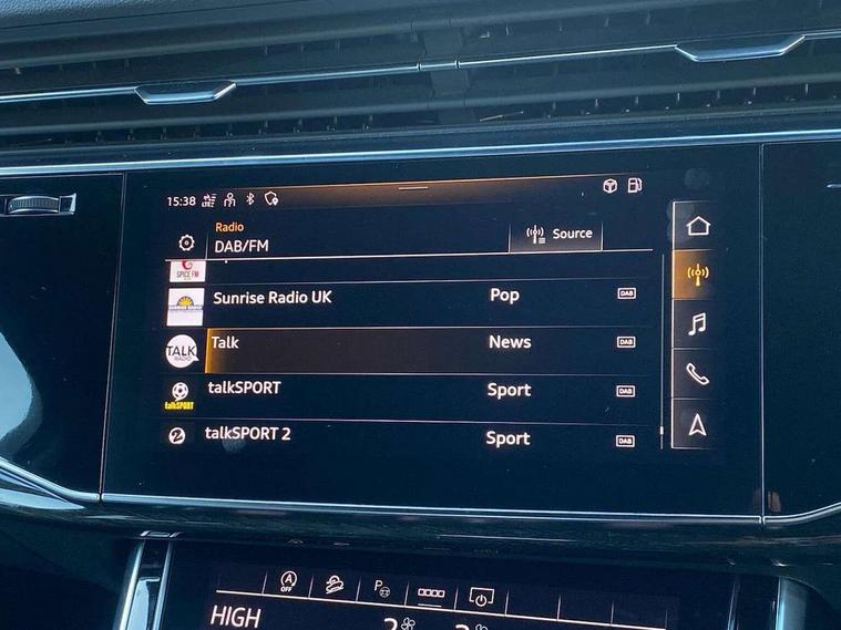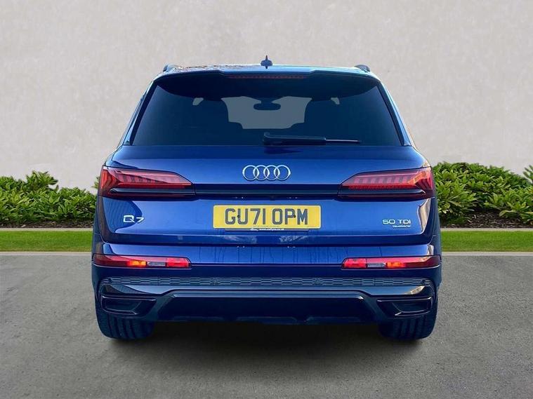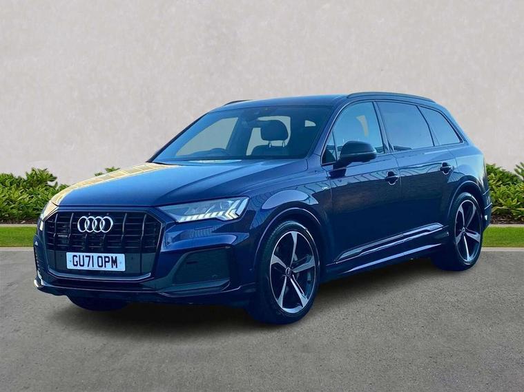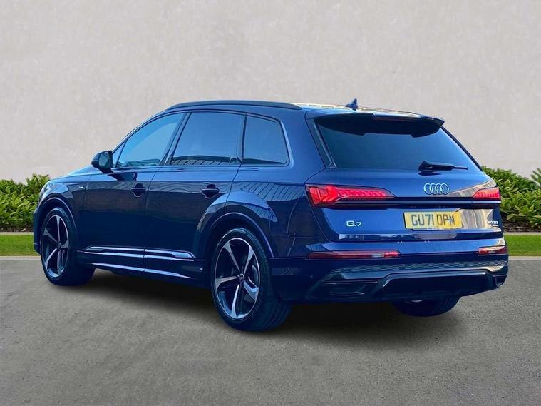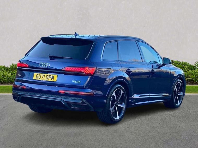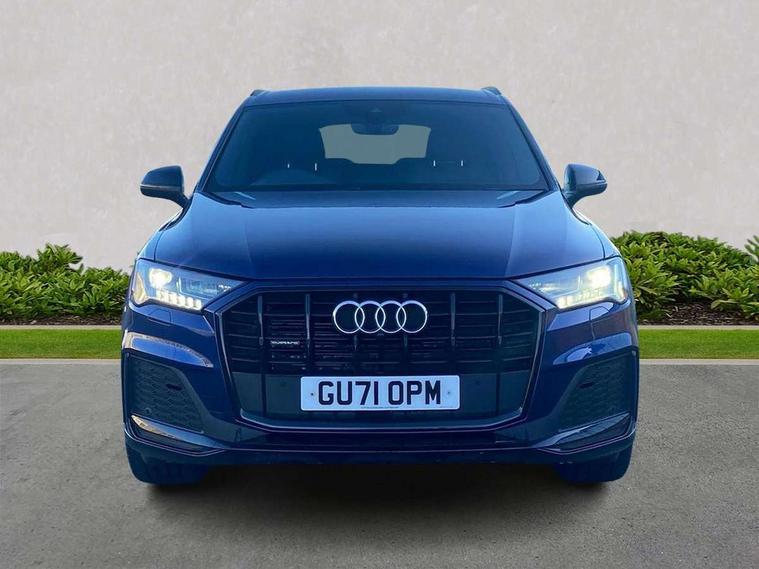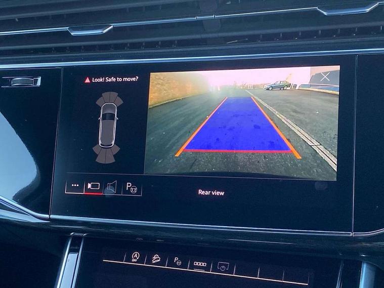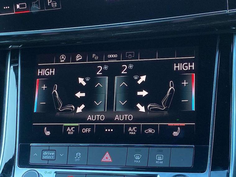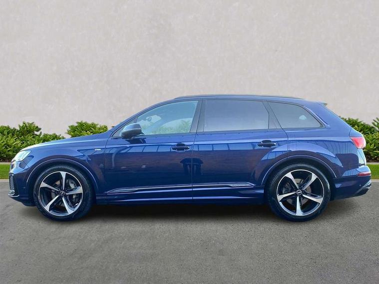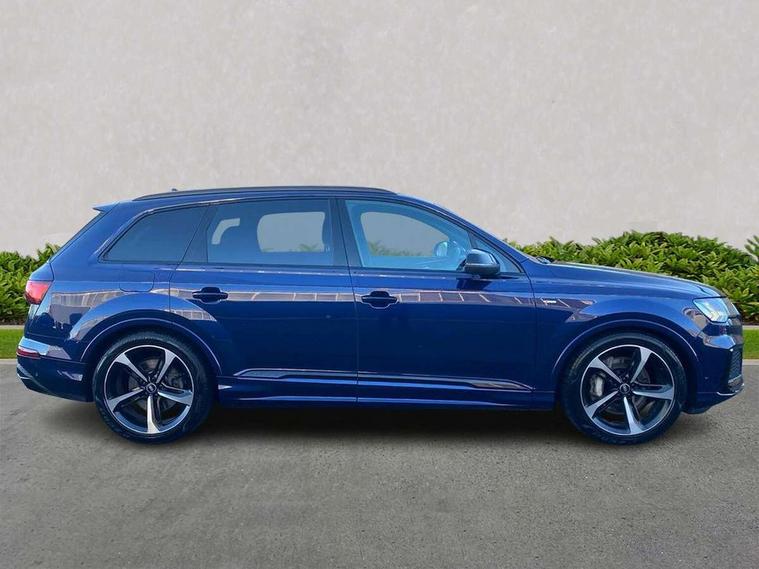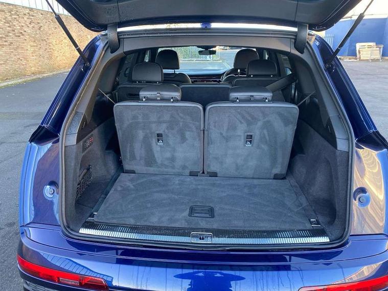 Audi connect safety and service (e-call), Audi connect with Amazon Alexa Integration, Audi drive select (Auto, Comfort, Dynamic, Efficiency, Individual, Off-road and All road), Audi smartphone interface includes wireless Apple carplay/Android Auto, Bluetooth interface, Camera based traffic sign recognition, Electromechanical steering, MMI navigation plus with MMI touch screens includes 10.1" and 8.6" screens with haptic feedback, Natural voice recognition, Parking system plus with 360 degree display (front, rear and side sensors) - acoustic and visual park assist system, Power operated tailgate, Rear view camera, Start/stop system, 48V Mild hybrid technology, Adaptive air sports suspension, Quattro all wheel drive with self locking centre differential, Audi music interface - front 2 USB-C ports with charger and data functions, Audi sound system with 6 channel amplifier, 180 watt amplifying capacity and 10 loudspeakers including subwoofer, DAB digital radio module, 3rd brake light, Audi matrix LED headlights with dynamic front and rear indicators, Auto dimming frameless rear view mirror, Black roof rails, Bumpers in contrast paint scandium grey finish includes door trim and wheel arch trim strips, inlays in door strip contain quattro embossing, Electrically adj heated/folding + automatically dimming exterior mirrors with memory + automatic kerb side function for passenger side exterior mirror, Heat insulating glass in windshield, Integrated LED indications in door mirrors, LED daytime running lights, LED rear tail lights, Privacy glass - dark tinted rear and rear side windows from B-pillar backwards, Rear side wing doors, Rear wiper, 2 seat bench in 3rd row, 3 seat bench in 2nd row, 4 zone deluxe automatic climate control, 7 seat layout with ISOFIX points for the front passenger seat and rear passenger seat, Black cloth headlining, Comfort front centre armrest, Electric adjustable front seat with 4 way lumbar support, driver memory functionality, Folding rear seats, Front head restraints, Front/rear floor mats, Heated front seats, Illuminated door sill trims with S logo, LED interior ambient lighting, Luggage compartment cover, Luggage compartment sill protection in stainless steel, Rear head restraints, Single front passenger seat, Stainless steel pedals, Sunvisors with illuminated vanity mirrors, Titanium black styling pack - Q7/SQ7, 3 point seatbelts on all rear seats, Audi pre sense front, Child locks on rear doors, Driver and front passenger, front side and curtain airbags, Electromechanical parking brake, Electronic Stabilisation Control (ESC) including ABS, ASR and EDL, Extended pedestrian protection measures, Hill hold assist, Seatbelt monitoring, Tyre pressure loss indicator, Warning triangle and first aid kit, Anti theft alarm, Anti-theft wheel bolts and wheel loosening detection, Keyless Go, Remote central locking, Polished oak trim with grey finish inlay, Tool kit, Tyre repair kit,