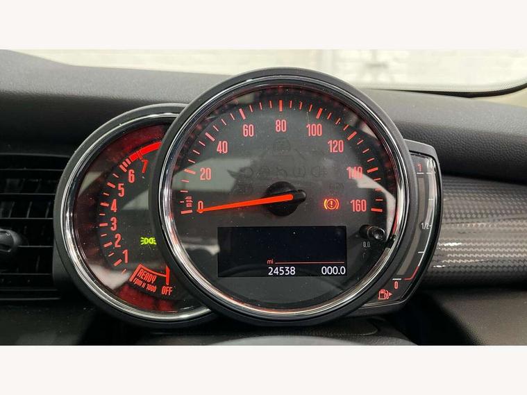 Acoustic seat-belt warning, Basic bluetooth function with USB audio, Brake fluid level warning light, Brake pad wear indicator warning light, DTC - Dynamic traction control, Exterior temperature gauge, Intelligent emergency call, MINI TeleServices, Oil level indicator, On board computer, Push button starter, Service interval indicator, Servotronic PAS, Electronic differential lock, Auxiliary input socket, DAB digital radio module, 2 speed wipers+intermittent wipe, Anti dazzle mirror, Anti trapping/one touch open close front windows, Body coloured bumpers, Chrome bezels around rear lights and headlights, Chrome door handles, Chrome exhaust tailpipe, Chrome grille surround, Chrome plated trim on bottom edge of window, Chrome strip on lower grille, Electric front windows, Electric rear windows, Electrically adjustable door mirrors, Flared wheel arches, Follow me home headlights, Green tinted heat insulating glass, Heated door mirrors/heated windscreen washers, Heated rear window with auto timer, High gloss black tailgate, LED fog lights, LED rear lights, Rear wiper, Side scuttles, White indicator lights, 2 rear head restraints, 4 boot load lashing points, 4 way manually adjustable passenger seat with height, reach, tilt, backrest and headrest, 6-way manually adjustable driver's seat, Active carbon filter, Adjustable front seats backrest, Air recirculation system, Auxiliary socket in centre console storage compartment, Centre console storage, Driver's seat height adjuster, Driver/passenger sunvisors, Easy entry seats, Front and rear cupholders, Front head restraints, Front passenger grab handle, Gear/selector and handbrake in artificial leather, Internal chrome door handles, Isofix child seat preparation, Luggage compartment lighting, Multifunction steering wheel, Reach + rake adjustable steering column, Rear grab handles, Rear storage trays, Split folding rear seats, Storage compartments in doors, Toolkit in luggage compartment, 3 point seatbelts, 3x3 point rear seatbelts, ABS/EBD, ASC+T, Cornering brake control (CBC), Crash Sensor - activates hazard/interior lighting + unlocks doors, Driver and passenger airbags, Driver/front passenger side airbags, DSC - Dynamic Stability Control, Fuel cut off safety device, Head airbags, Hill start assist, Passenger airbag deactivation system, Seatbelt pretensioners, Tyre pressure warning, Ventilated front disc brakes, Drive away door locking, Locking wheel bolts, Remote central locking/doors+fuel cap+tailgate, Second remote key, Thatcham category 1 alarm + immobiliser,
