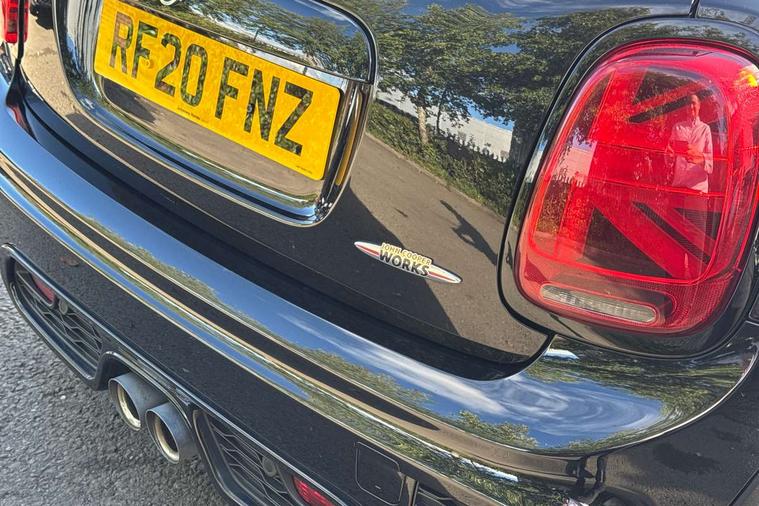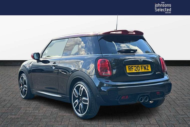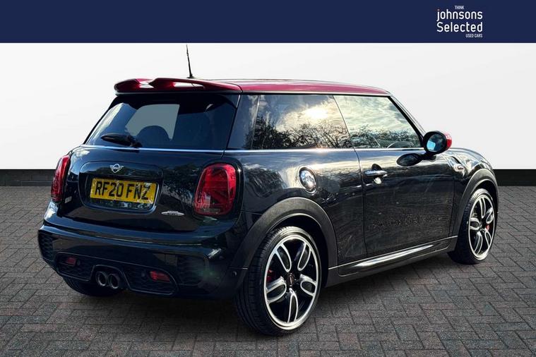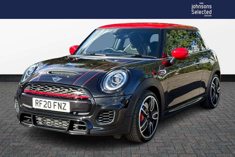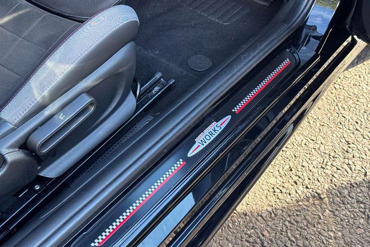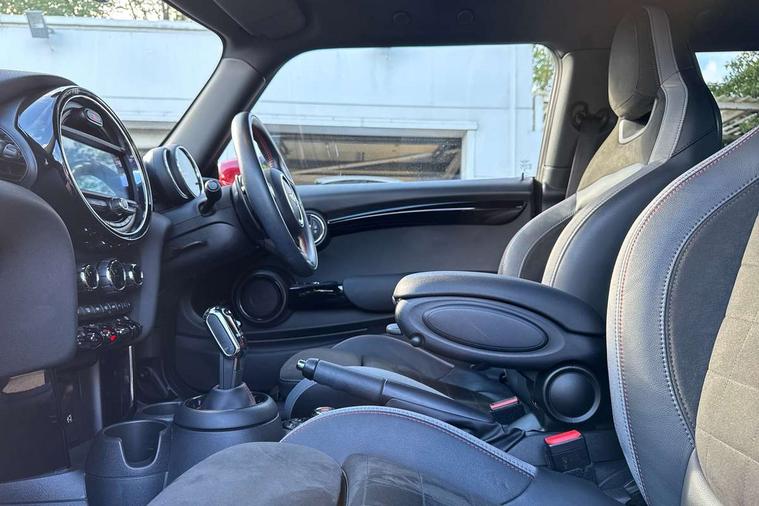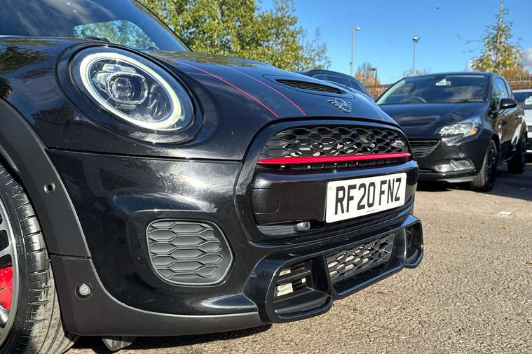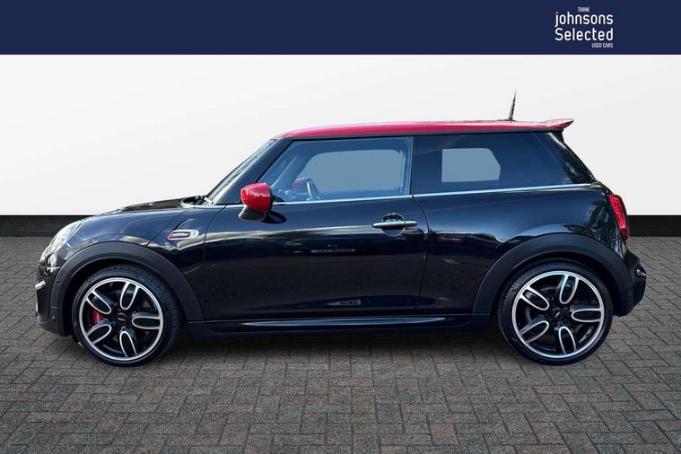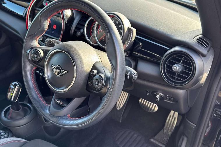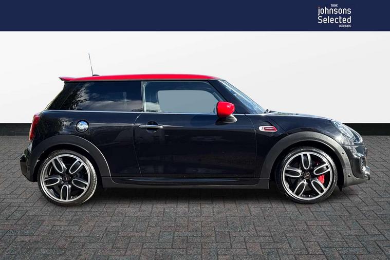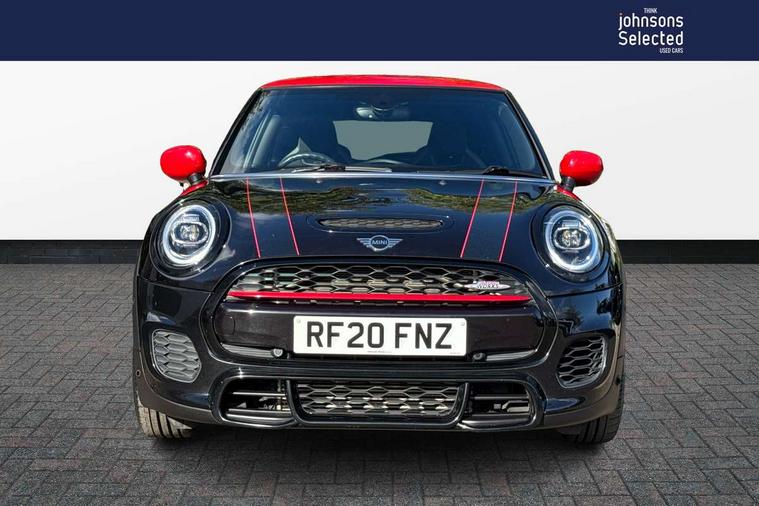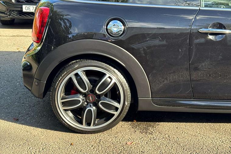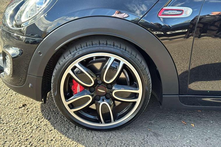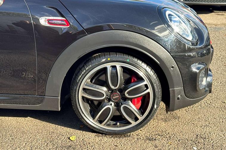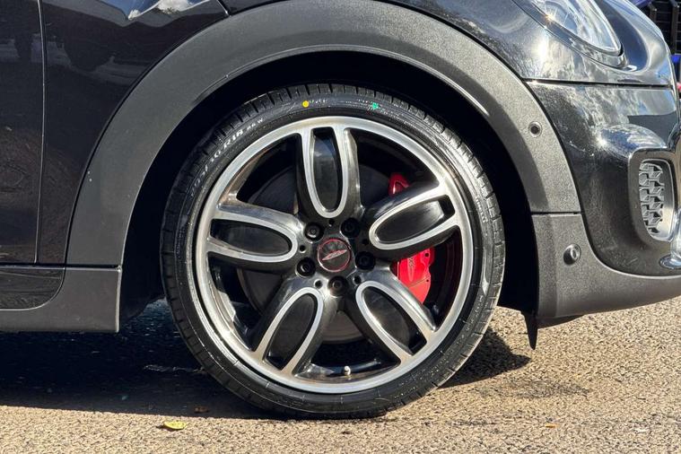 Automatic start/stop function with brake energy recuperation, Compatible mobile phone bluetooth with audio streaming, Electro-mechanical speed dependant steering assistance, Instrument cluster, MINI Driving Modes - centre toggle switch to control driving setting (sport, mid and green), Mini E-call, MINI TeleServices, On board computer, Service interval indicator, Double Vanos system, Eight speed steptronic sport transmission, with gearshift paddles, Fully variable valve control, Gear change indicator display, High precision injection, Performance Control, 6.5" touchscreen with LED ring, FM tuner and DAB digital radio, Automatic headlight activation switch, Bonnet scoop, Chrome door handles, Chrome plated fuel cap, Dynamic brake lights, Electric front+rear windows, Heated rear window, Heated windscreen washer jets, John Cooper Works - aerodynamic kit (front and rear apron, spoiler), front and rear sport bumpers and part-painted side sills with door sill finishers, John Cooper Works rear spoiler, LED headlight with closed ring and daytime driving lights, Metal look door sill finishers, Piano black border radiator grille with honeycomb structure in black matt and John Cooper Works logo with upper individual grille strut in chilli red, Piano black exterior, Rain sensor window wipers, Rear fog lights, Rear LED lights with union jack design, Rear window wiper, Side scuttle with MINI John Cooper Works logo in black high-gloss with red border, Sun/heat protection glass, Two central exhaust tailpipes with chrome finisher, White indicator lenses, 12V Accessory socket in centre console, 4 lashing eyes in luggage compartment, 60/40 split folding rear seat, Carbon Black colour line, knee roll and door armrests, Chrome interior highlights, Cupholders, Front and rear head restraints, Front and rear isofix with front passenger airbag deactivation, Glove compartment, Height and length steering column adjustment, Interior lighting with 12 basic colours selectable via toggle switch in roof, Internal chrome door handles, John Cooper Works Logo in seat, John Cooper Works sport leather steering wheel, Leather gearshift lever and handbrake gaiters, LED reading lights, vanity mirror lights, front foot well light and spotlight on front seats, Manual air conditioning, Mechanical seat adjustment, driver seat height adjust, forward/back and front seats backrest, Mini logo projection on floor from drivers exterior mirror, Multifunction steering wheel, Stainless steel pedals with rubber inserts, Storage compartments in doors, Sunvisors with vanity mirrors, 17" front sport brake with 4 piston fixed calliper, 3 point seatbelts on all four seats, 6 Airbags - front, side, head and seat belt tensioners, Anti-lock braking system (ABS), DSC - Dynamic Stability Control, Front and rear disc brakes, Hill start assist, Red brake callipers with John Cooper Works logo, Two tone horn, Tyre pressure monitoring system, Alarm system with tilt sensor, monitoring doors, bonnet interior and tailgate, Electronic vehicle immobiliser, Start/stop toggle with keyless go, Tool kit,