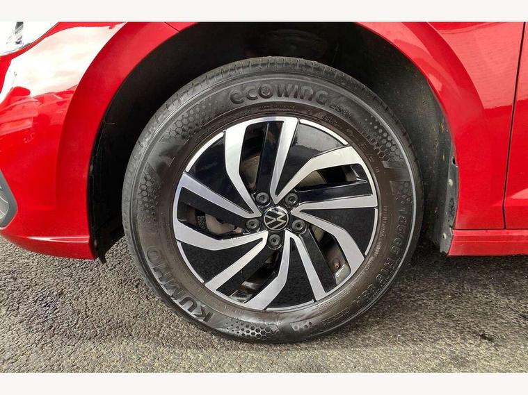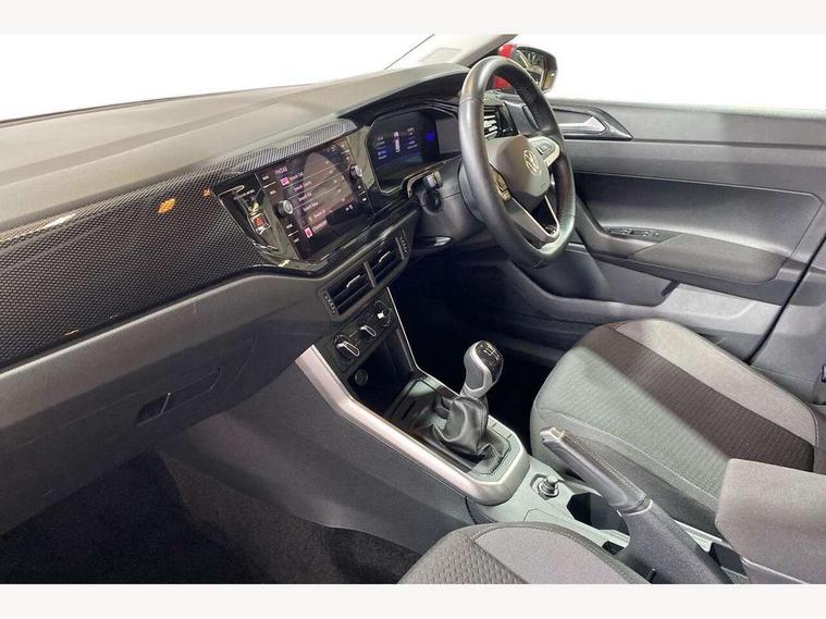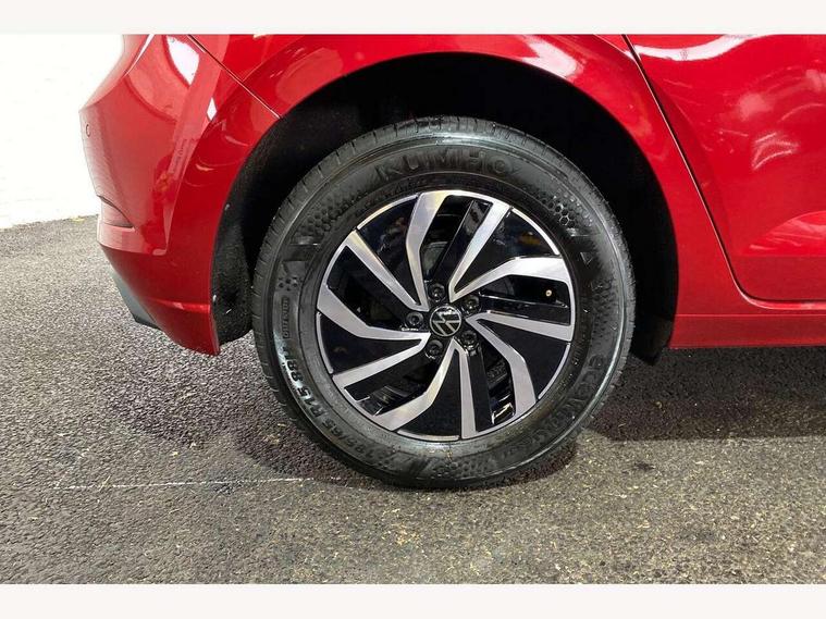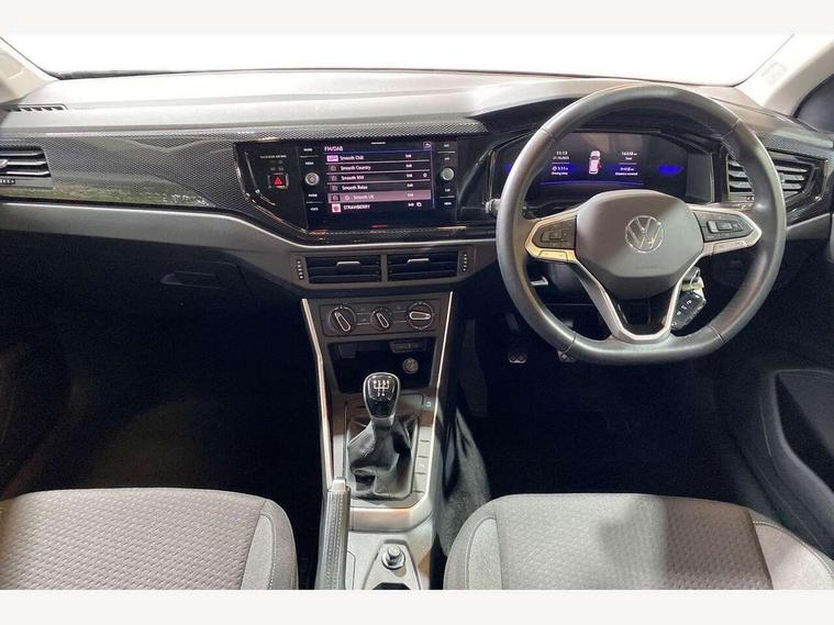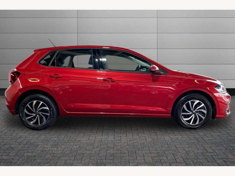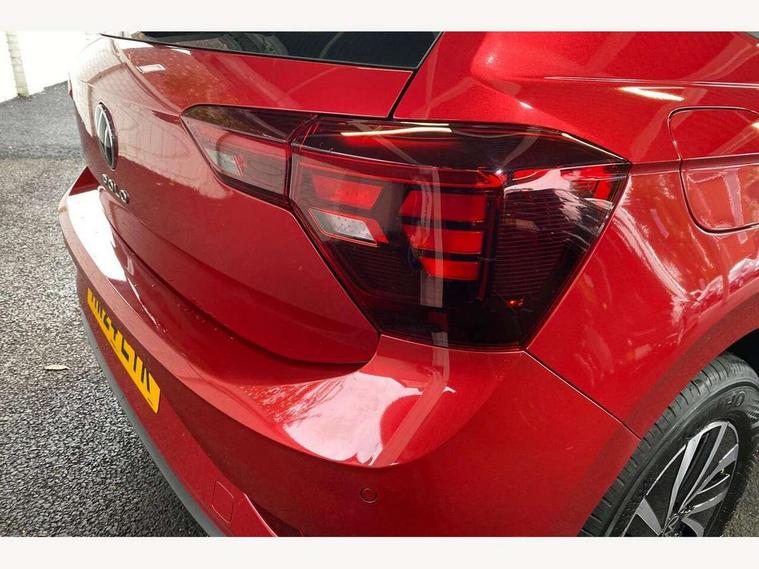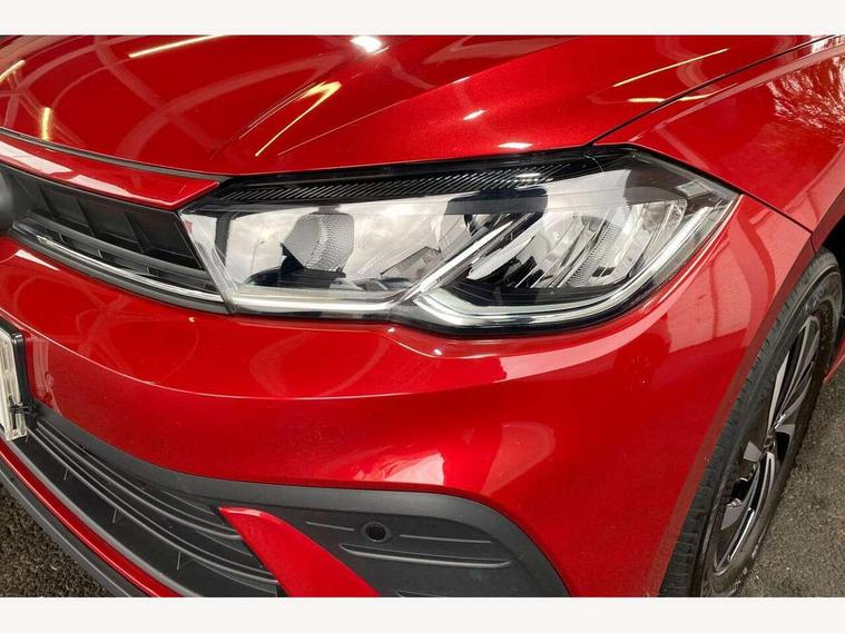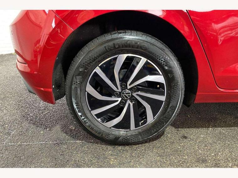 Adaptive cruise control without follow-to-stop and speed limiter, Advanced driver attention and drowsiness monitor, Bluetooth mobile phone interface, Dynamic road sign display, Emergency call service, Power assisted speed sensitive steering, Preparation for navigation system with media and internet package, Preparation for We connect and We connect plus, Speedo and rev counter, electronic odometer, trip, service interval display and exterior temperature gauge, Standard rear axle, Travel Assist - Lane keeping system and traffic jam assist, Travel assist including emergency assist, Trip computer, Warning signal and warning light for front and rear seatbelts not fastened, Washer fluid level indicator, Wireless app connect, Front wheel drive, Rear shock absorpion, Start-stop system with battery regeneration (recuperation - energy recovery during braking), DAB Digital radio, Diversity antenna for FM reception, Front and rear 6 speakers, Automatic dimming interior rear view mirror, Automatic headlight control with LED separate daytime running lights with coming/leaving home function, Body colour bumpers with chrome inserts, Body colour door handles, Body colour door mirrors, Electric front windows, Engine badge deletion, Headlight range adjustment, Heat insulating and laminated safety glass windshield, Heat insulating darkened glass in side and rear windows, Heat insulating glass windscreen, LED Headlights, LED rear combination lamps, Power folding adjustable/heated exterior mirrors and front passenger exterior mirror lowering function, Rain sensor, Rear electric windows, Rear fog light, Rear side wing doors, Rear windscreen washer and wiper with interval delay, Third brake light, 12V power socket in centre console, 2 front and 2 rear reading lights with switch off delay and dimmer, 2 USB-C ports in the front, 2 USB-C charging sockets on the center console in the rear, 3 rear head restraints, 60/40 split folding rear seat and rear seat bench not split, Ceramique roof lining, Chrome plated radiator grille inserts, air vent surrounds and light switch surrounds, Door and side trim panel, Driver and front passenger seat height adjustment, Driver/passenger sunvisors with illuminated vanity mirrors, Front centre armrest, Front seat backrest storage pockets, Front standard seats, Handbrake lever handle in leather, Hartley/Thomas cloth upholstery, Headliner in recycled material, Isofix child seat preparation easy-fit (for two outer rear seats, and front passenger seat) compatible with I-size, Leather trimmed gear knob, Luggage compartment cover, Luggage compartment lighting, Removable luggage compartment floor, Single front passenger seat, Standard climatic zones, Standard pedal cluster, Three spoke leather wrapped multifunction steering wheel, Light and vision pack - Polo, 3 point height adj front seatbelts + pretensioners, 3x3 point rear seatbelts, ABS, Driver and front passenger airbag with front passenger airbag deactivation, Drivers and front passengers safety optimised head restraints, ESC (Electronic stability control) + EDL (Electronic Differntial lock) and ASR (Traction control), Extended and predictive pedestrian/ cyclist protection, Front assist with autonomous emergency braking (for Adaptive Cruise Control ACC up to 130 mph), Front curtain and side airbags with center airbag, Front disc brakes, Hill hold control, Manual child lock in rear doors, Rear drum brakes, Single tone horn, Tyre pressure loss indicator, Alarm with interior protection, Anti-theft alarm system with interior monitoring, backup horn, and towing protection, Anti-theft wheel bolts, Electronic engine immobiliser, Lava stone black gloss/matt decorative inserts in dash and front door panels, Low rolling resistance tyres,