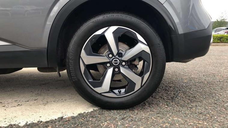 Android auto/Apple CarPlay (Wired), Blind spot warning, Drive modes (sport, normal, eco), Electric speed sensitive power steering, Emergency and breakdown call, Full Digital 12.3" TFT Digital Combimeter, Google maps services - search, weather, 3D maps and Google street view, Idle stop/start system, Intelligent around view monitor, Intelligent Cruise control (ICC), Intelligent driver alert system, Intelligent forward collision warning, Intelligent lane intervention, Lane departure prevention, Lane departure warning system, Maximum speed limiter, Moving object detection, Nissan connect 12.3 inch touchscreen infotainment system, Nissan connect navigation, Push button starter, Rear cross traffic alert, Rear parking sensors, Rear view camera, Remote control services - door locks, lights, horn and car locator, Telematics - notifications and connectivity services, TomTom live traffic services, Traffic sign recognition with legal speed adjustment, Trip computer, Virtual personal assistant and firmware over the air capability, Wireless apple carplay, 6 speakers, AM/FM audio system with DAB, Bluetooth audio streaming, Front USB connections (Type-A and Type-C), Rear USB charging only ports (Type-A and Type-C), Auto dimming rear view mirror, Auto rear wiper when reversing, Automatic hazard signal with emergency stop signal, Body colour mirror caps, Body coloured door handles, Bodyside mouldings, Chrome side window finisher, Door handle with button, Dusk sensor, Electric auto folding door mirrors, Electrically adjustable and heated door mirrors with LED turn indicator, Follow me home headlights, High beam assist, Intelligent auto headlights, LED daytime running lights, LED Headlights, LED rear lights, One touch front and rear electric windows with remote opening and closing, Partially body coloured bumpers, Privacy glass, Rear bumper with graphite insert, Rear reversing light (bulb lighting), Rear roof spoiler, Rear side wing doors, Rear styling plate, Shark fin antenna, Splash free rain sensing wipers, Super UV and infrared cut glass, Three blink turn signal, 12v power socket in dashboard and luggage, 2 way electrical driver lumbar adjustment, 2x Rear coat hooks, 3 bench rear seats in 2nd row, 3 rear headrests, 4 folding assist grip, 6 Luggage hooks - 4 on floor, 2 on side, 6-way manually adjustable driver's seat, 60/40 split folding rear seat bench, Ambient lighting around centre console, Centre console storage tray, Chrome interior door handles, Cloth monoform upholstery, Driver and front passenger sunvisors with illuminated vanity mirrors, Driver seat back pocket, Dual zone automatic climate control with pollen filter, Front and rear door storage, Front centre console and armrest, Front cupholders x 2, Front door with bottle holders, Glovebox with light, Hard trunk cover, Height adjustable front headrests, Height adjustable passenger seat, Leather steering wheel, Luggage board system, Luggage space lighting, Manually adjustable passenger (slide recline + lifter), Multifunction steering wheel, Passenger seat back pocket, Rear armrest with 2 cupholders, Rear door bottle holders, Single front passenger seat, Soft PVC kneepad, Steering wheel gearshift paddles, Steering wheel switches, Sunglasses holder, Tilt/telescopic adjustable steering wheel, Two rear isofix child seat anchorage points with top tether, Welcome light and console tray ambient lighting, 3x3 point rear seatbelt pretensioners + load limiters, ABS with EBD and brake assist, Active brake limited slip, Auto hold function, Child locks on rear doors, Curtain and front side, far side airbags, Driver and passenger airbags, Driver, passenger and 2nd row rear seat belt reminder, Electronic parking brake, Front seatbelt pretensioners + load limiters, Height adjustable front seatbelts, Hill start assist, Intelligent blind spot intervention, Intelligent front emergency braking with pedestrian, cyclist recognition and junction assist, Intelligent rear automatic braking, Tyre pressure monitoring system, Vehicle dynamic control, Capless fuel filler, Engine immobiliser, Nissan i-key, Remote central door locking with deadlocking, Thatcham Cat.1 alarm, Interior instrumental panel B finisher, 18" Diamond cut alloy wheels, Tyre puncture repair kit,