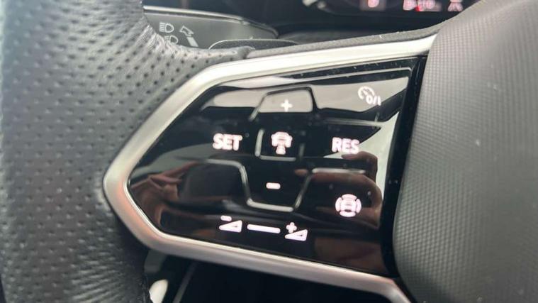 Adaptive cruise control (ACC) with speed limiter and front assist (reacting to vehicles pedestrians and cyclists), Car2X communication, Digital cockpit pro - 10.25" high resolution TFT dash display screen with customizable menus and information, Driver alert system, Dynamic road sign display, eCall - Emergency call service for SOS calls to emergency response, Lane assist, Mobile phone interface with wireless inductive charging function, Multifunction camera for distance control, PAS, Speedo, rev counter, electronic odometer, trip, service interval display, exterior temperature and fuel gauge, Start/Stop function, USB-C ports in the front and rear centre console with increased charging performance, Warning buzzer and light for front seatbelts unfastened, Wireless app connect, Petrol Particulate Filter, XDS electronic differential lock for improved traction and handling, Premium USB cable in choice of either Apple or Android smartphone compatibility, Ambient lighting, exterior illuminated styling elements at the sides, Auto dimming rear view mirror, Automatic headlamp activation with Coming home and Leaving home feature, Automatic headlights, Body colour door handles, Body colour door mirrors with integrated indicators, Body colour rear roof spoiler, Electrically heated and adjustable door mirrors with memory feature, Front and rear electric windows, Heat insulating glass windscreen, Heated rear windscreen, High level 3rd brake light, Highway light, LED License plate illumination, R Line body coloured bumpers, Rain sensor, Rear fog light on one side and reversing lights on both sides, Rear lights incorporating LED technology, Rear side wing doors, Rear tinted glass 65% light absorbing from B pillar backwards, Rear windscreen washer and wiper with interval delay, Welcome light, 12V socket in front centre console, 12V socket in luggage compartment, 3 rear head restraints, 3 seat bench in 2nd row, Ambient lighting - Customisable 30 colour ambient lighting, Black roof lining, Brushed stainless steel pedals, Chrome plated surround to electric mirror button, window switch and air vent surrounds, Drivers and front passengers sun visors with vanity mirrors, Front + rear carpet mats, Front centre armrest with storage compartment, Front cupholders x 2, Front passenger seat, Front reading lights x 2 incorporating LED technology, Front seat lumbar support adjuster, Front sports seats, Glovebox, Height adjustable front seats, Height and reach adjustable steering wheel, Isofix child seat preparation for 2 rear child seats and front passenger seat, Luggage compartment lighting, R Line door and side trim panel, R Line front seats integrated head restraints, R-Line leather wrapped multi function sports heated steering wheel, Removable luggage compartment cover, Sardegna cloth upholstery with front and outer rear seats Art Velour inner sides of bolsters, Split folding backrest with centre armrest and unsplit rear seat bench, Titanium black instrument panel, Woven fabric storage compartments in front and rear doors, 3 point height adj front seatbelts + pretensioners, 3 rear three point seatbelts, ABS, Child locks on rear doors, Driver and front passenger airbag with front passenger airbag deactivation, Drivers and front passengers safety optimised head restraints, Electronic parking brake with auto hold, ESC (Electronic Stability Control), Extended pedestrian protection measures, Front and rear passengers curtain airbag system including front side airbags, Front centre airbag, Front disc brakes, Front side airbags with curtain airbags, Rear disc brakes, Two tone horn, Tyre pressure monitoring system, Alarm with interior protection and deactivation via infotainment system, Electronic engine immobiliser, Carbon grey decorative inserts in dash and front door trim panels, High gloss black centre console,