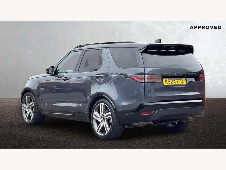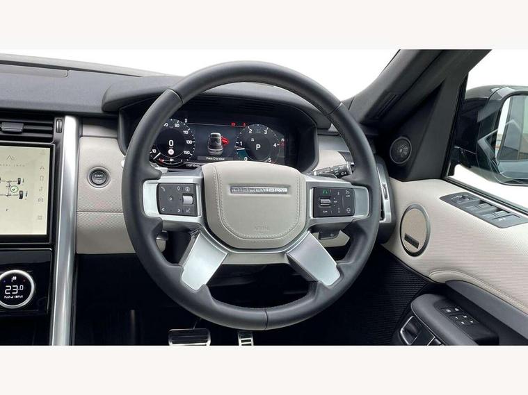 11.4" touchscreen, 3D surround camera, Adaptive cruise control, Android Auto, Apple car play, Blind spot assist, Driver condition monitor, Electric power assisted steering (EPAS), Emergency services call system, Front and rear parking aid, Interactive driver display, Lane keep assist, Power inner tailgate, Power tailgate/boot lid, Push button start, Rear collision monitor, Rear traffic monitor, Remote, Remote boot release, Service interval indicator, Speed proportional steering, Sportshift selector, Stop/start system, Traffic sign recognition with adaptive speed limiter, Trip computer, Wade Sensing, Adaptive dynamics, Dynamic stability control, Electronic air suspension, Front axle open differential, Digital Audio Broadcast radio-DAB, Dynamic volume control, Pivi pro connected, USB/aux input socket, Acoustic laminated windscreen, Animated directional indicators, Auto dimming interior rear view mirror, Automatic headlight levelling, Automatic headlights, Body colour bumpers, Body colour door handles, Centre high mounted stop light, D300 badge, Electric heated/power fold memory door mirrors with approach lights and auto dimming driver side, Electric windows with one touch open/close and anti-trap, Heated rear window, Heated windscreen, LED darkend tail lights, Matrix LED headlights with signature DRL, Narvik black Discovery script, Privacy glass, Puddle lights, Rain sensing windscreen wipers, Rear fog lights, Rear side wing doors, Rear wash/wipe, Trailer stability assist, Variable intermittent wiper, 12V power sockets, 12V USB charging socket in loadspace, 2 seat bench in 3rd row, 3 seat bench in 2nd row, 60/40 electric heated folding rear seats with manual slide and powered recline, centre headrest and armrest, Central hinged twin lidded storage, Configurable cabin lighting, Ebony morzine headlining, Electric adjustable steering column, First and second row door bins, Footwell lights, Front and rear 12V with front USB, Front passenger seat isofix location point, In-facia storage, Isofix child seat preparation for front passenger seat, Leather steering wheel, Loadspace cover, Loadspace Hook, Loadspace light, Lockable glovebox, Lower centre console storage, Luggage tie downs in loadspace, Multi function steering wheel, Overhead lighting console, Premium carpet mats, Rear ISOFIX, Shopping bag hook, Single front passenger seat, Storage glovebox, Sunvisors with illuminated vanity mirrors, Third row storage, Treadplates with metal inserts, Twin front cupholders with cover, USB with 12V socket in centre console, Black exterior pack - Discovery Dynamic SE/HSE, Online pack with data plan - Discovery, 3x3 point rear seatbelts, Anti-lock braking system (ABS), Brake pre-fill technology, Cornering brake control, Curtain airbags, Customer configurable autolock, Driver and passenger airbags, EBD - Electronic brakeforce distribution, Electronic traction control, Emergency brake assist, Emergency braking, ESP, Front side airbags, Gradient acceleration control, Hill descent control, Hill launch assist, Power operated child locks, Rear airbags, Roll stability control, Seat belt reminder, Torque vectoring brake, Tyre pressure monitoring system, Immobiliser, Intrusion sensor, Keyless entry, Locking wheel nuts, Remote central locking, All terrain tyres,