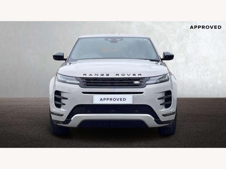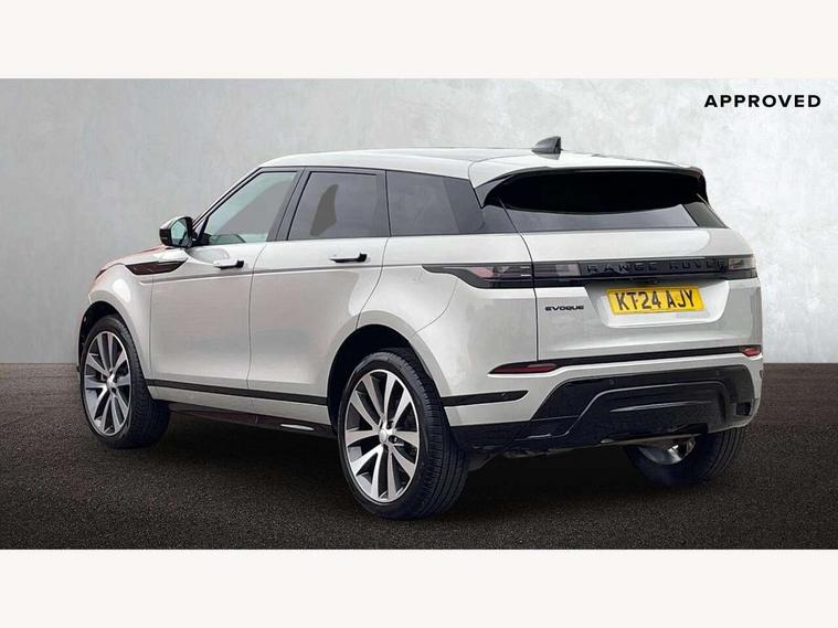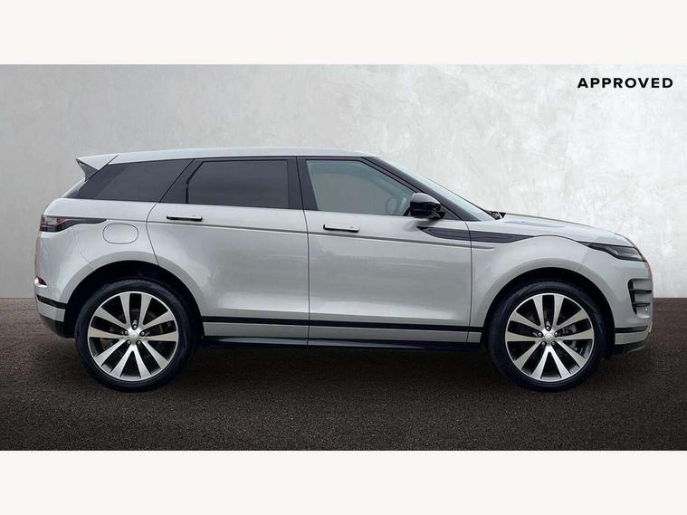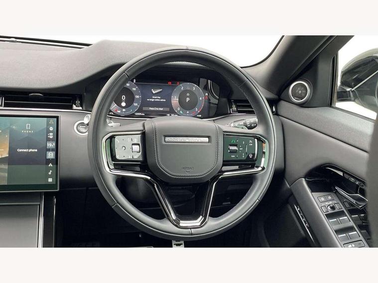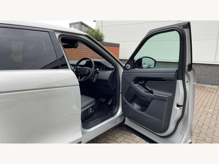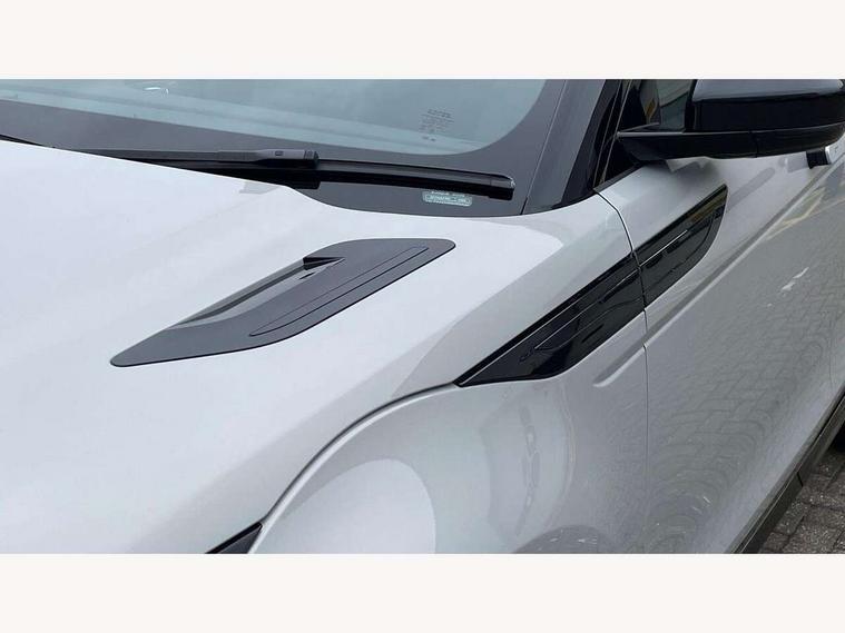11.4" touch screen, Adaptive cruise control, Android Auto, Apple car play, Blind spot assist, Bluetooth connectivity, Brake pad wear indicator warning light, Driver condition monitor, eCall emergency system, Eco mode, Electronic power assisted steering (EPAS), Front and rear parking aid, InControl remote, Interactive driver display, Land Rover InControl apps, Lane keep assist, Pivi pro connected includes diamond pivi variant, smart settings, connected navigation pro, nuance speech licence, Powered tailgate/boot lid, Rear collision monitor, Rear traffic monitor, Traffic sign recognition with adaptive speed limiter, Voice control system, Wireless device charging, All terrain progress control, Diesel exhaust fluid (DEF) large tank, Efficient Driveline, Large fuel tank, Passive suspension, Terrain Response 2, Digital Audio Broadcast radio-DAB, Steering wheel mounted controls, Acoustic laminated windscreen, Auto headlights, Automatic headlight levelling, Electric windows with one touch open/close and anti trap, Flush deployable exterior door handles, Front and rear recovery eyes, Heated rear window with timer, Heated washer jets, Heated windscreen, Pixel LED headlights with signature DRL and LED tail Lights, Power fold, auto-dimming, heated door mirrors with approach lights and auto dimming driver side, Rain sensing windscreen wipers, Rear animated directional indicators, Rear fog lights, Rear side wing doors, Rear wiper, Side repeater indicators in mirror, Tailgate spoiler, Third brake light, Winter wiper park position, 14 way driver memory electric front seats with 2 way manual headrests + 4 way lumbar support, bolsters, 40:20:40 split folding rear seats with centre headrest and armrest, Ambient interior lighting, Bright metal pedals, Carpet mats, Chrome tread plates with range rover branding Includes stainless steel loadspace scuff plate with etched graphic, Customer configurable single point entry, Electrically adjustable steering column with memory function and easy entry/exit, Front and rear cupholders, Heated steering wheel, Isofix system on outer rear seats, Overhead lighting console, Overhead stowage for sunglasses, Passive front head restraints, Rear air vents, Rear head restraints, Satin chrome gearshift paddles, Single passenger seat, Sunvisors with illuminated vanity mirrors, Twin sliding front centre armrest, Online pack with data plan - Evoque, Power socket pack 2 - Evoque, 3 rear 3 point seatbelts, Anti-lock braking system (ABS), Brake hold function, Customer configurable autolock, DSC - Dynamic Stability Control, Electronic brake force distribution, Electronic parking brake, Electronic traction control, Emergency braking, Front and rear seatbelt reminder, Hill descent control, Hill launch assist, Low traction launch, Occupant protection assist, Passenger seat occupant detector, Power operated child locks, Roll stability control, Six airbags - Driver and passenger airbags/driver knee airbag/front side airbag and curtain airbags, Torque vectoring brake, Tyre pressure monitoring system, Alarm, Immobiliser, Intrusion sensor, Keyless entry, Locking wheel nuts,