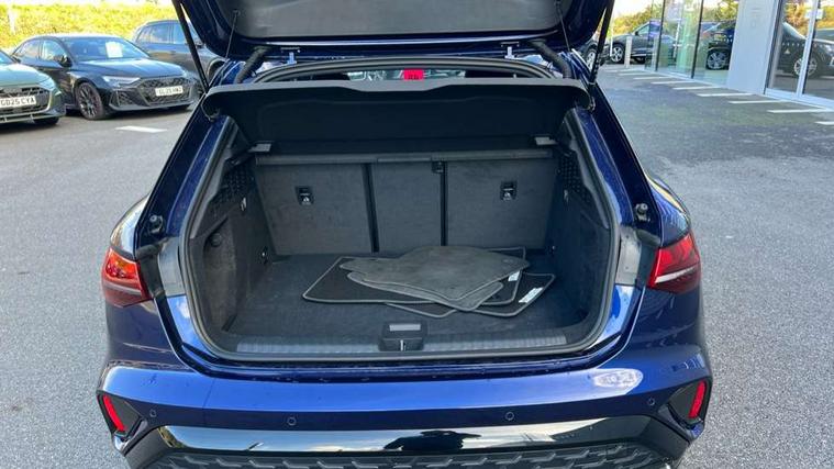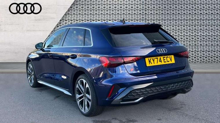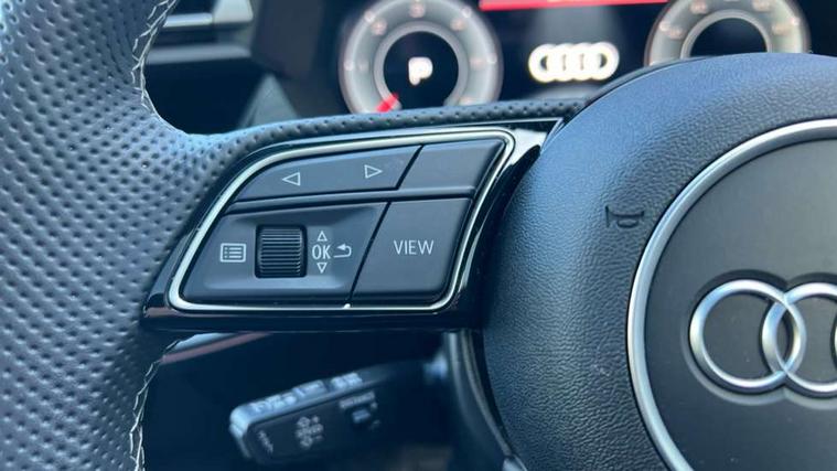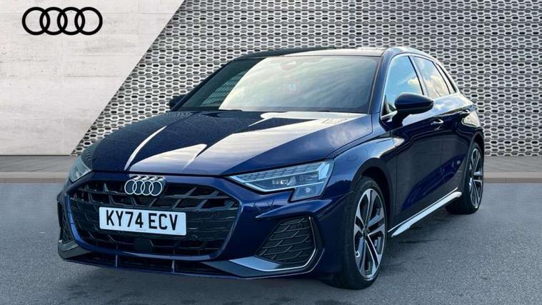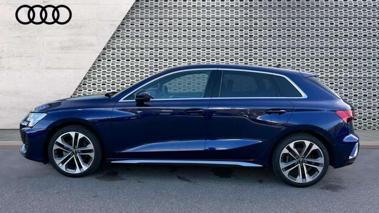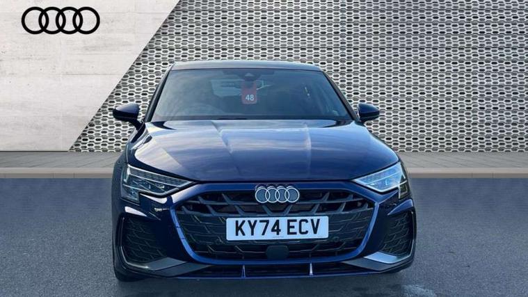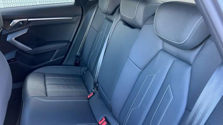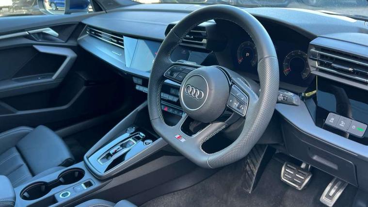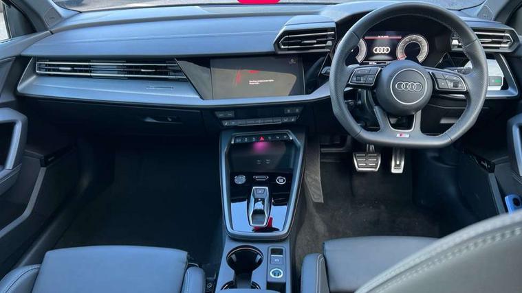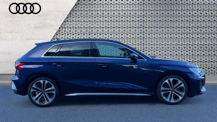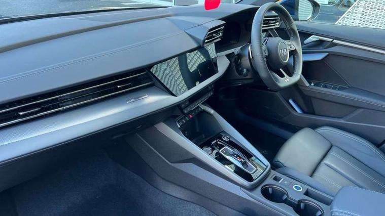 Adjustable speed limiter, Audi drive select, Audi smartphone interface with app store includes wireless Apple carplay, Android auto and Amazon alexa integration, Audi virtual cockpit plus - 12.3" full HD resolution dynamic digital instrument cluster, Automatic start/stop system with recuperation, Bluetooth interface, Camera based traffic sign recognition, Collision avoidance assistant, Cruise control, Distraction and Fatigue warning, e-Call (emergency call), Electromechanical power speed sensitive steering, Lane departure warning system, MMI Navigation Plus with high resolution 10.1" colour touch screen display, Park Assist with parking system Plus, Service indicator, Tailgate, Trip computer, Voice control system with natural language interaction, Diesel particulate filter, Sports suspension, Audi Phonebox light with wireless charging, Audi sound system - 10 loudspeakers including centre loudspeaker and subwoofer, DAB Digital radio, USB ports with charging function in the rear, Acoustic glass windscreen, Aluminium window trim, Auto dimming frameless rear view mirror, Body colour exterior mirrors, Chrome exhaust tailpipes, Electrically adjustable/heated/folding/auto dimming door mirrors with integrated LED indications + kerb view function for passenger side, Exterior model badging, Front and rear side air inlets in grained matt black with dark liquid chrome frame, Front electric windows, Front radiator grill in high gloss dark chrome, Heat insulating glass windscreen, Illuminated door sills with aluminium inserts at the front with S logo, LED 3rd brake light, LED daytime running lights, LED headlights with LED rear lights and dynamic rear indicators, Light and rain sensors, Privacy glass - dark tinted rear window, rear door and side windows, Rear diffuser and grill in grained matt black with inlay in dark liquid chrome, Rear electric windows, Rear side wing doors, Rear wiper, S line bumpers, S roof spoiler, Side S line emblems on front wings, Side sill trim in dark liquid chrome, 12V socket and storage compartment in front centre console, 3 seat bench in 2nd row, 3 spoke flat bottomed leather multifunction sport steering wheel with gear shift paddles, 3-zone deluxe automatic air conditioning, 4 way electrically adjustable lumbar support for driver and front passenger, 40/20/40 split folding rear seat bench, Black cloth headlining, Front and rear centre armrest in artificial leather, Front and rear headrests, Front/rear floor mats, Heated front seats, Height and reach adjustable steering wheel, Manual boot compartment lid, Manually adjustable front seats, Rear cup holders, S badging on the steering wheel, Seat side bolsters, Single front passenger seat, Stainless steel pedals and front footrest in black, Twin leather upholstery with front sports seats S embossed logo, Aluminium interior elements pack - A3 Sportback, Multi-coloured LED interior lighting package - A3, 3x3 point rear seat belts, Driver and front passenger airbag with passenger airbag deactivation, Electronic Stabilisation Control (ESC) including ABS, ASR and EDL, First aid kit with warning triangle and 2 safety vests, Front side airbags with head airbags and interaction airbag, Hill hold assist, Pre-sense front with pedestrian and cyclist detection, Seatbelt monitoring, Tyre pressure loss indicator, Anti theft alarm, Anti-theft wheel bolts, Electronically operated child locks, Immobiliser, Remote central locking with safelock, Dash & door Inlay in dark aluminium Spectrum,