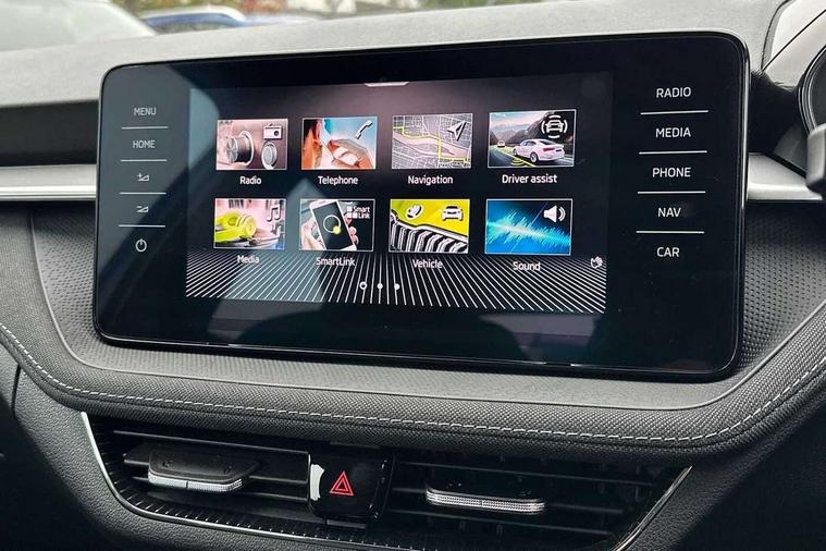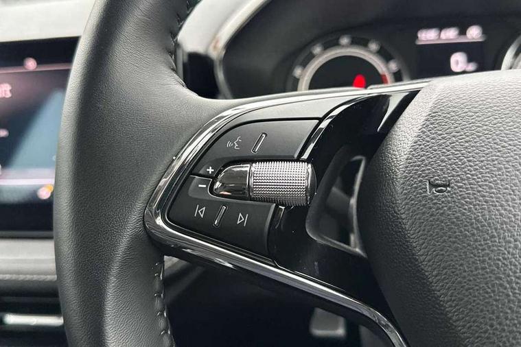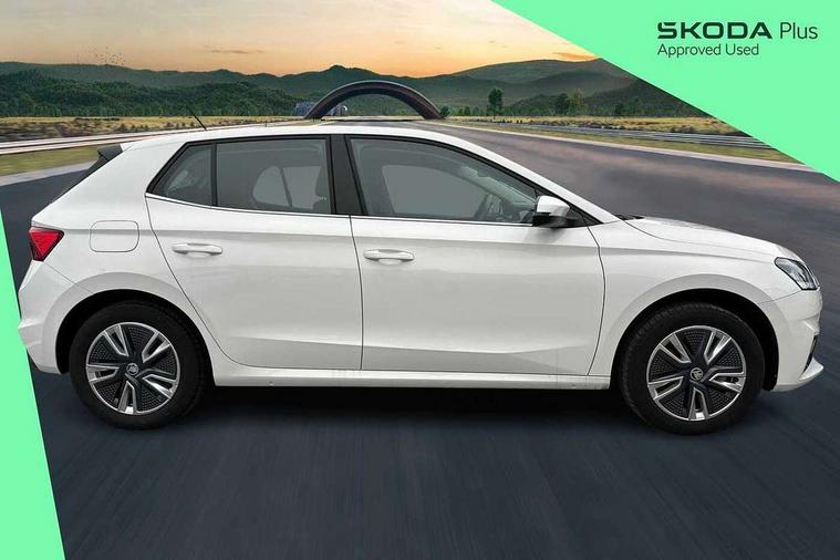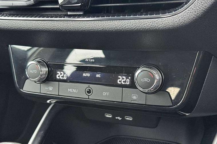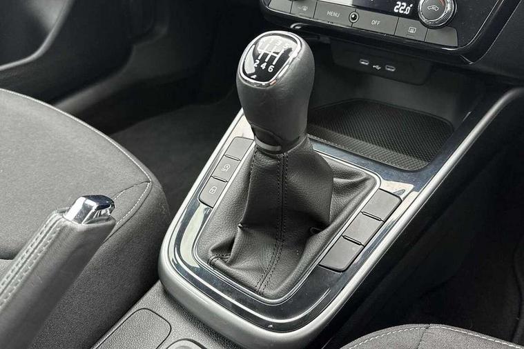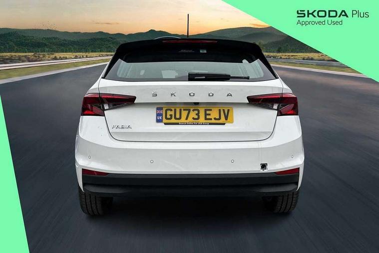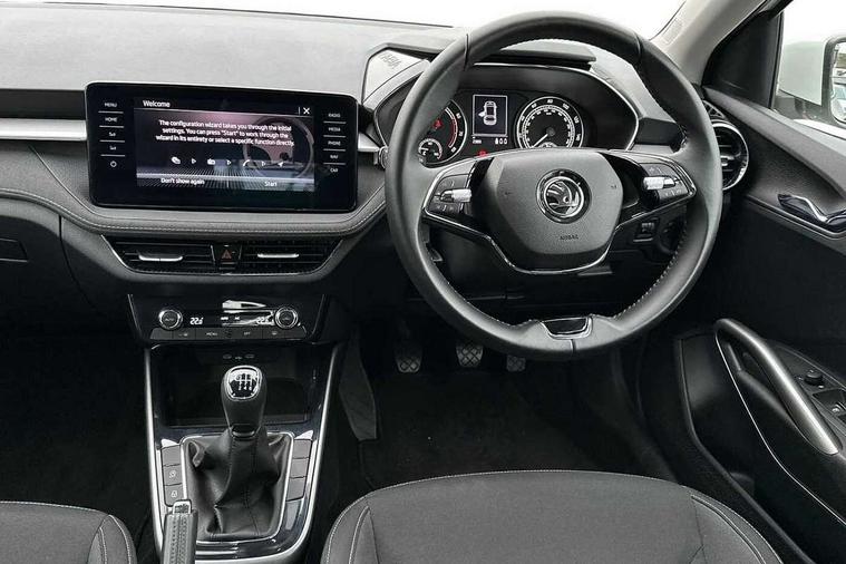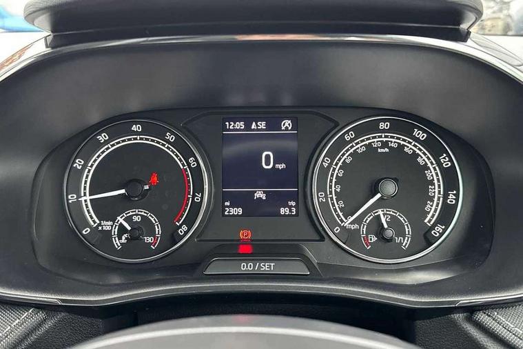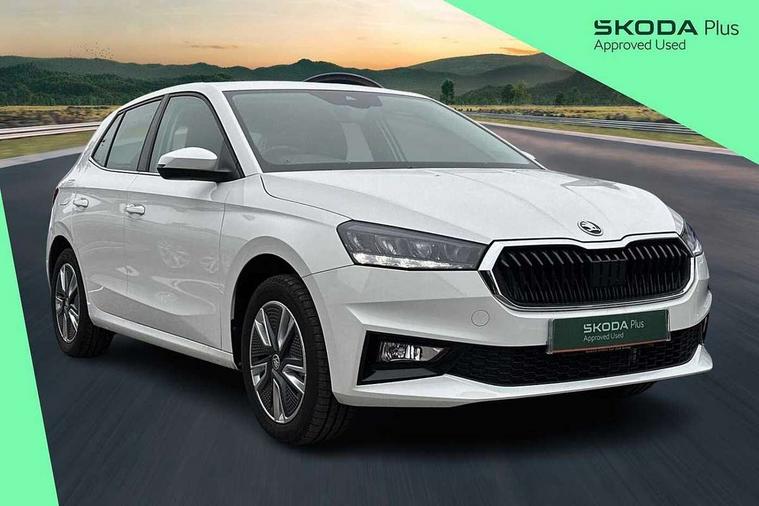 Bluetooth connection, Driver alert system - DAS, Electromechanical power steering, Exterior temperature gauge, Service interval indicator, 2x USB-C in the front (for data transmission and charging), 6 Speakers (4 in front and 2 in rear), Auxiliary socket for external MP3 player, DAB digital radio reception, Web radio, Auto dimming rear view mirror, Basic rear light, Body colour door mirrors, Body coloured bumpers, Chrome window surround, Door mirror integrated indicators, Electrically adjustable and heated door mirrors, Front and rear electric windows, Front window wiper intermittent control, Headlight range control - Automatic, Ice scraper in fuel cap, LED daytime running lights with coming and leaving home feature, Rear LED fog light, Rear side wing doors, Rear window wiper with washing nozzles, Roof mounted spoiler, SKODA tailgate lettering in chrome, Third brake light, 3 rear headrests, Backrest split and folding, Central console with fixed cup holder and storage box, Chrome handbrake release button, Comfort seats, Fabric upholstery, Front centre armrest, Gearshift knob/handle in leather, Hand brake lever handle in leather, Height adjustable front headrests, Height adjustable front seats, Height adjustable steering wheel, ISOFIX and TopTether anchorage points to the outer rear seats, ISOFIX and TopTether on the front passenger seat, Luggage compartment lighting, Manually adjustable lumbar support in front seats, Pollen filter, Rear seat bench unsplit, Removable cup holder, Single front passenger seat, Storm grey headlining, Sun visors with mirror and airbag label on passenger side, Textile floor mats, Ticket holder, Umbrella in drivers door, Ambient lighting pack 2 - Fabia Hatchback, 3-point height adjustable front seats belts with pretensioner and force limiter, Automatic warning lights in case of crash, Driver and passengers airbag with switch off function, e-Call+, ESC including ABS, MSR, ASR, EDS, HBA and XDS, Front and rear seat belt warning, FRONT ASSIST (AEB City and AEB Inter Urban), Front side airbags, Head airbags, One tone horn, Pedestrian protection, Three rear 3-points safety seat belts with pretensioner and force limiter including stop function for outer rear seat belts, Tyre pressure monitoring system, Anti-theft alarm system including immobiliser, interior monitoring, backup horn, and towing protection, Chrome edged air vents, Satin black door and side trim panel in front, Anti-theft wheel bolts protection, Super-low rolling resistance tyres,